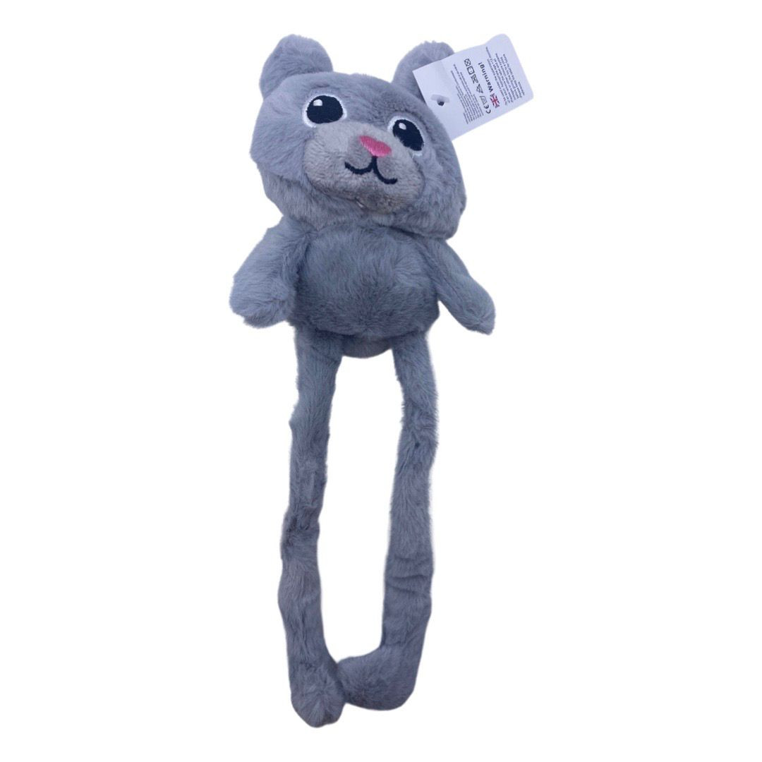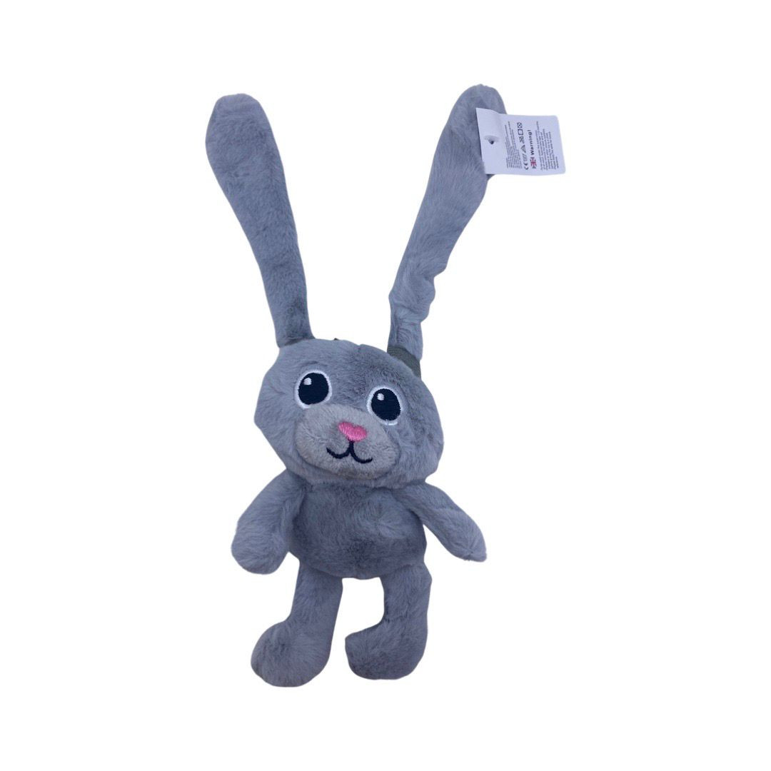 Breloc Iepuras gri care se transforma in ursulet cu picioare lungi , trage de urechi mov 28 cm