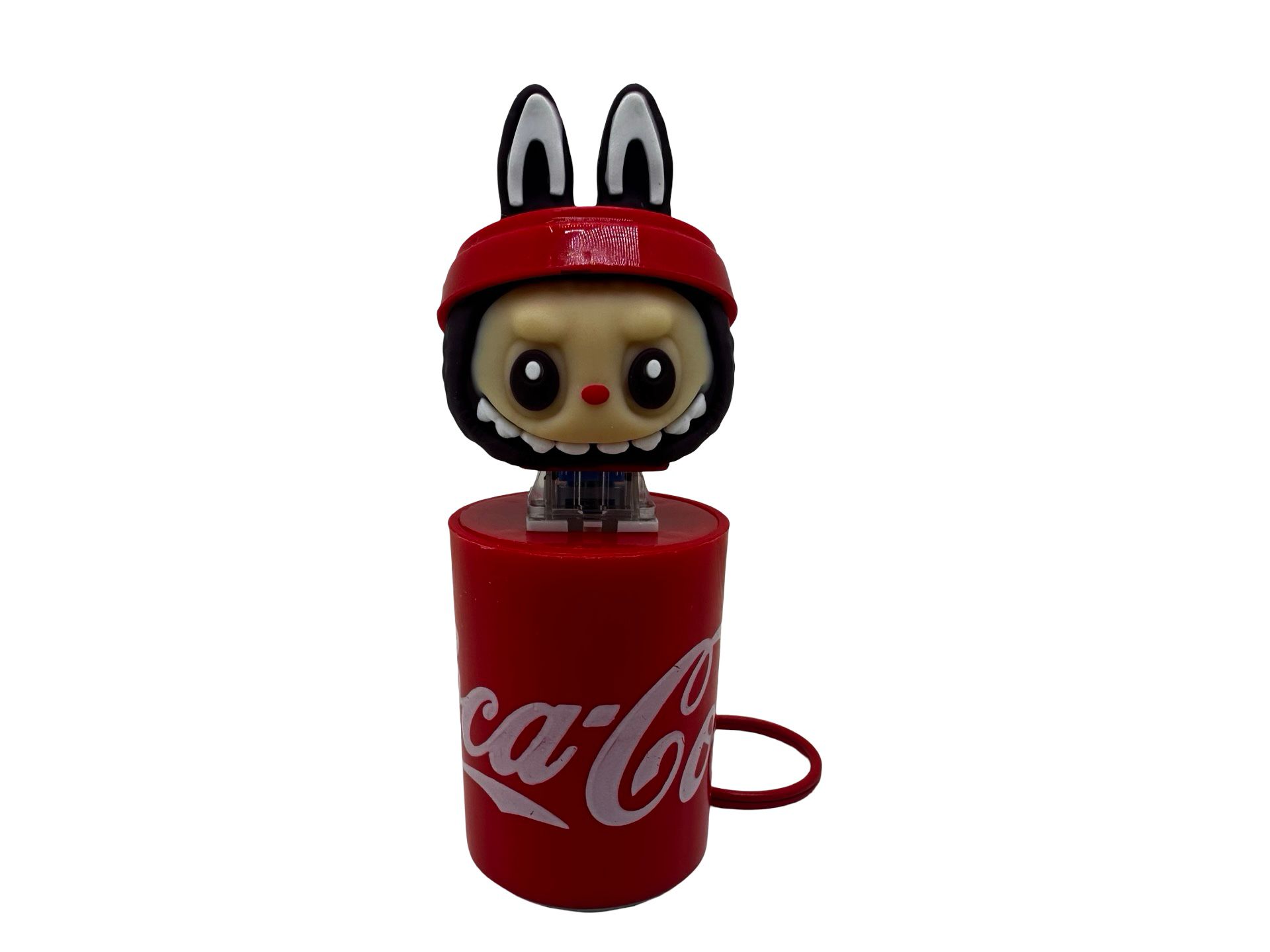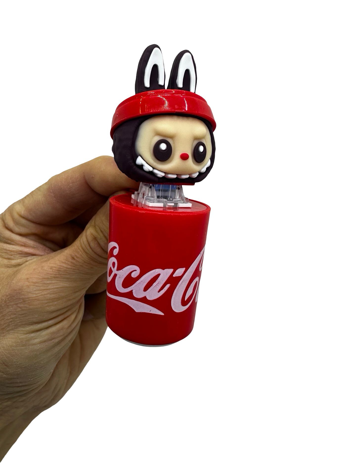 Design: doza Coca-Cola cu figurina Labubu iesind din interior