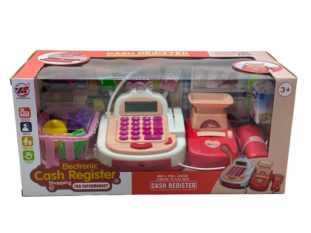 In set sunt bani de hartie, casa de marcat cu scanner si un cantar