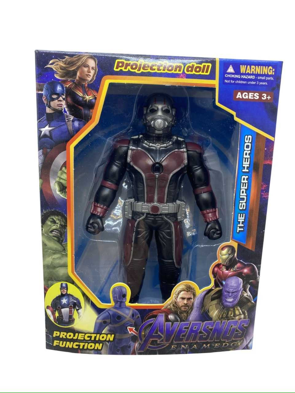 Figurina cu proiectie Omul Furnica. Figurina functioneaza cu baterii are proiector si poate proiecta imagini. Este de ajuns sa faci intuneric in camera si imediat poti proiecta pe orice suprafata. Inaltime 16 cm. Material plastic. Este recomandat copiilor peste 3 ani.