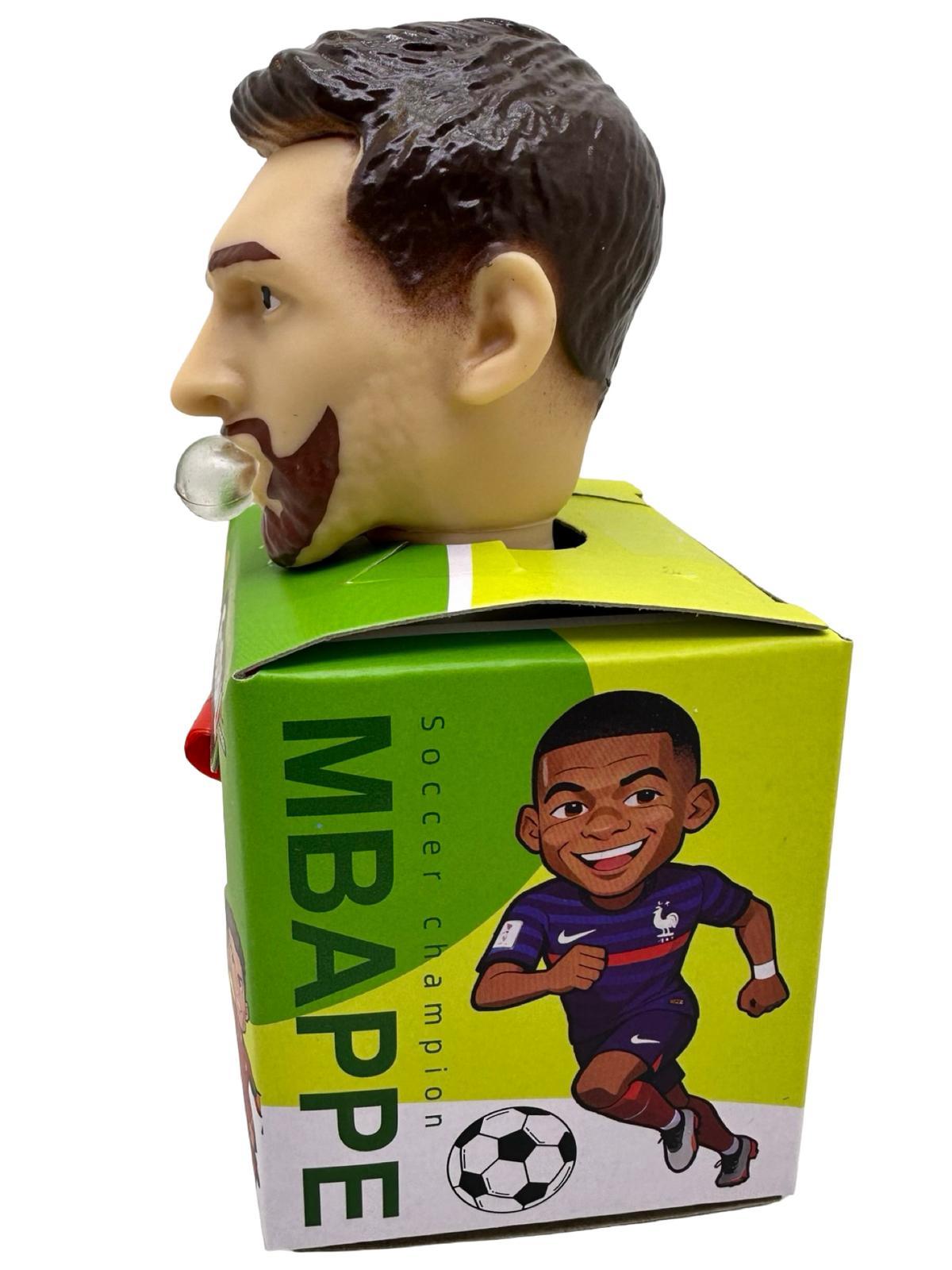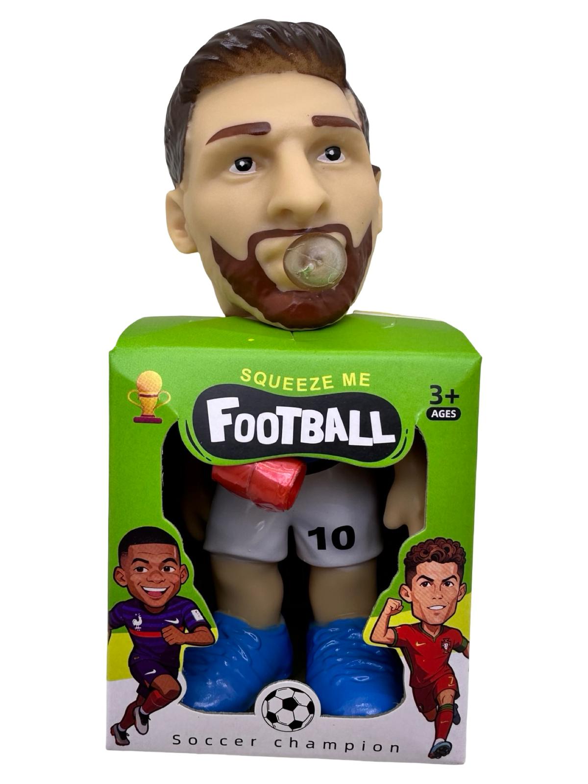 O jucarie distractiva si neobisnuita care combina designul unui fotbalist cu functia antistres. Prin apasare, figurina face o bula de mestecat, oferind un efect amuzant si relaxant.
