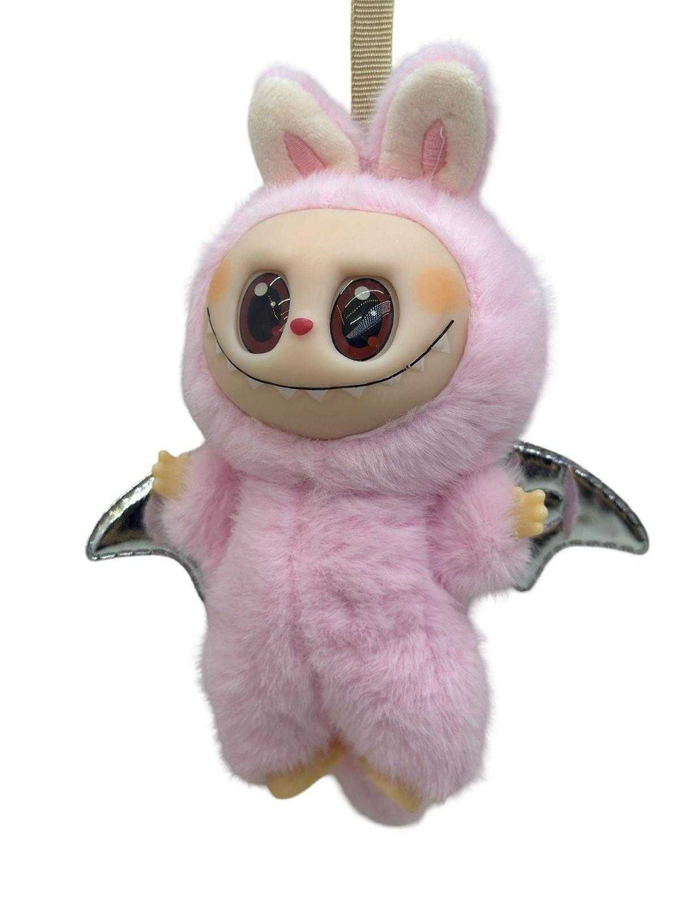 Aceasta figurina adorabila il infatiseaza pe Labubu costumat in dragon, cu o tinuta pufoasa si aripi decorative de culoare argintie, realizate din material textil lucios. Cu un zambet jucaus si ochi mari expresivi, este o piesa de colectie unica, perfecta pentru fanii Pop Mart si pentru cei care indragesc personajele fantastice. Poate fi agatata cu usurinta datorita panglicii atasate. Ideala ca decor, breloc sau cadou original.