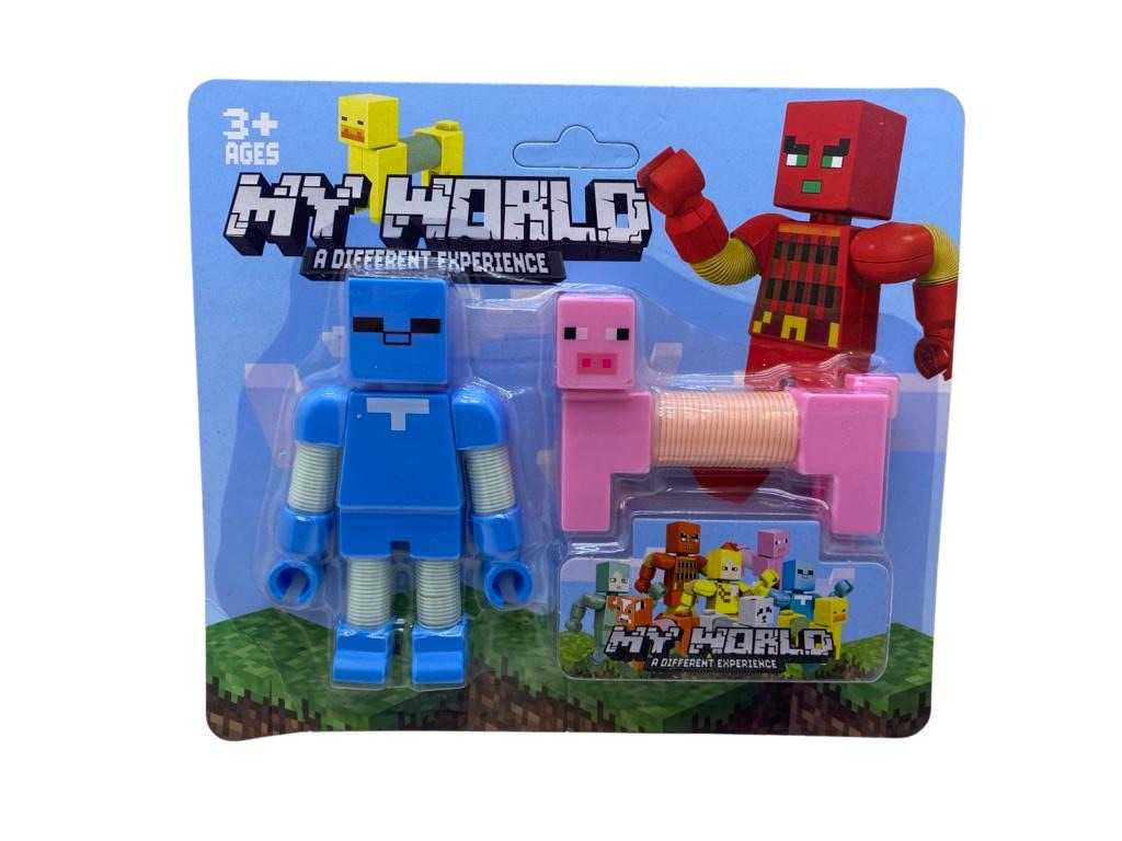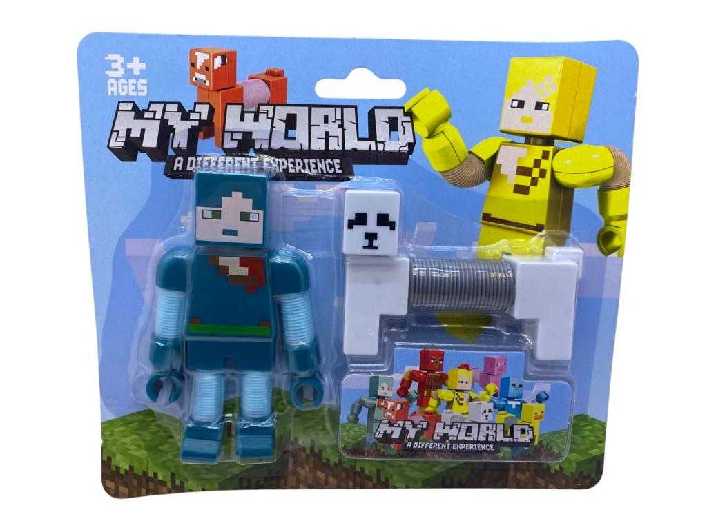 Figurina Minecraft cu tub extensibil diverse modele. Material plastic. Contine o figurine si un animalut. Dimensiune fig 10cm.Se poate trage, indoi, flexa, pocni pentru a stimula functiile motorii ale copilului si de a stimula simturile tactile ducand la ore intregi de joaca si distractie. De asemenea, acestea creeaza un zgomot de pocnet care stimuleaza simtul auditiv. Este recomandat copiilor peste trei ani. PRETUL ESTE PENTRU UN SINGUR PRODUS. VA RUGAM SA MENTIONATI MODELUL PE CARE IL DORITI IN CAMPUL DE MESAJE.
