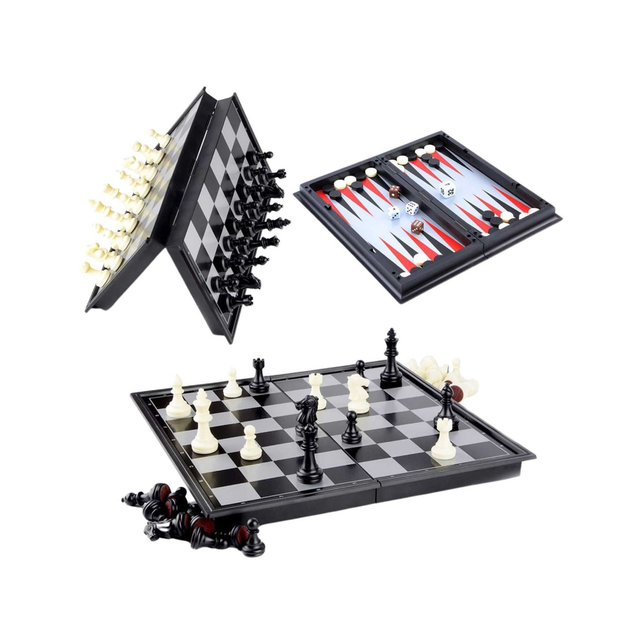 Jocul 3 in 1 Sah, Table si Dame Magnetic 25cm
