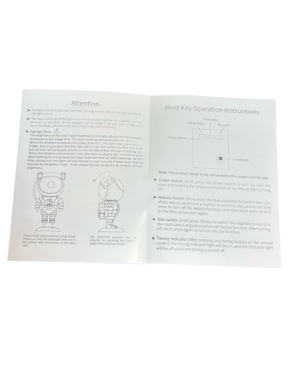 - Materiale de siguranta si ecologice:proiectorul pentru galaxie astronaut este fabricat din materiale ecologice, sigure si non-toxice si cipuri LED de inalta calitate, cu o durata de viata lunga.