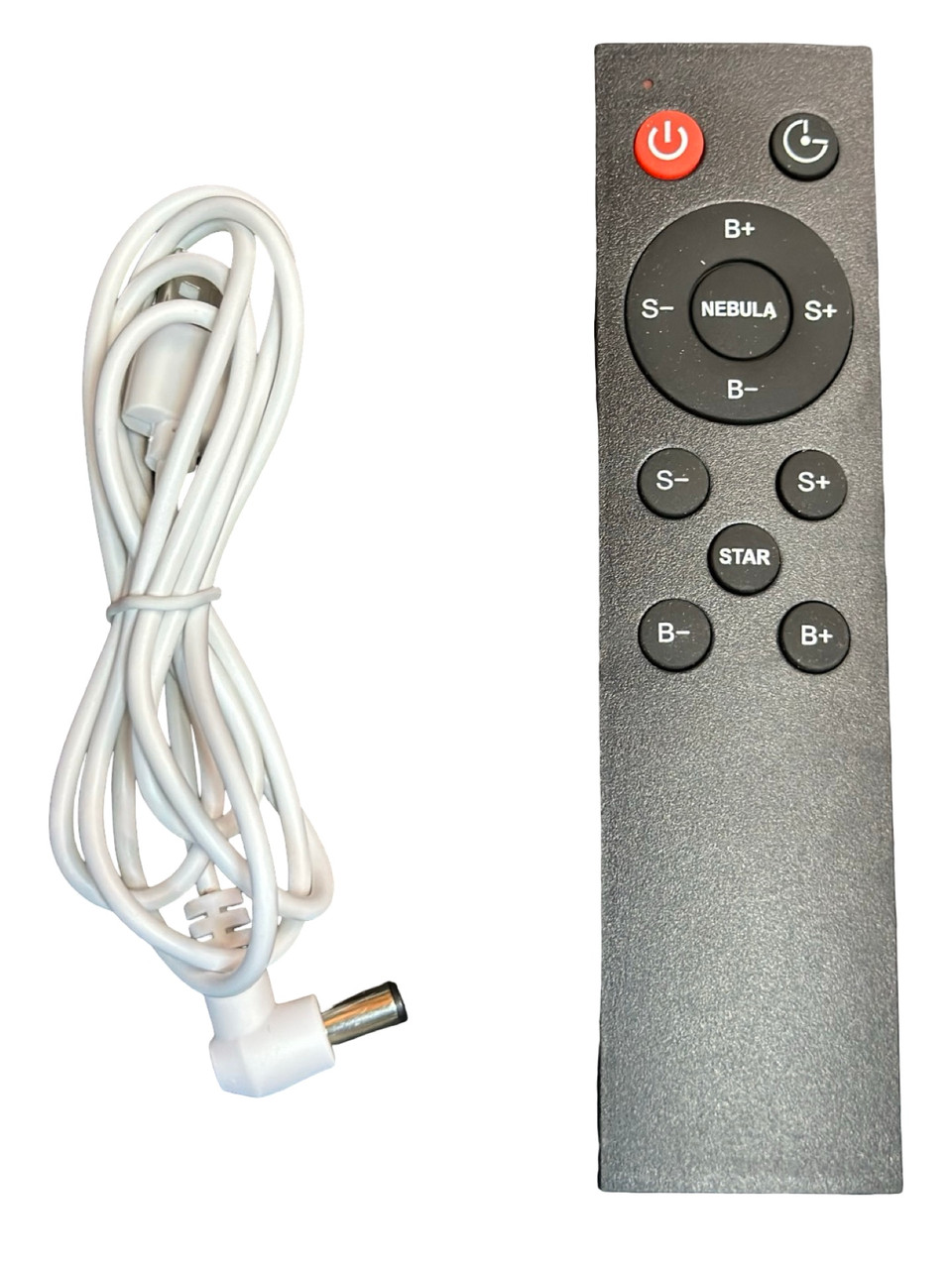 - Comutator de alimentare: apasati scurt comutatorul de alimentare pentru a-l porni – stelele si nebuloasele cu culori mixte sunt activate in mod implicit cand sunt pornite.