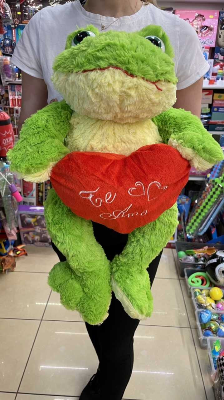 Jucarie Broasca de plus cu inima rosie 60cm