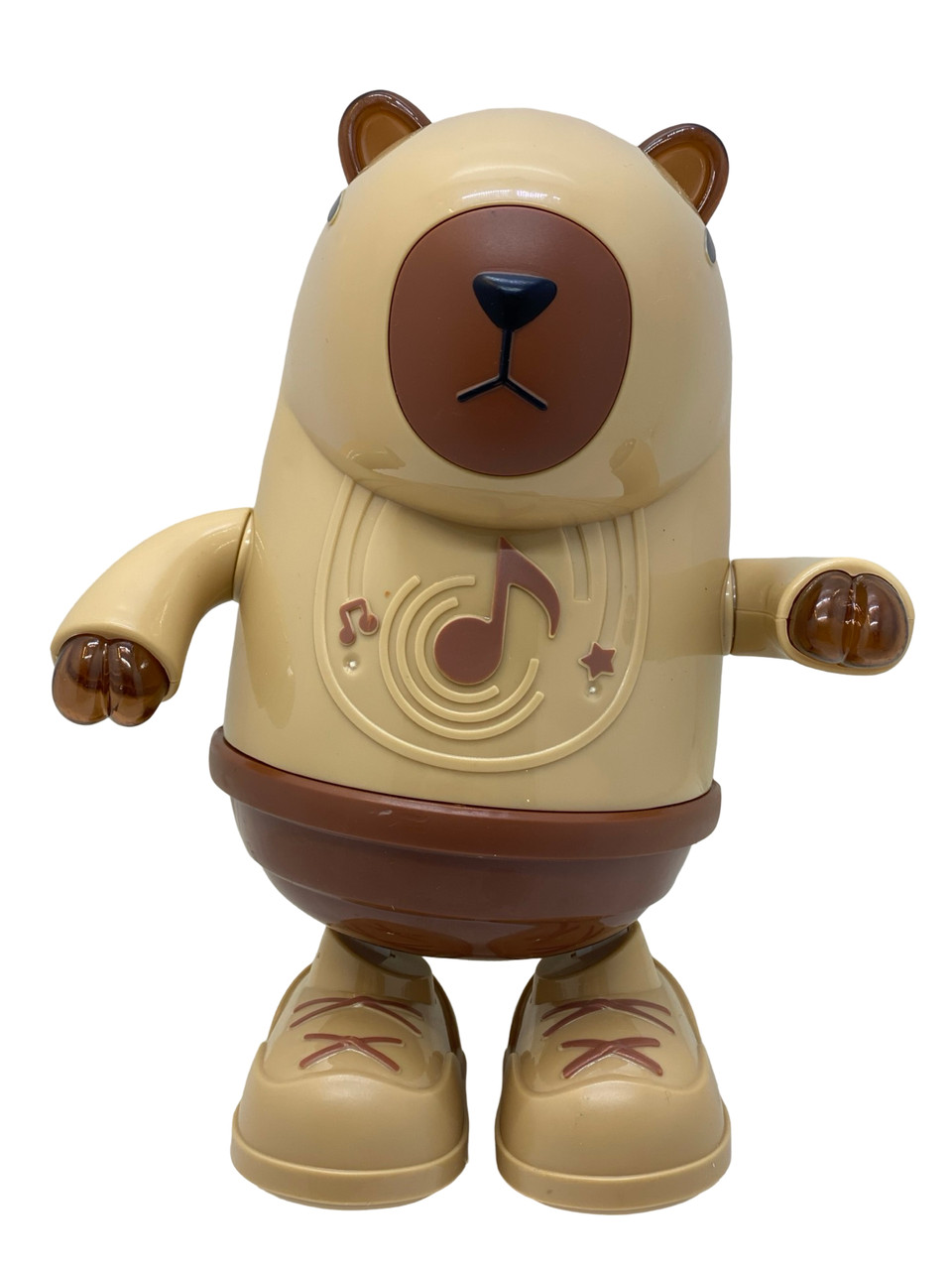 Jucarie Capibara dansatoare cu baterii, muzica si lumini care functioneaza cu baterii. Jucaria canta si danseaza prin miscari stanga dreapta iar luminite colorate care se aprind atunci cand este pornita.