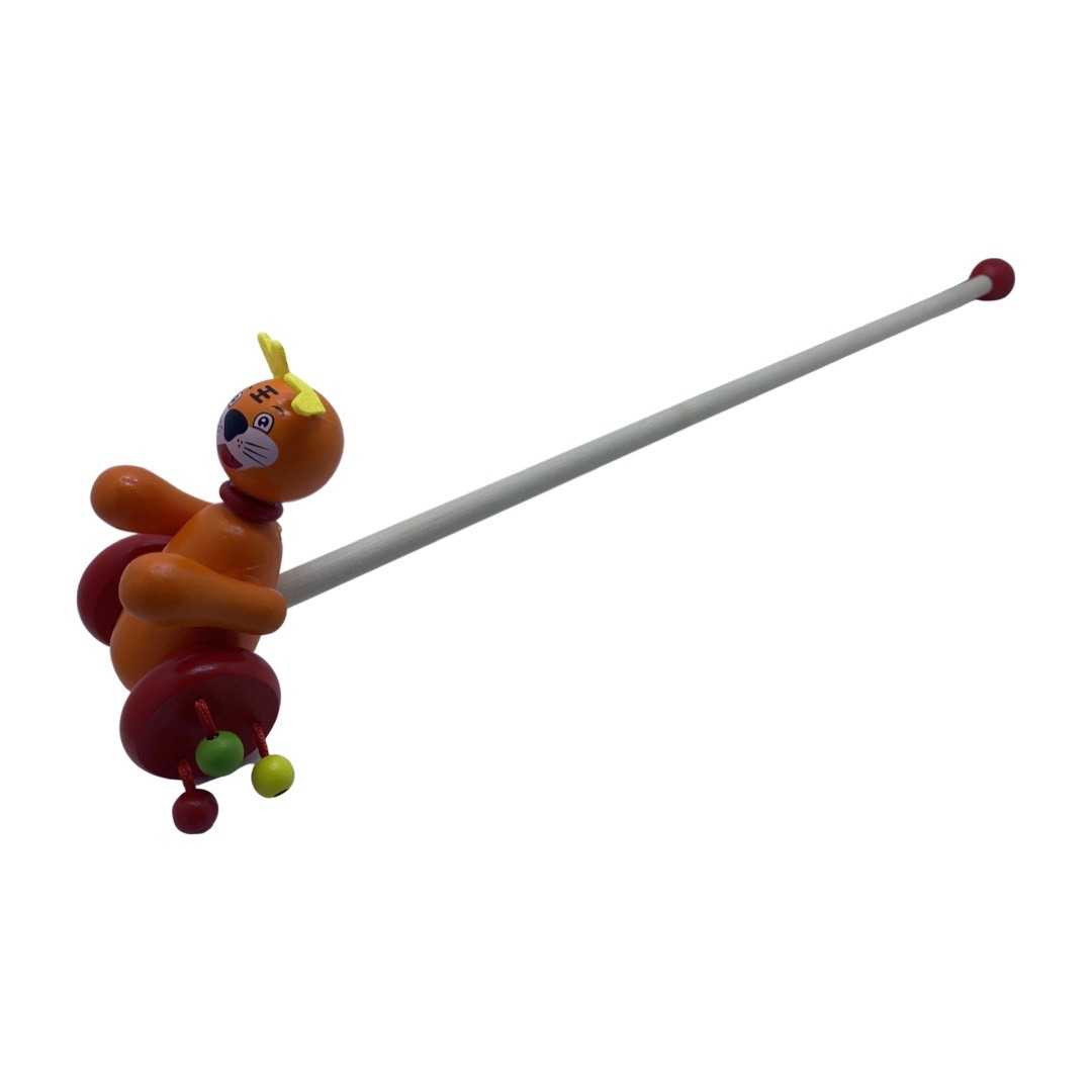 Jucarie de impins din lemn . Jucaria este confectionata din lemn si pictata in culori vesele. Ideala pentru copiii care au invatat sa mearfa in picioare, este jucaria preferata pentru dezvoltarea abilitator motrice. Atunci cand se afla in miscare, bilutele atasate pe roti se misca. Inaltime 50cm. Material lemn. Va rugam sa mentionati modelul pe care il doriti atunci cand faceti comanda in campul de mesaje. Pretul este pentru un singur produs.