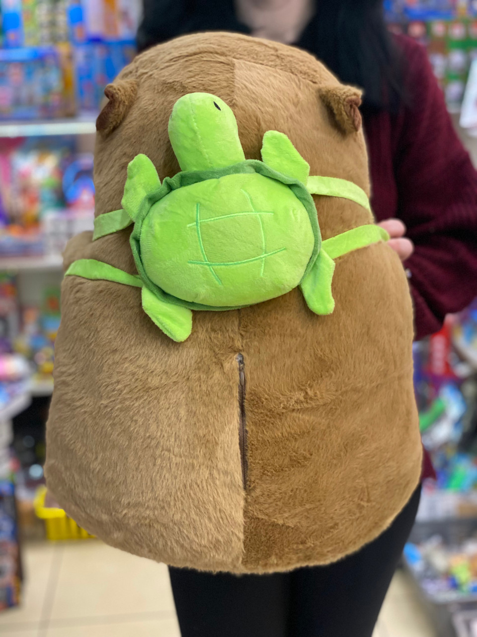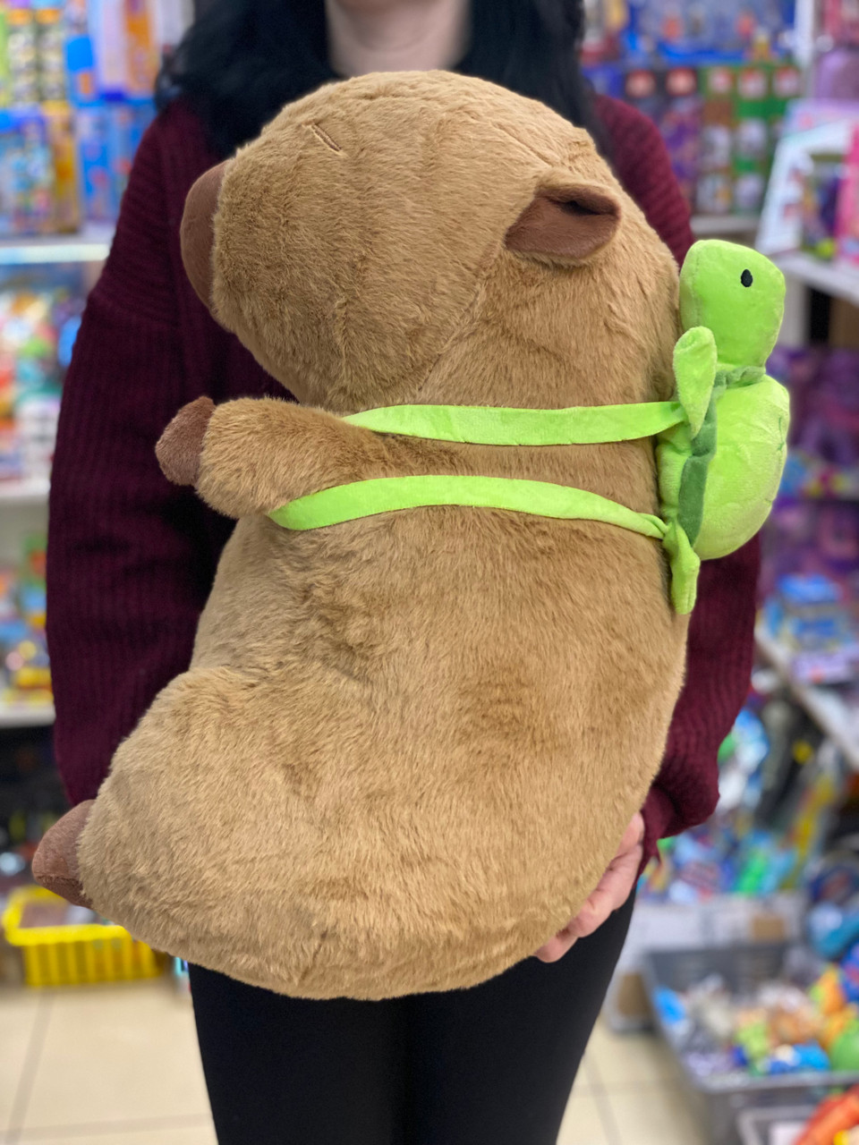 Aceasta capybara de plus de 50 cm va cuceri inimile tuturor cu blanita sa moale si designul adorabil. Perfecta pentru imbratisari lungi si pentru a fi luata oriunde, capybara devine rapid cel mai bun prieten al celor mici.