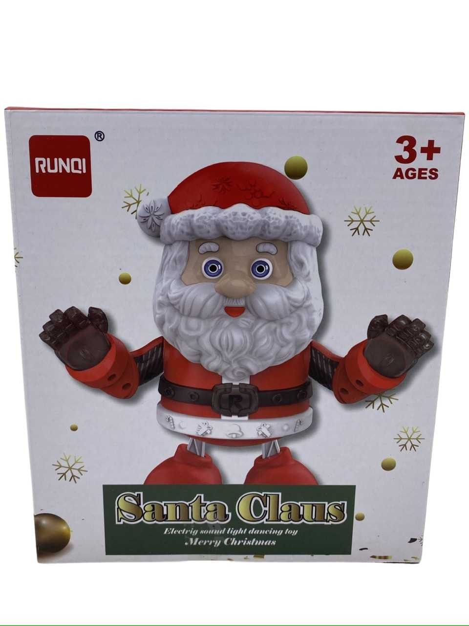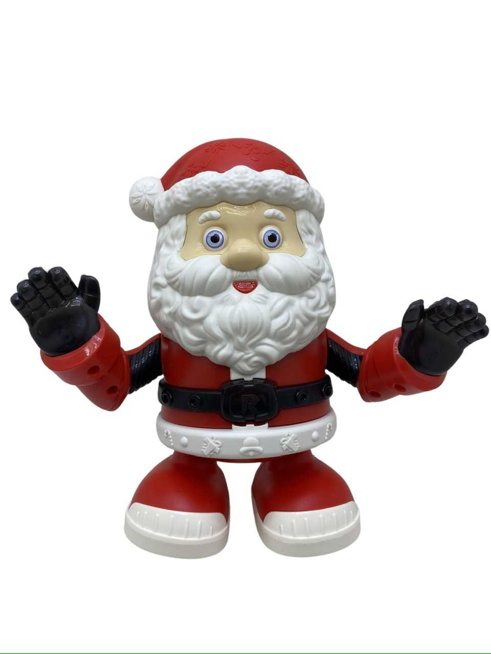 Jucarie Mos Craciun muzical dansator cu baterii. Funcționează cu trei baterii de 1,5 V care nu sunt incluse. Se mișcă într-o parte și alta ca și cum ar dansa, i se aprind lumini și are o melodie atractivă și veselă indemnandu-i pe cei mici la distracție. Este din material plastic și este recomandat sa fie folosita sub supraveghere a părinților mai ales daca copiii sunt mai mici de trei ani. Inaltime 20 cm.