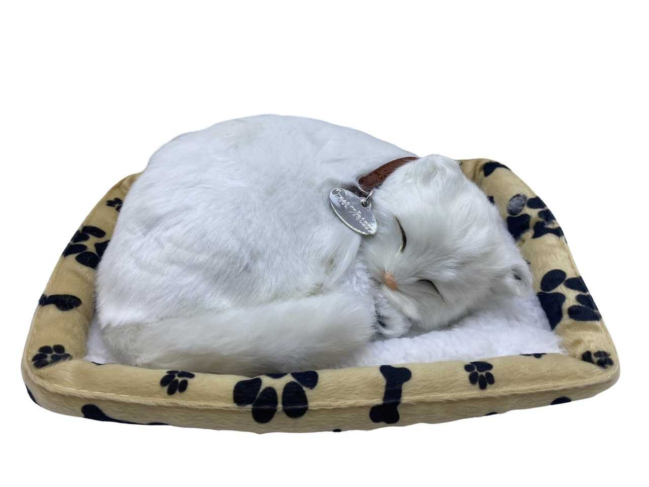 Jucarie pisica somnoroasa alba cu baterii care misca coada