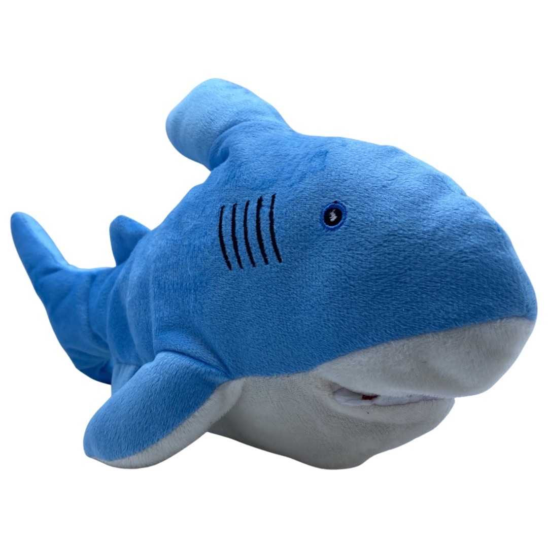 Jucarie din plus rechin care inregistrea si reda sunetele cu o tonalitate mai mare din apropierea lui. In momentul in care repeta, misca din gura si din coada. Functioneaza cu acumulator care este inclus si se poate incarca prin usb cu cablul destinat lui. Are lungimea de 30 cm si se poate curata prin stergere cu o carpa moale si umeda. Este recomandat copiilor peste 3 ani.