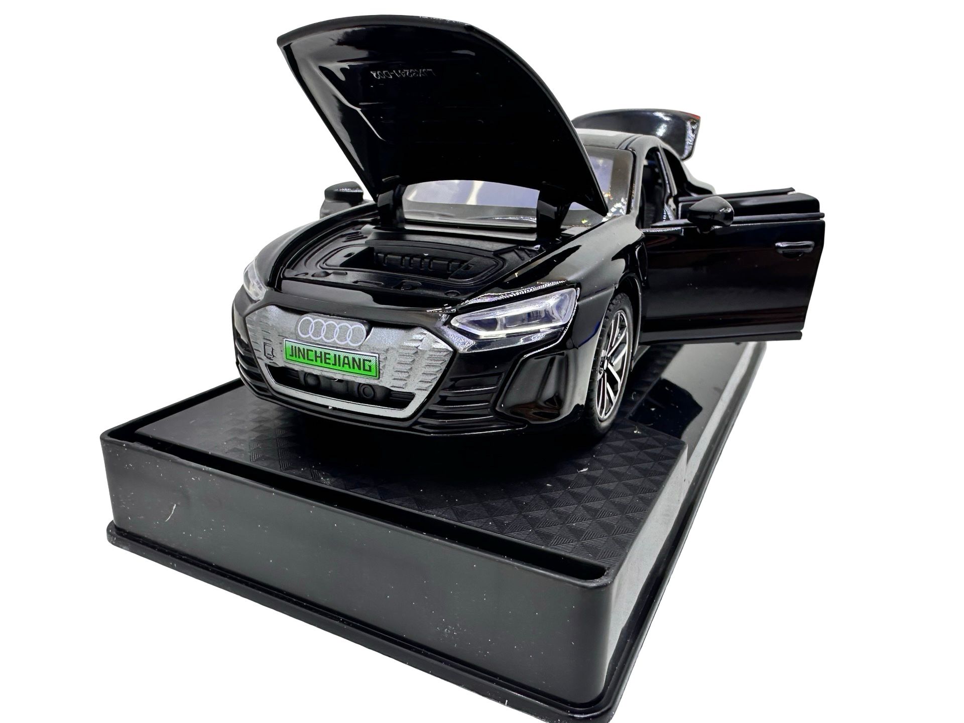 O macheta eleganta inspirata de Audi e-tron GT, realizata la scara 1:32, perfecta pentru pasionatii de masini electrice premium. Designul modern, finisajul negru si liniile sportive transforma acest model intr-o piesa deosebita pentru colectie sau joaca.