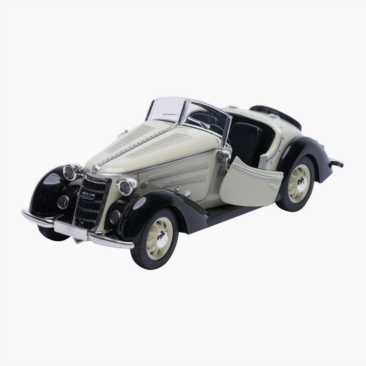 - Masinuta este o replica Audi Roadster,de epoca,confectionata din metal,in lungime de aproximativ 12 cm