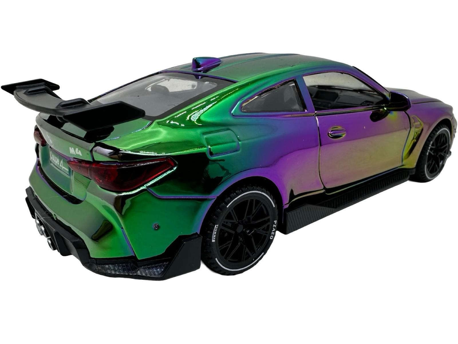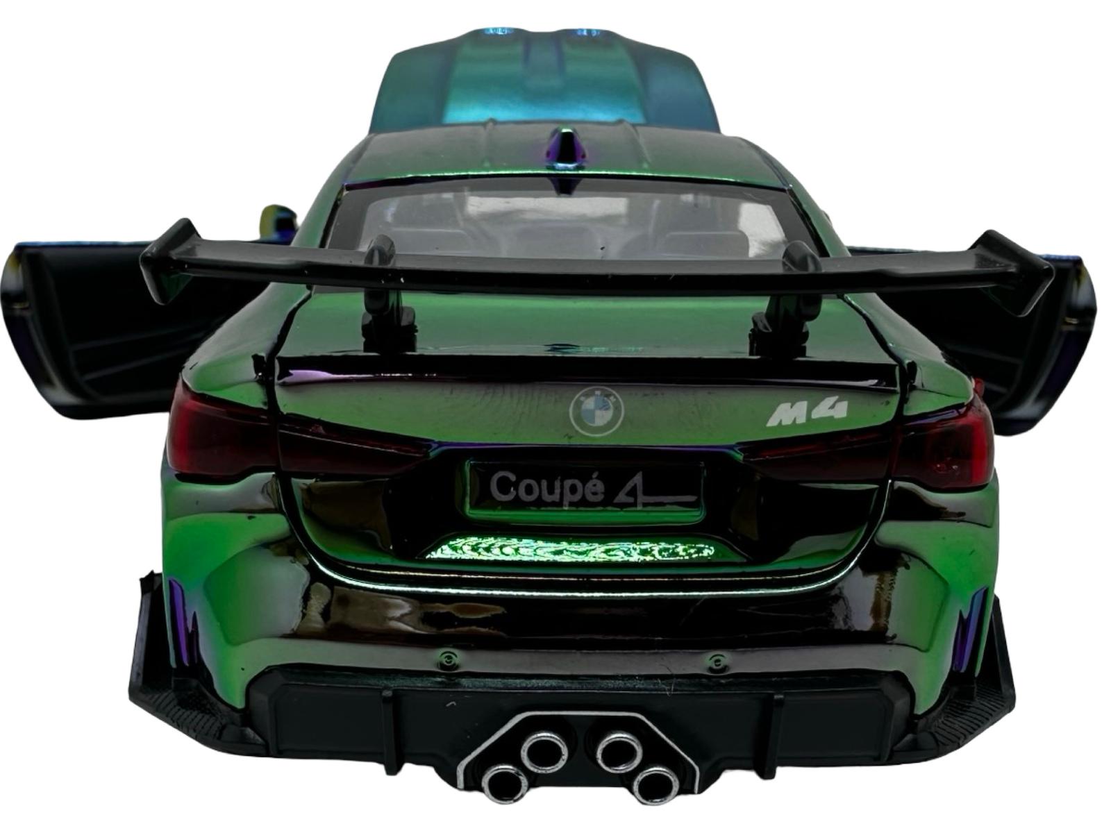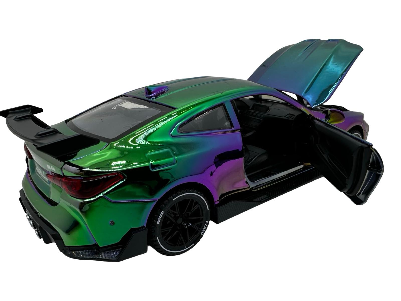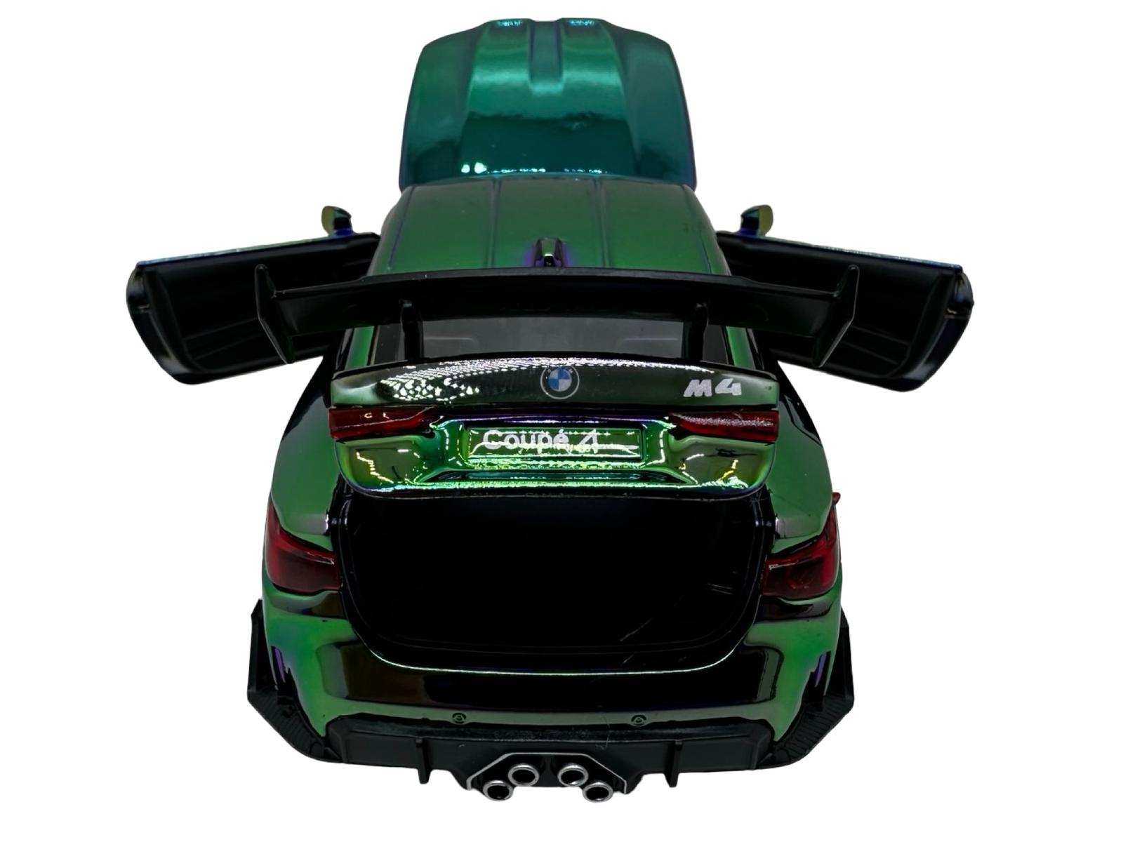 Macheta Auto BMW M4 Coupe replica metalizat cameleon verde sport cu usi deschise 1:32