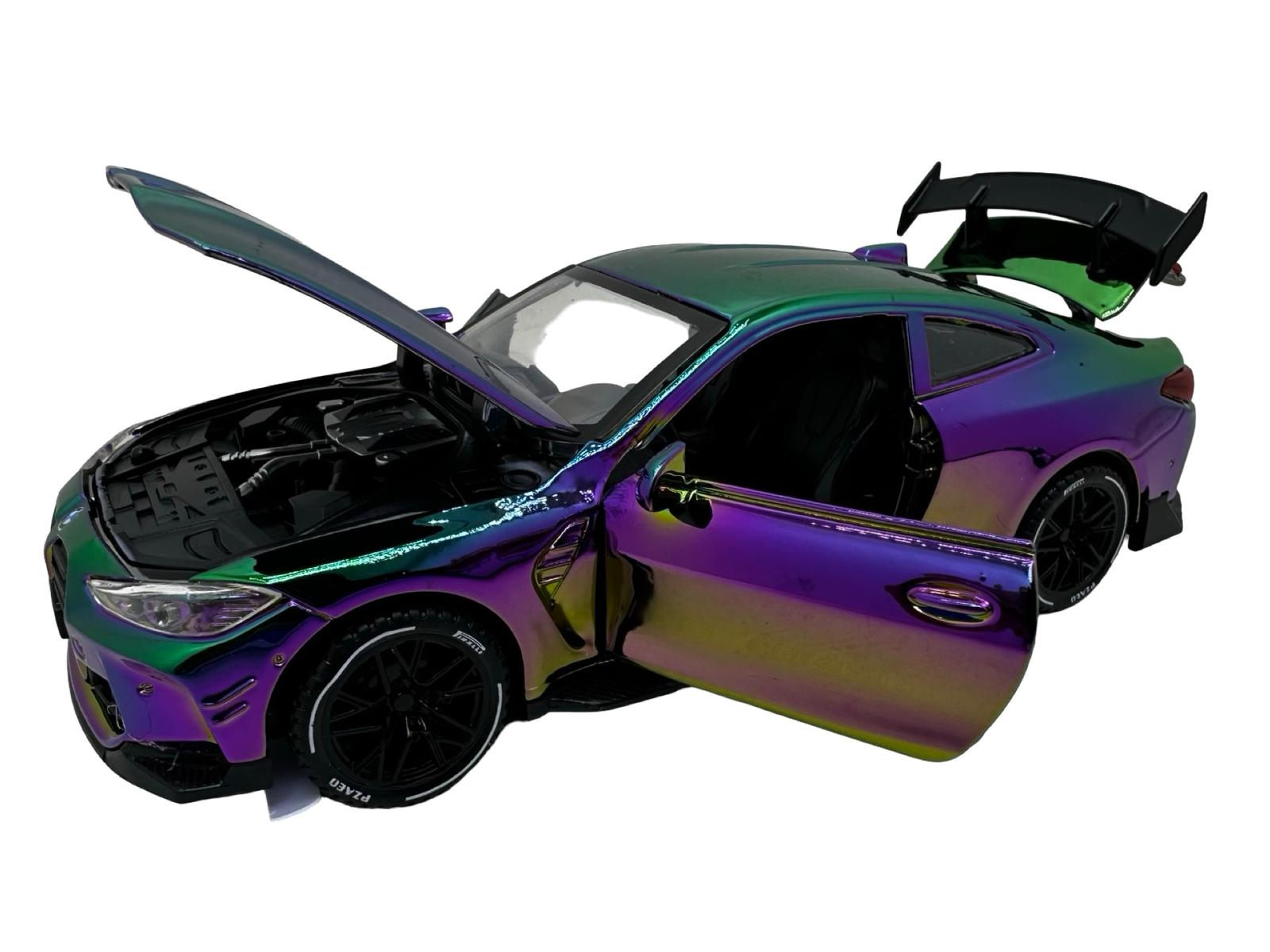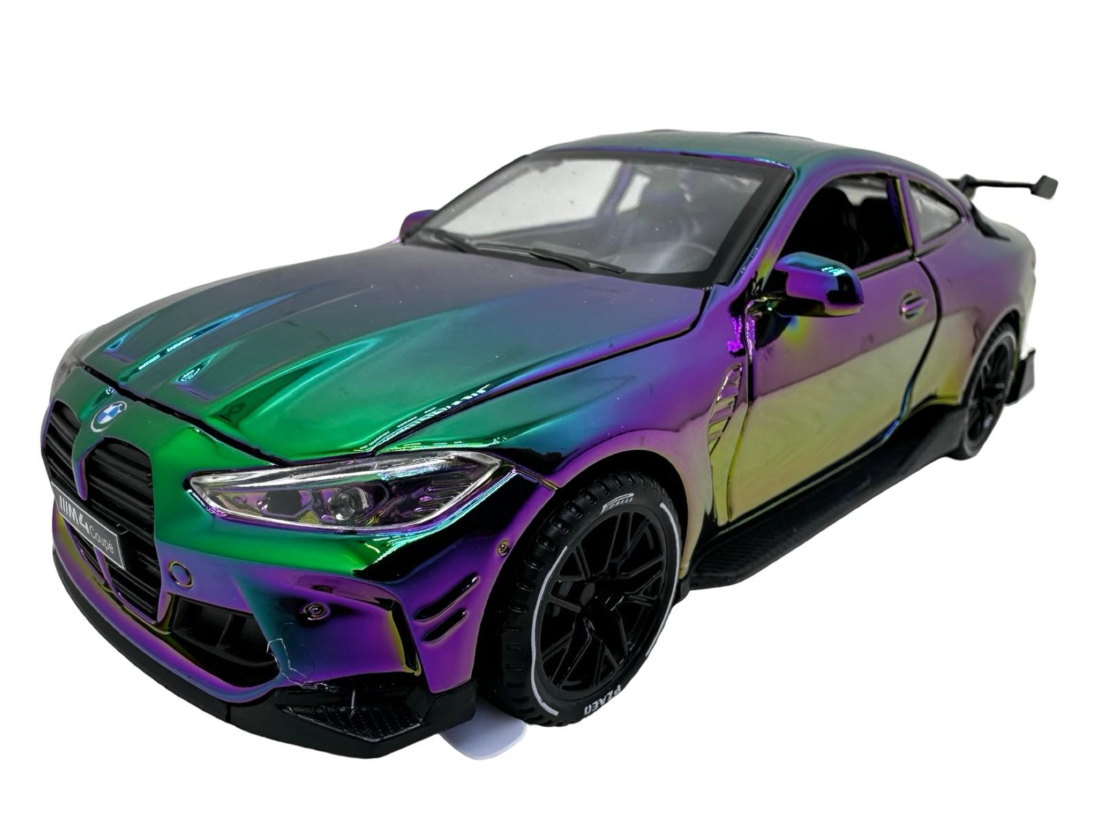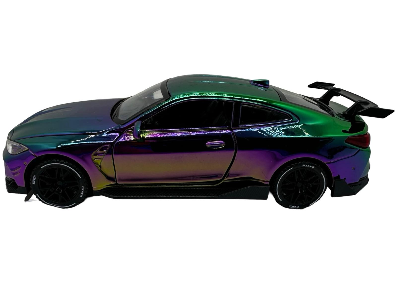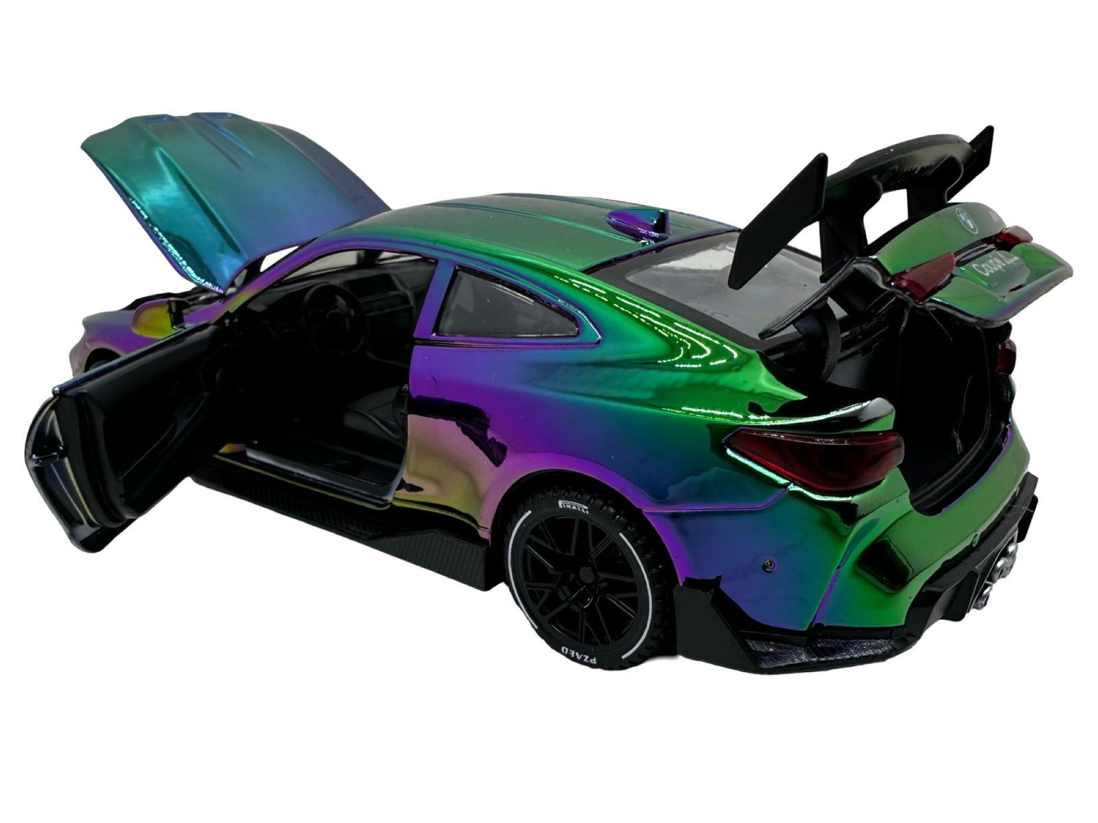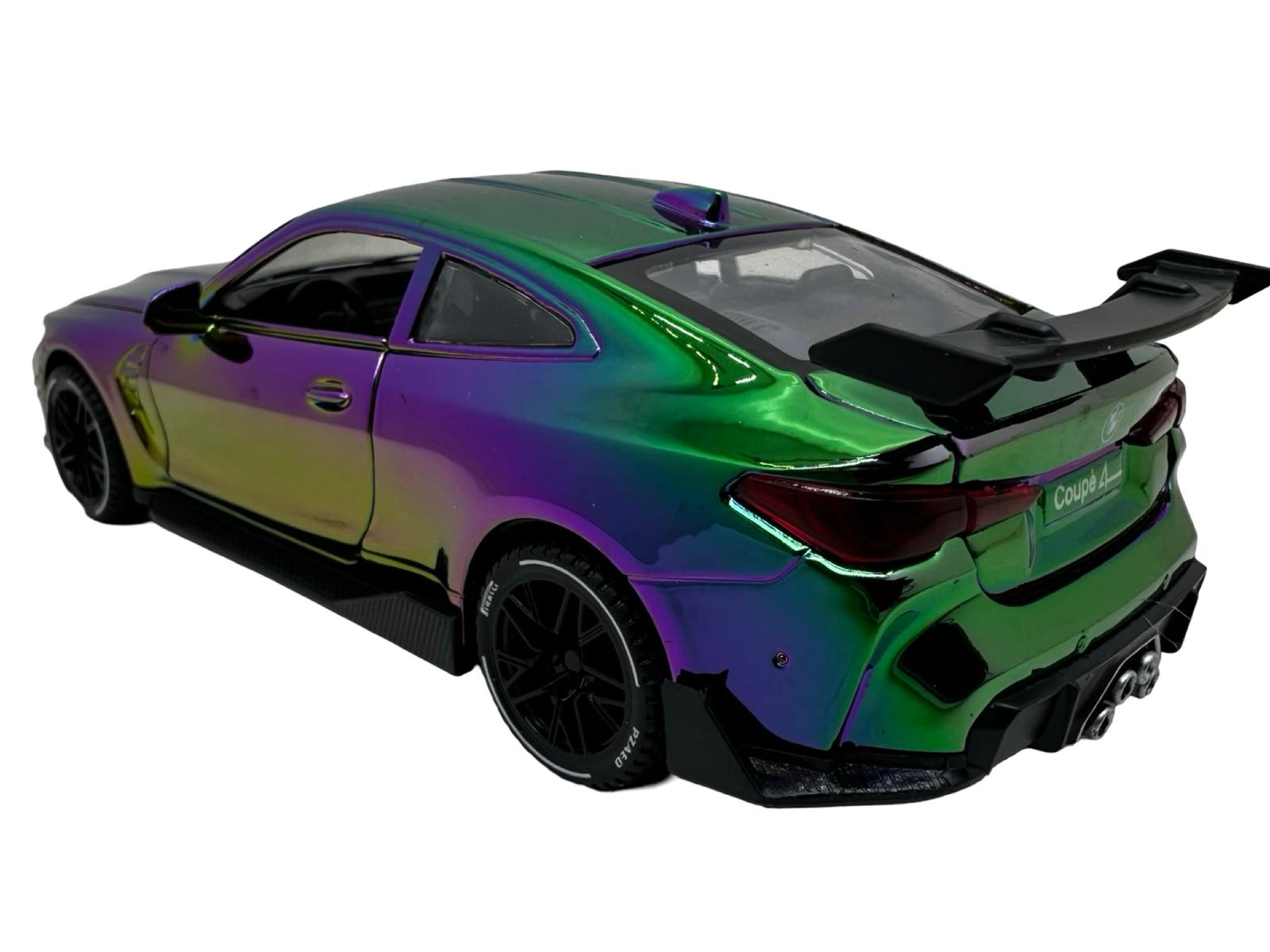 Macheta Auto BMW M4 Coupe replica metalizat cameleon verde sport cu usi deschise 1:32