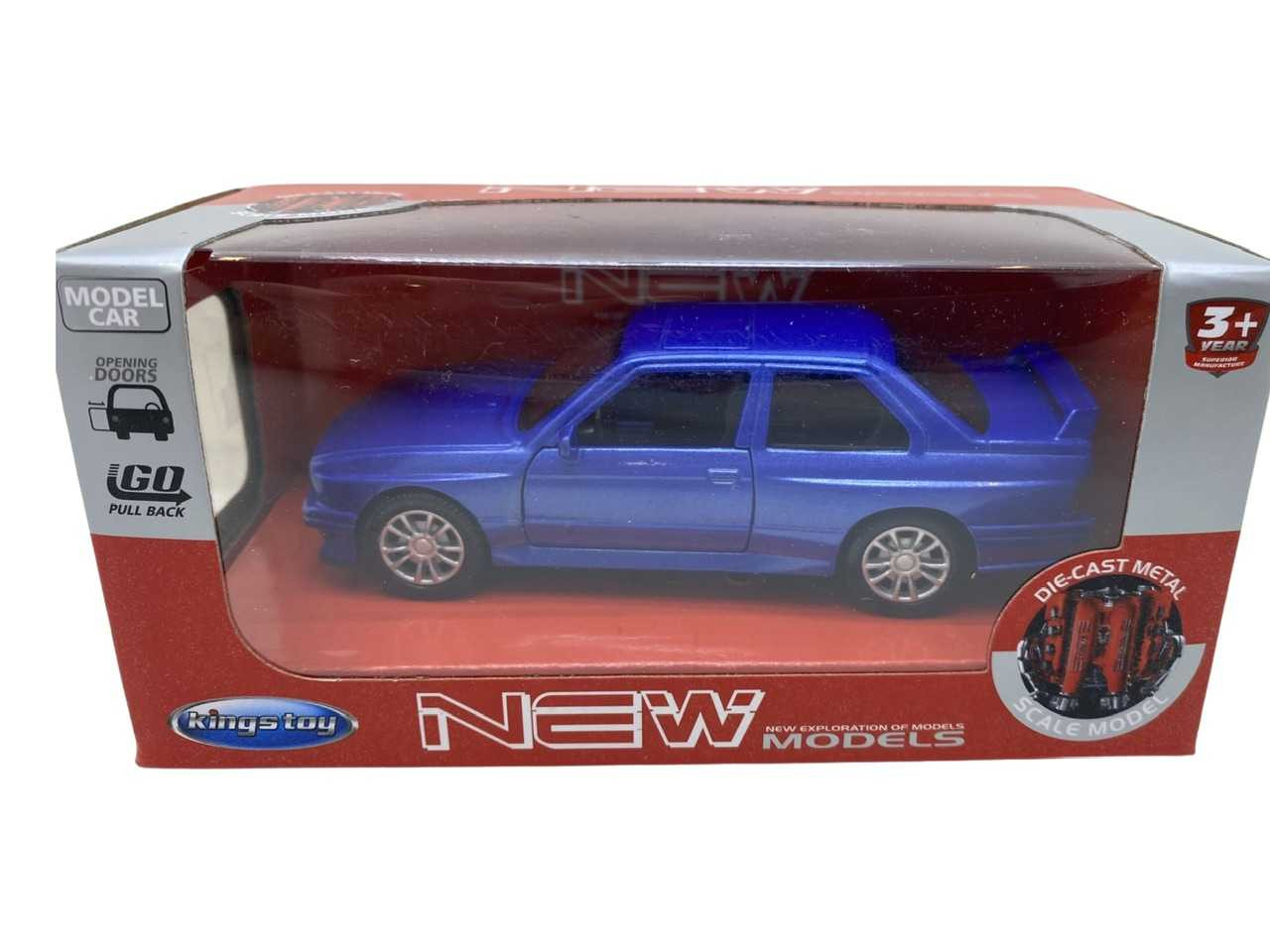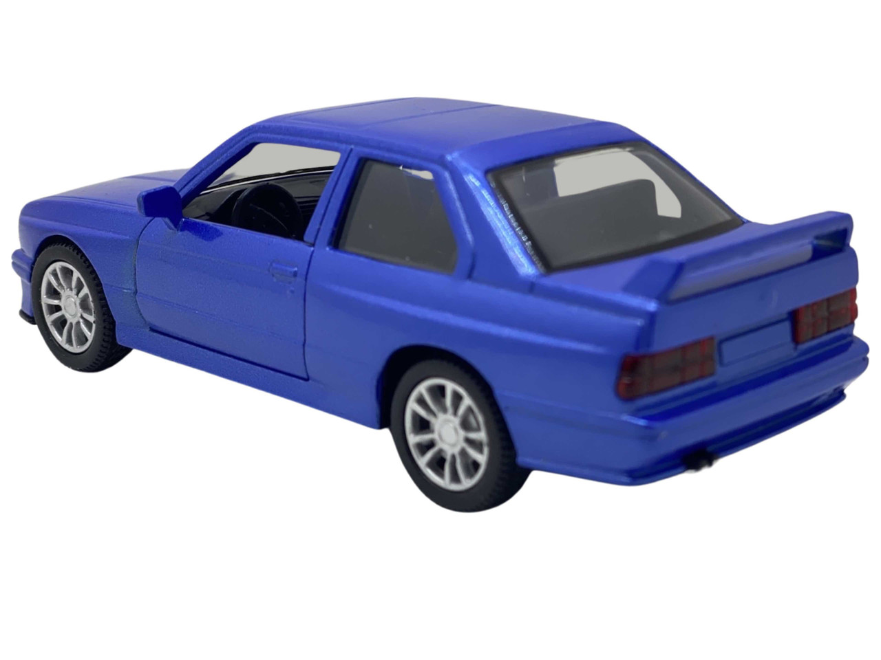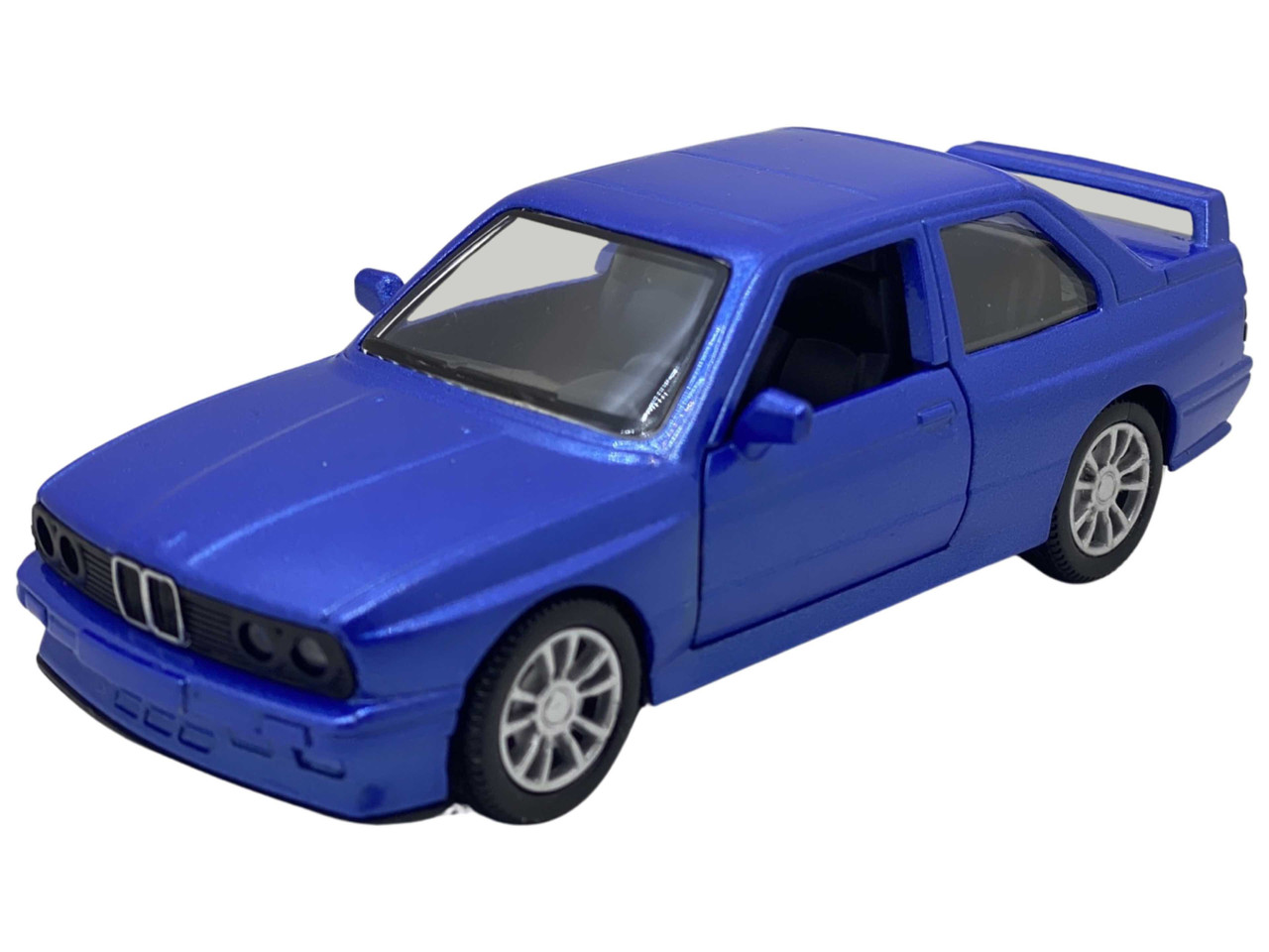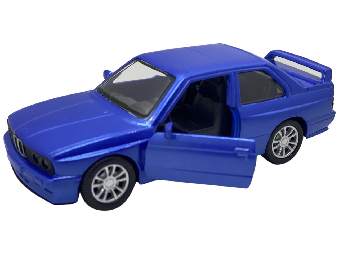 Macheta BMW E30 replica ursulet albastru 1:38 cu resort, deschide usile