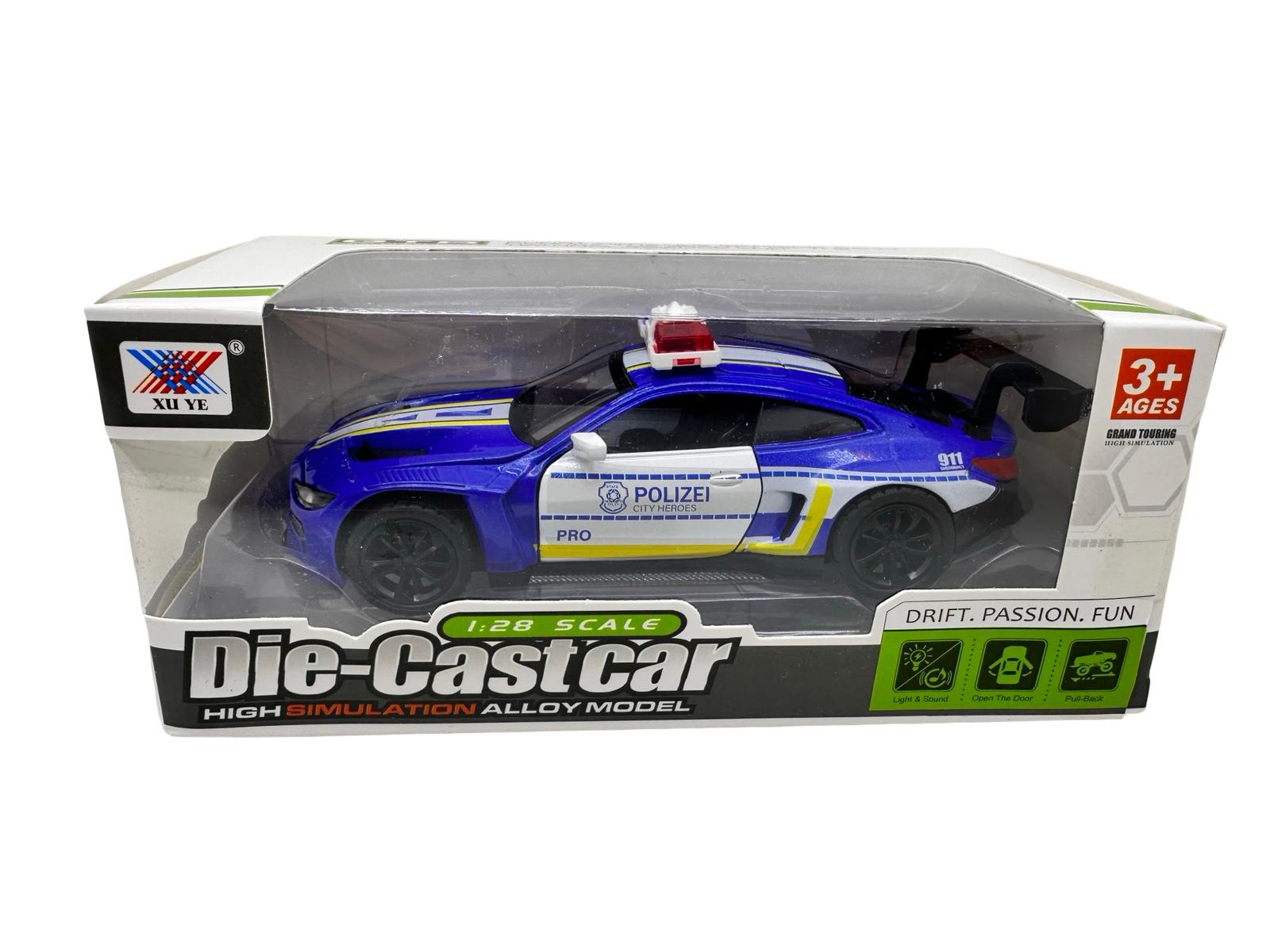 Descopera o macheta sport de politie la scara 1:28, realizata din metal si plastic durabil, cu un design agresiv si detalii realiste inspirate din masinile de interventie moderna. Modelul dispune de efecte de lumini si sunete, ceea ce il face extrem de atractiv pentru copii si colectionari.
