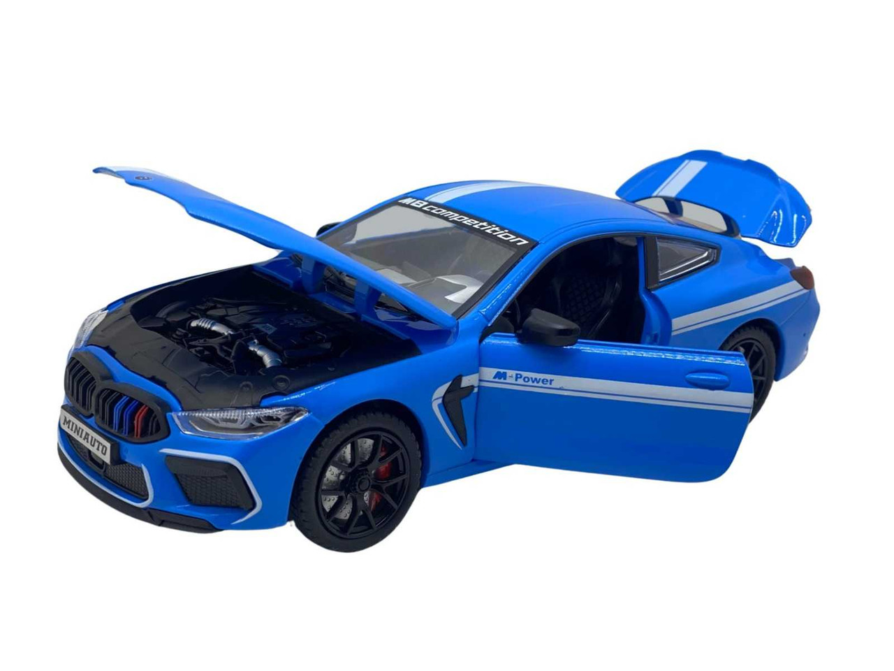 Macheta Bmw M8 albastru 1:24 replica deschide toate usile- sunet si lumini