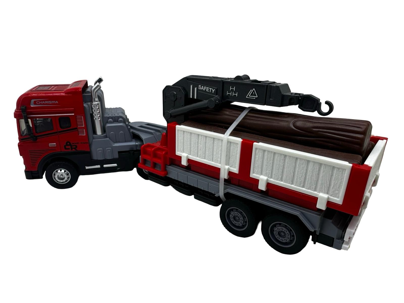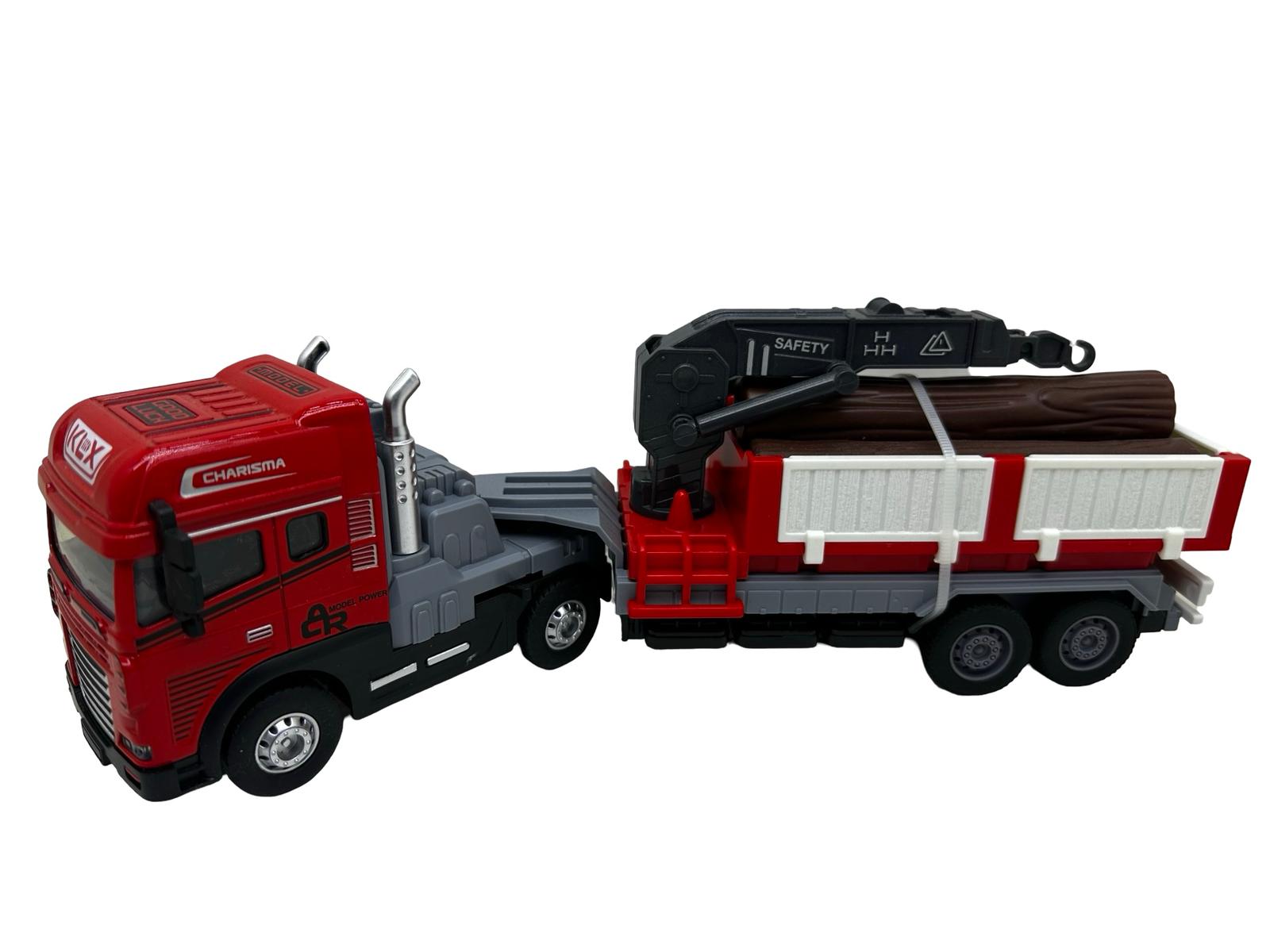 Macheta Camion cu macara, lumini sunete si remorca transport lemne