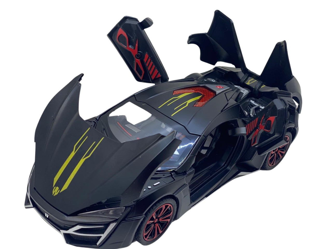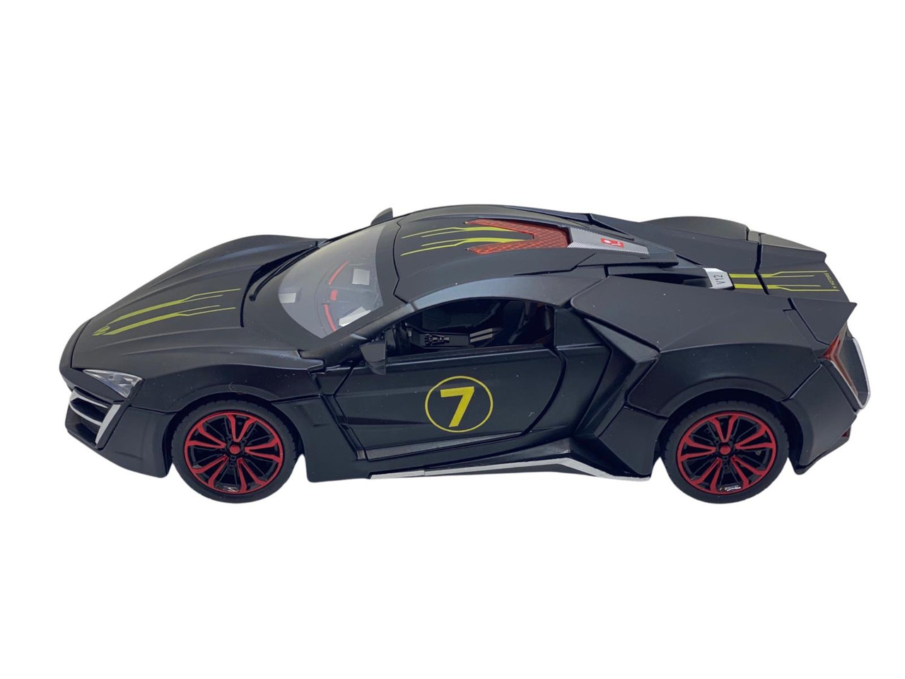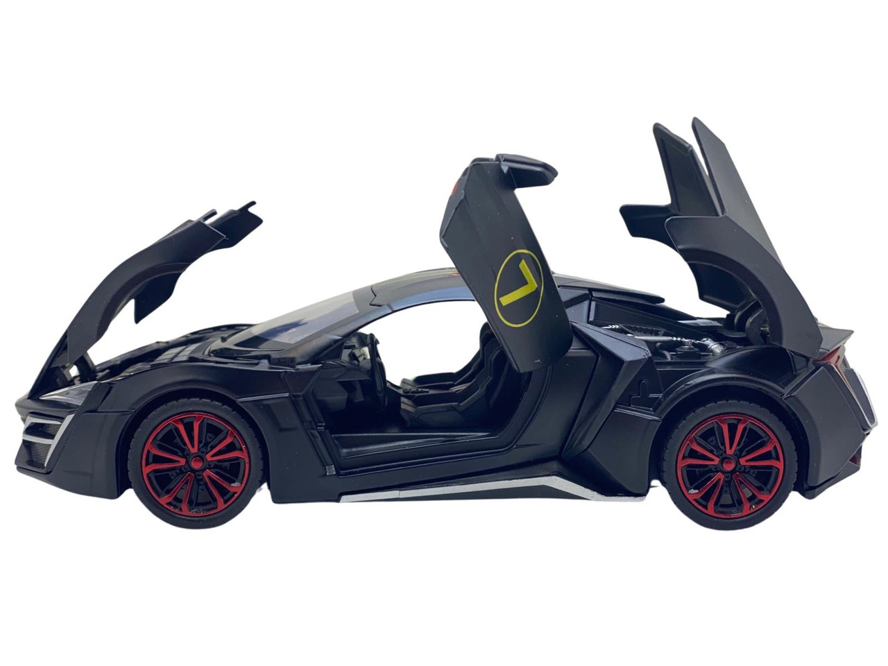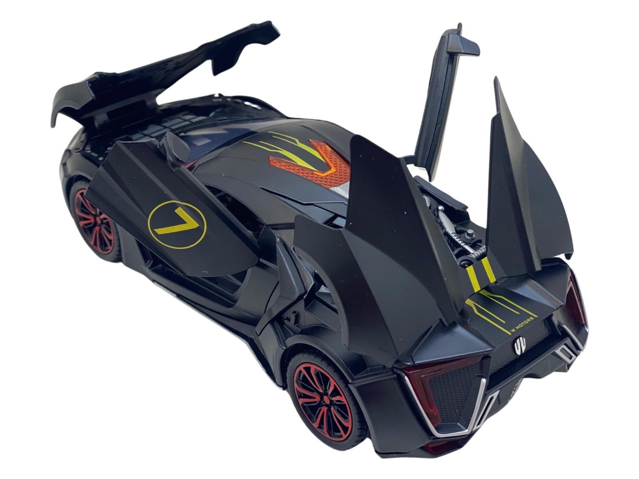 Macheta din metal Lykan negru replica cu fum scara 1:24. Masinuta Deschide usile fata din spate, portbagajul si capota. Este produs replica si este sigilata. Are detalii foarte bune si finisaje de calitate.