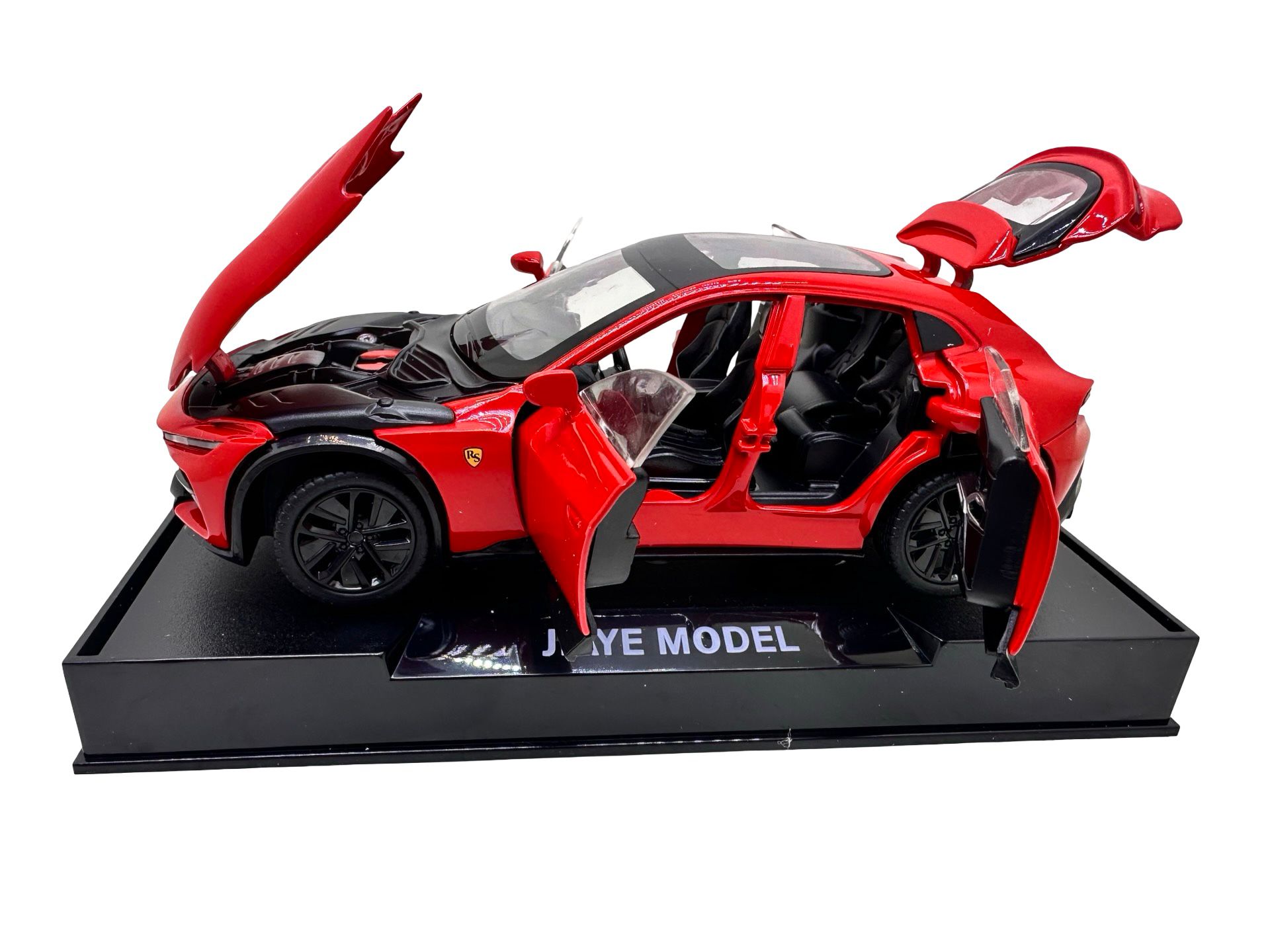 Descopera eleganta si performanta primului SUV Ferrari intr-o reproducere detaliata la scara 1:32. Aceasta macheta Ferrari Purosangue impresioneaza prin designul modern, finisajul rosu metalizat si functiile interactive care ofera o experienta realista.