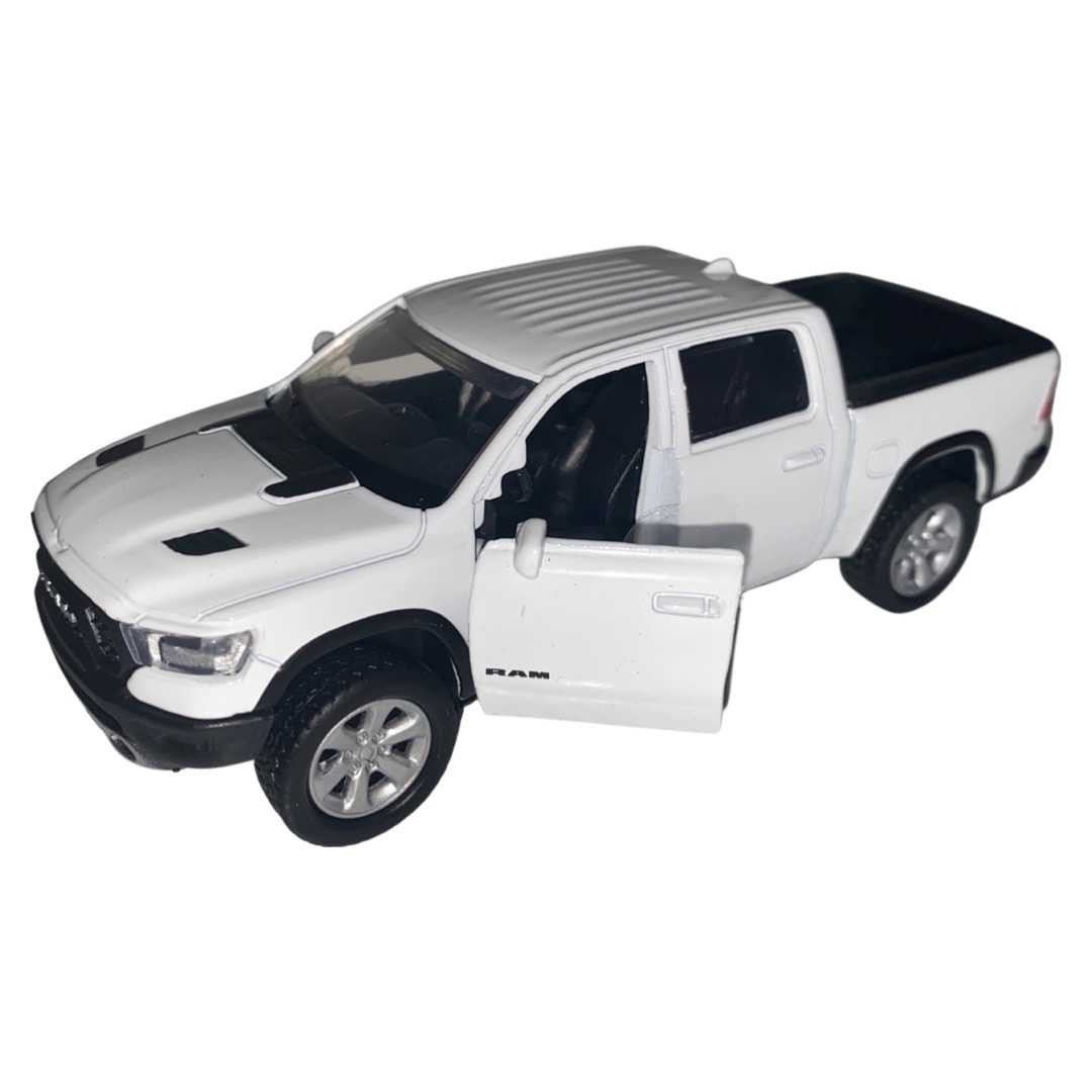 Macheta Ford Ram 1500 crew cab rebel de culoare alba. Masinuta este din metal si deschide usile din fata. Are resort si daca este trasa spre spate va demara cu viteza in fata. Este scara 1:43 si este o camioneta americana foarte puternica.