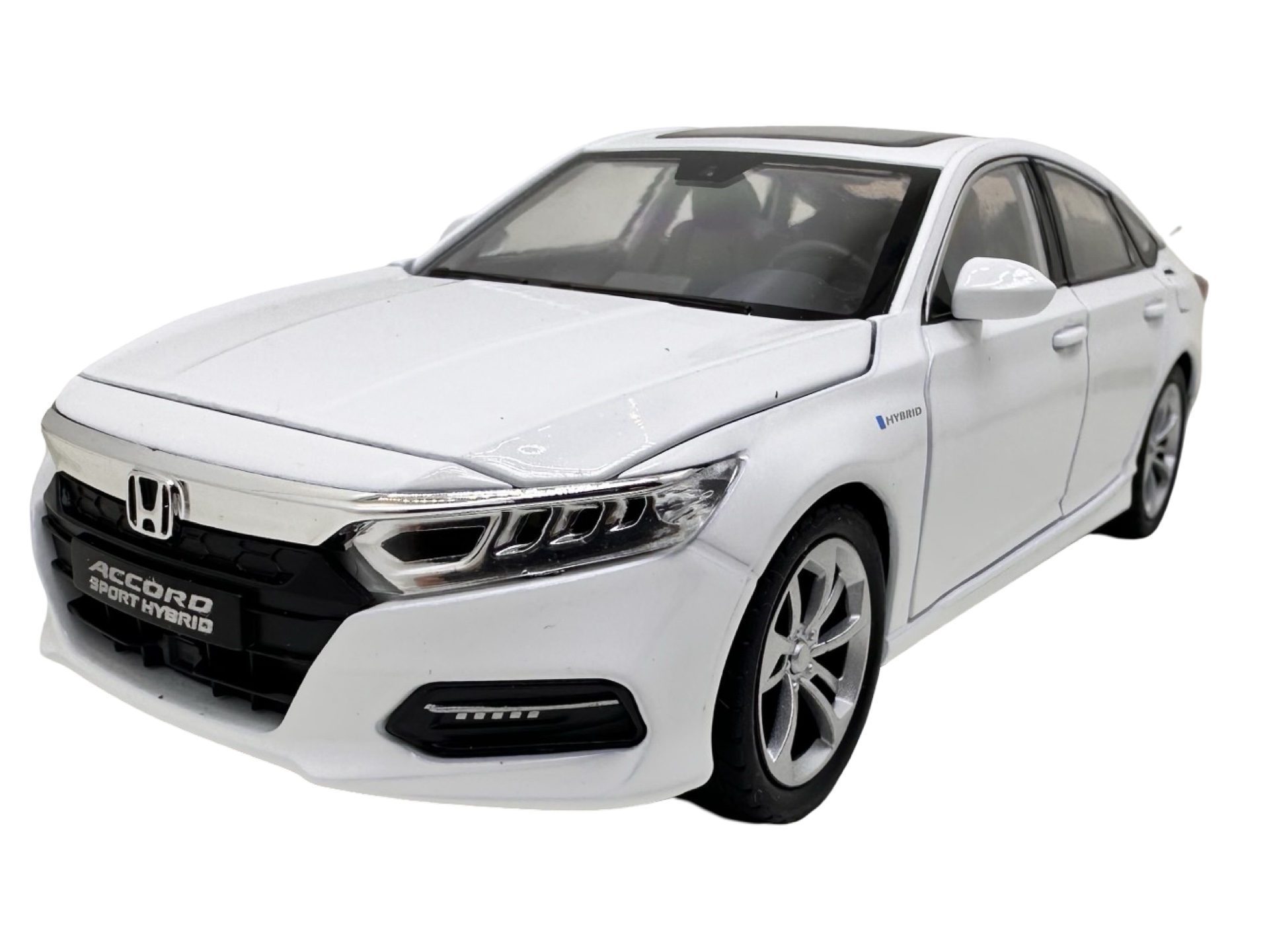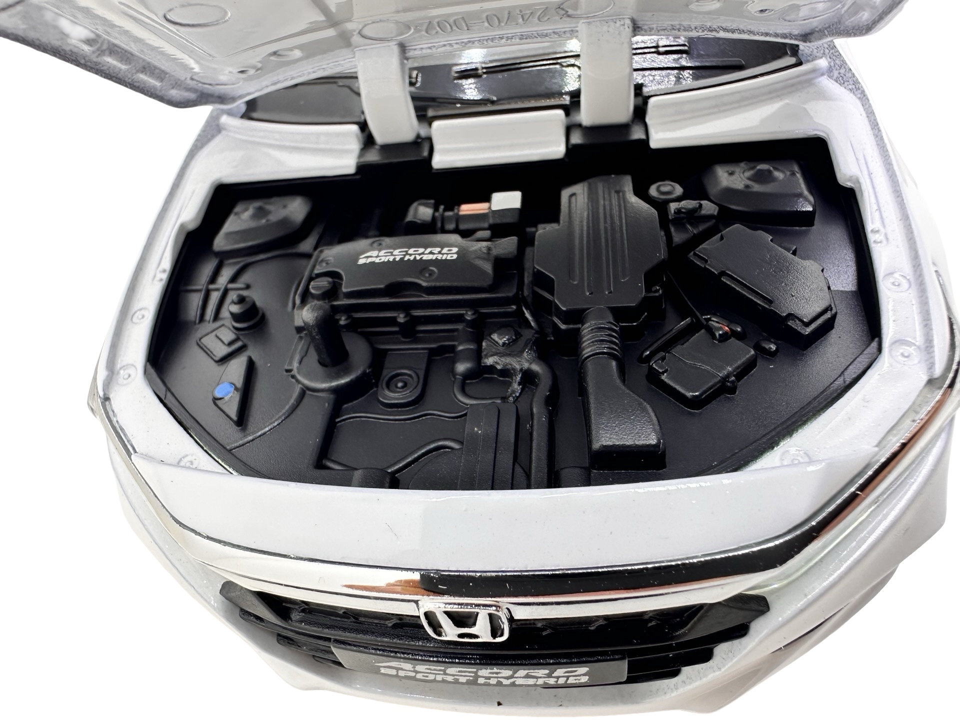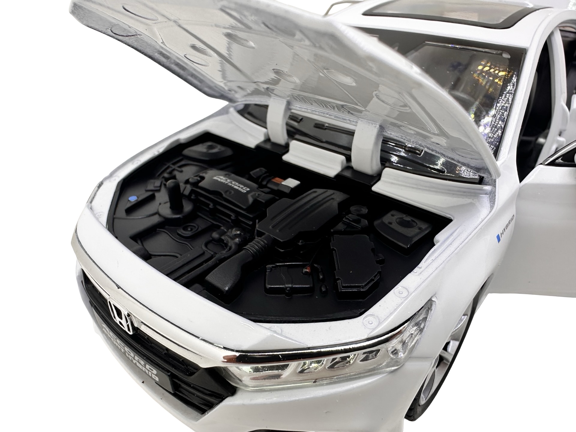 Modelul reproduce designul elegant al sedanului Honda Accord Sport Hybrid, avand caroserie metalica, interior detaliat si finisaje realiste. Macheta dispune de mai multe elemente functionale: usile se pot deschide, capota fata se ridica pentru a dezvalui compartimentul motorului, iar portbagajul se poate deschide pentru un plus de realism.