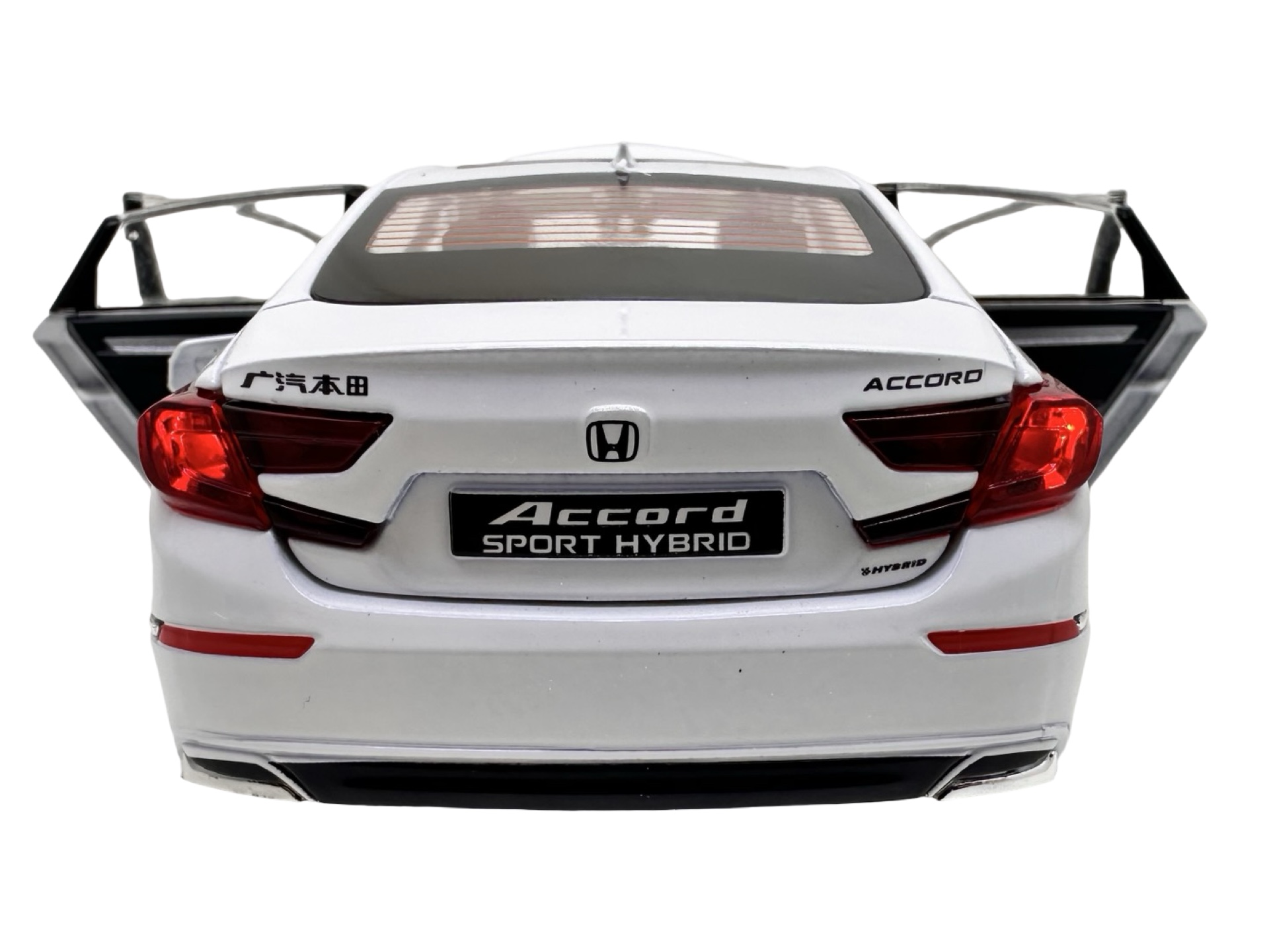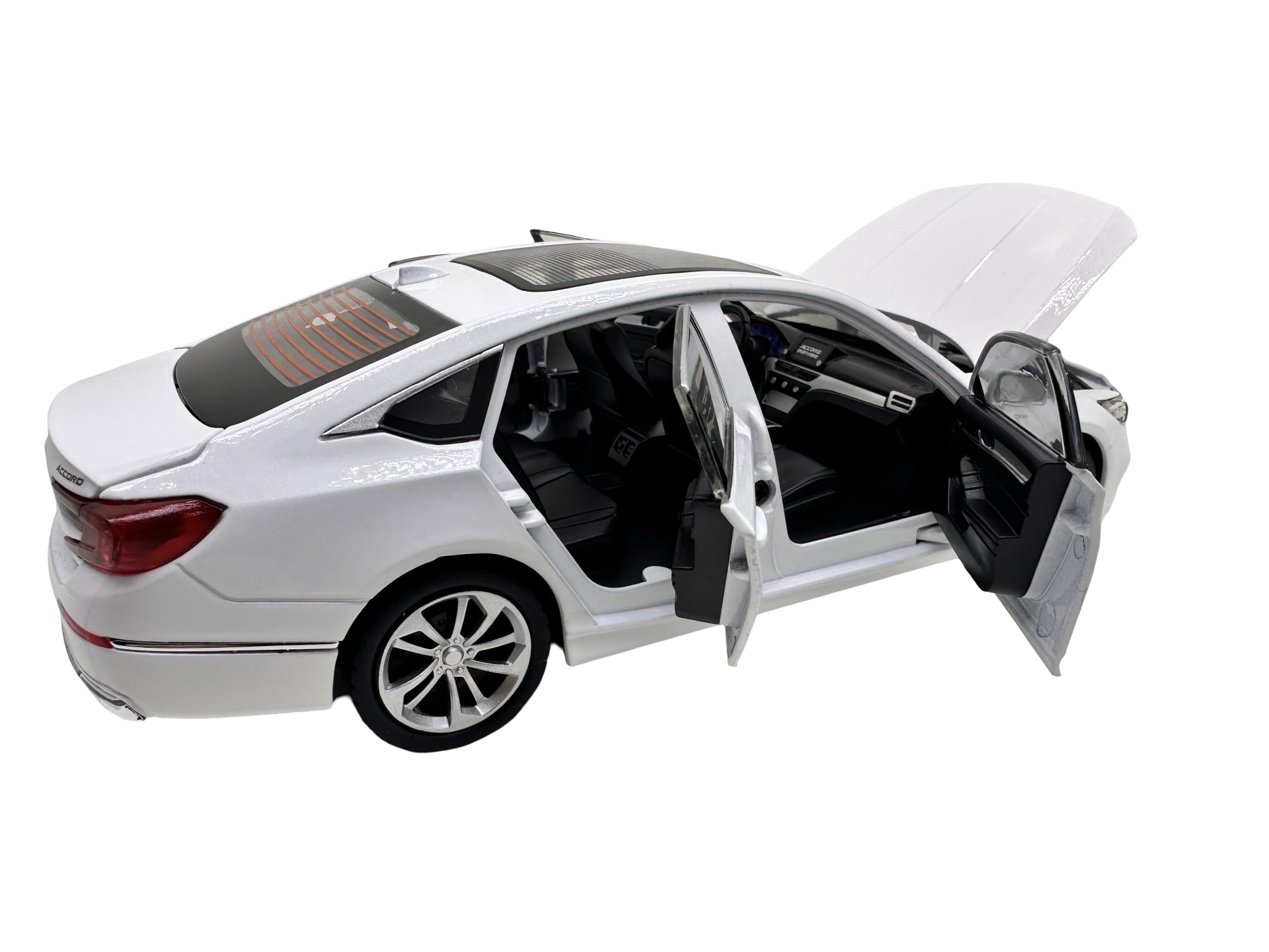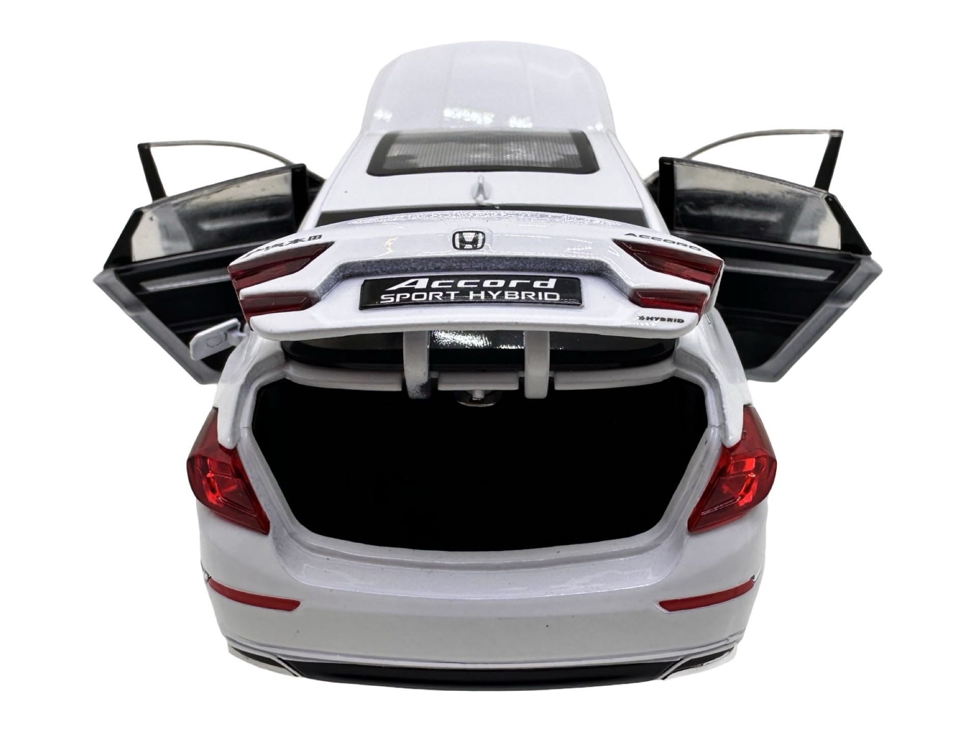 Modelul reproduce designul elegant al sedanului Honda Accord Sport Hybrid, avand caroserie metalica, interior detaliat si finisaje realiste. Macheta dispune de mai multe elemente functionale: usile se pot deschide, capota fata se ridica pentru a dezvalui compartimentul motorului, iar portbagajul se poate deschide pentru un plus de realism.
