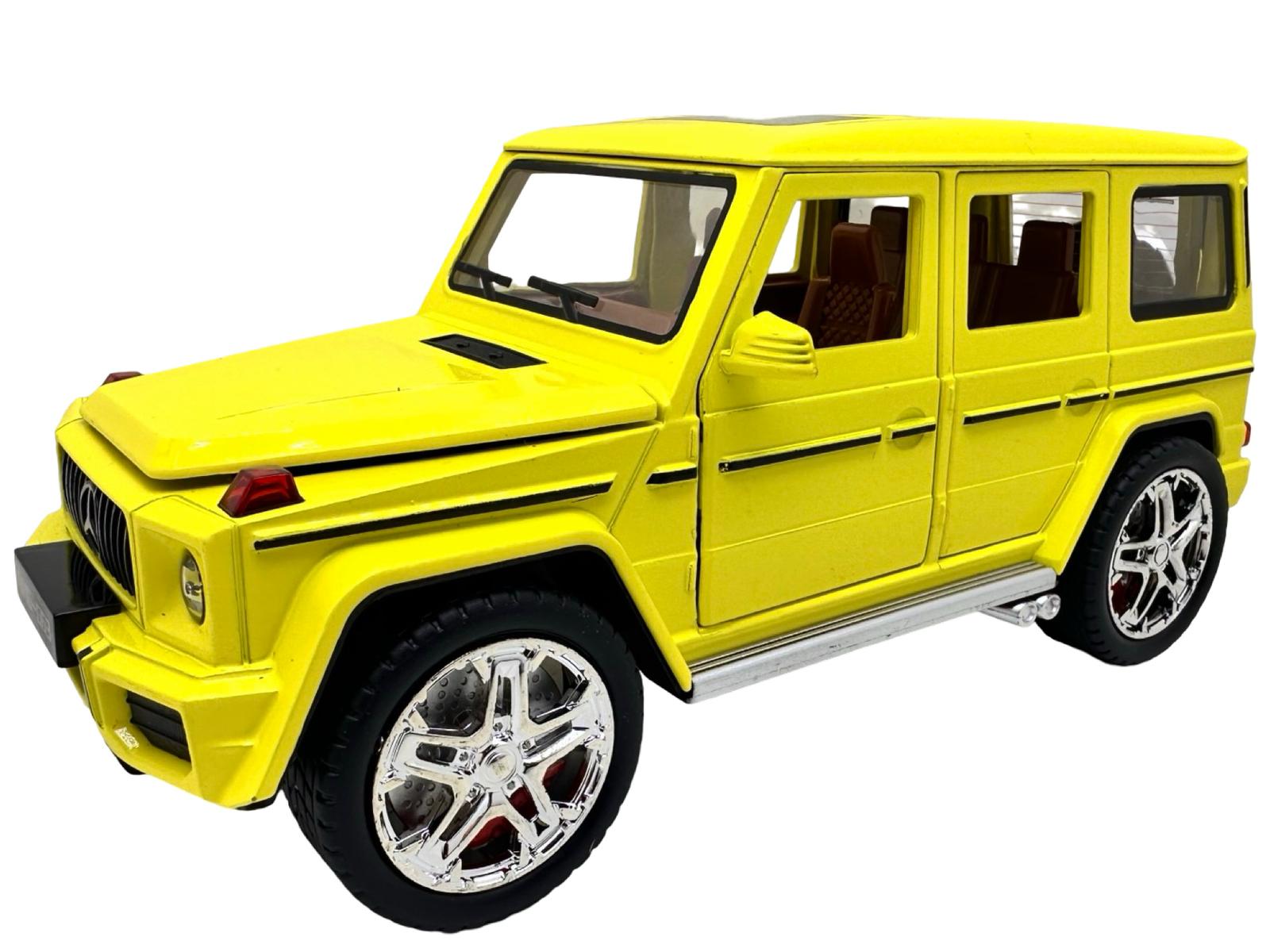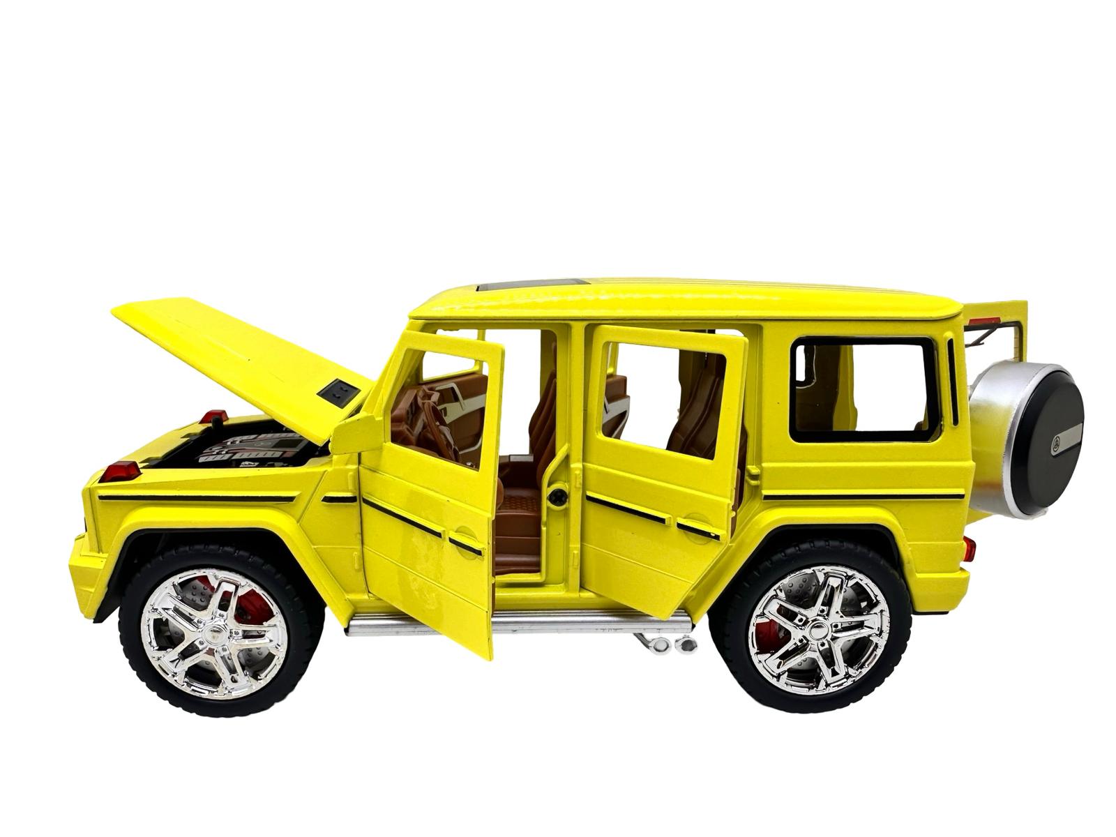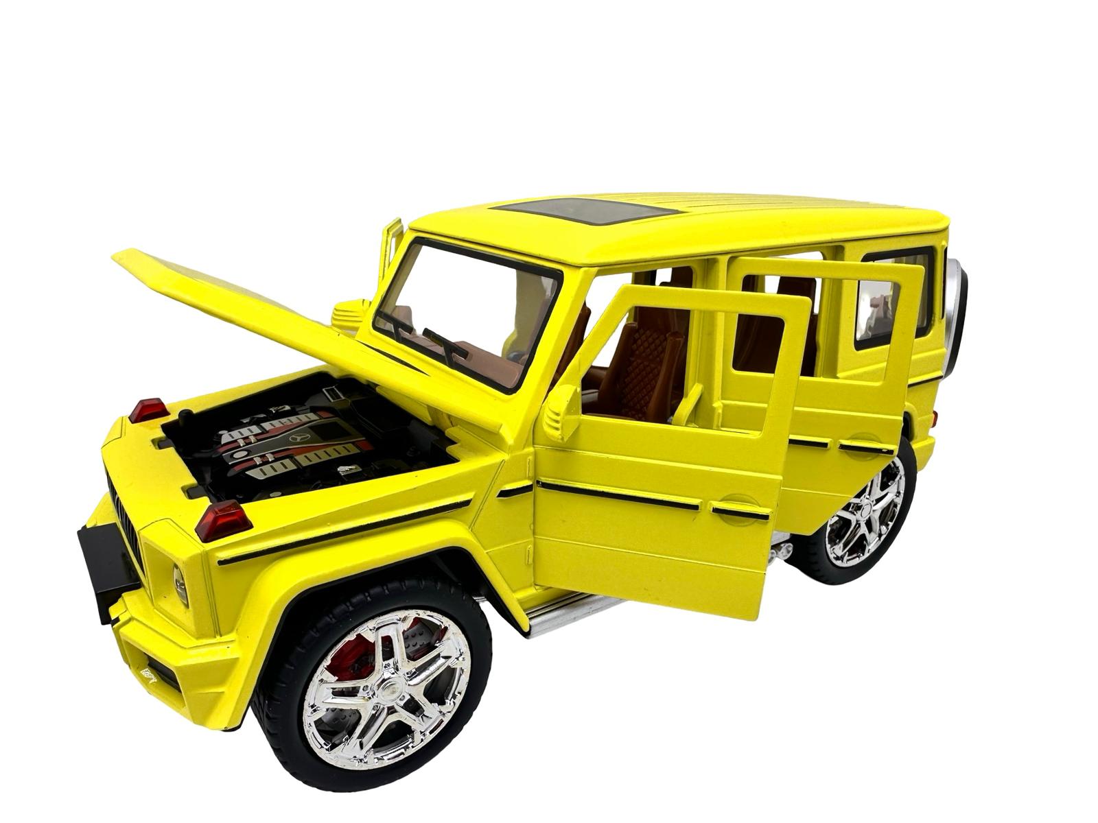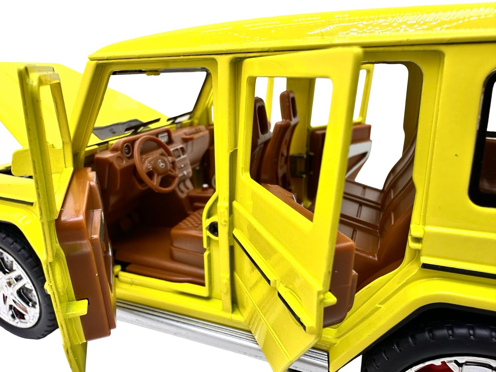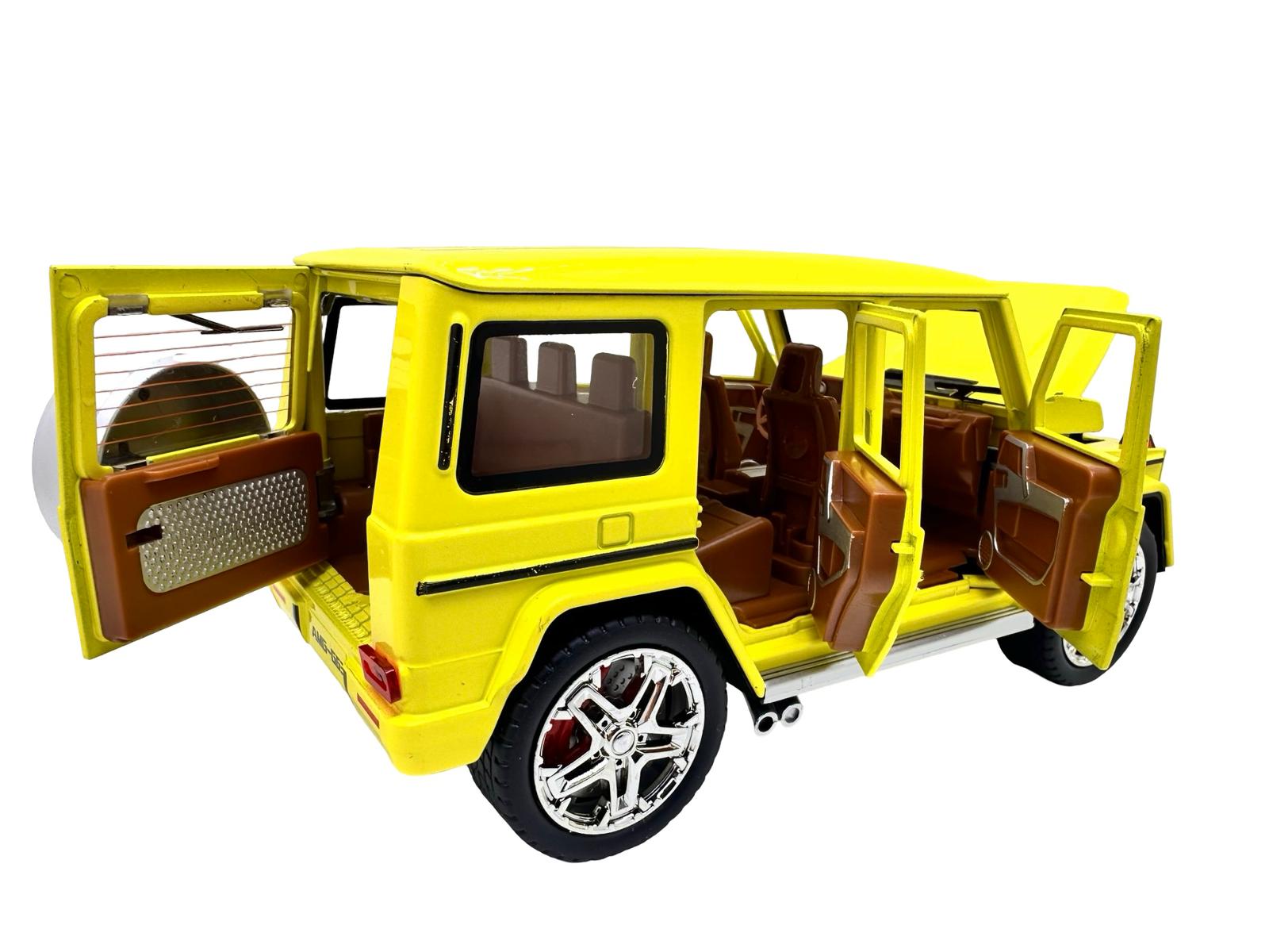 Macheta Mercedes G class galben 1:24 replica metal sunete si lumini, usi si capota deschise