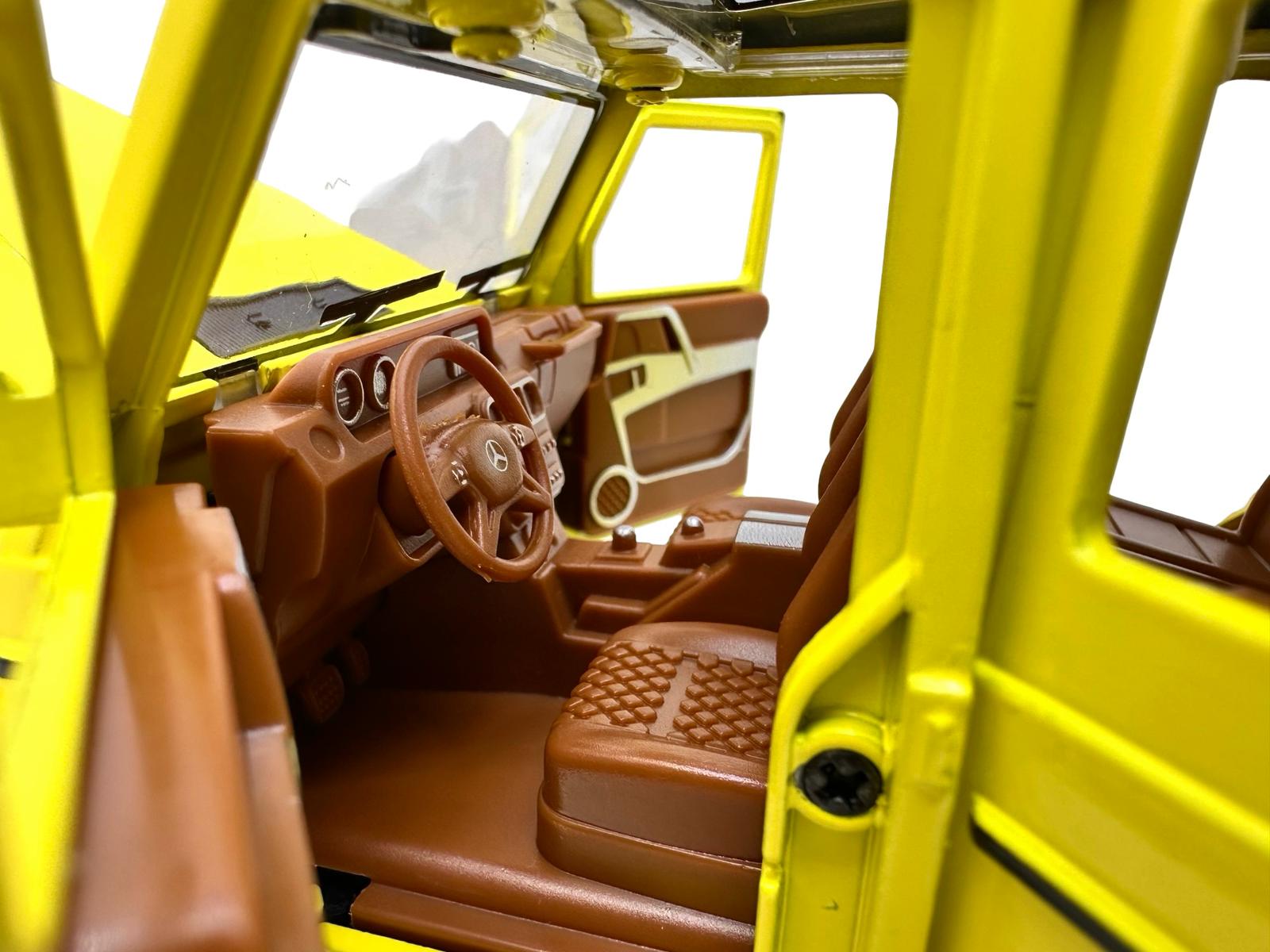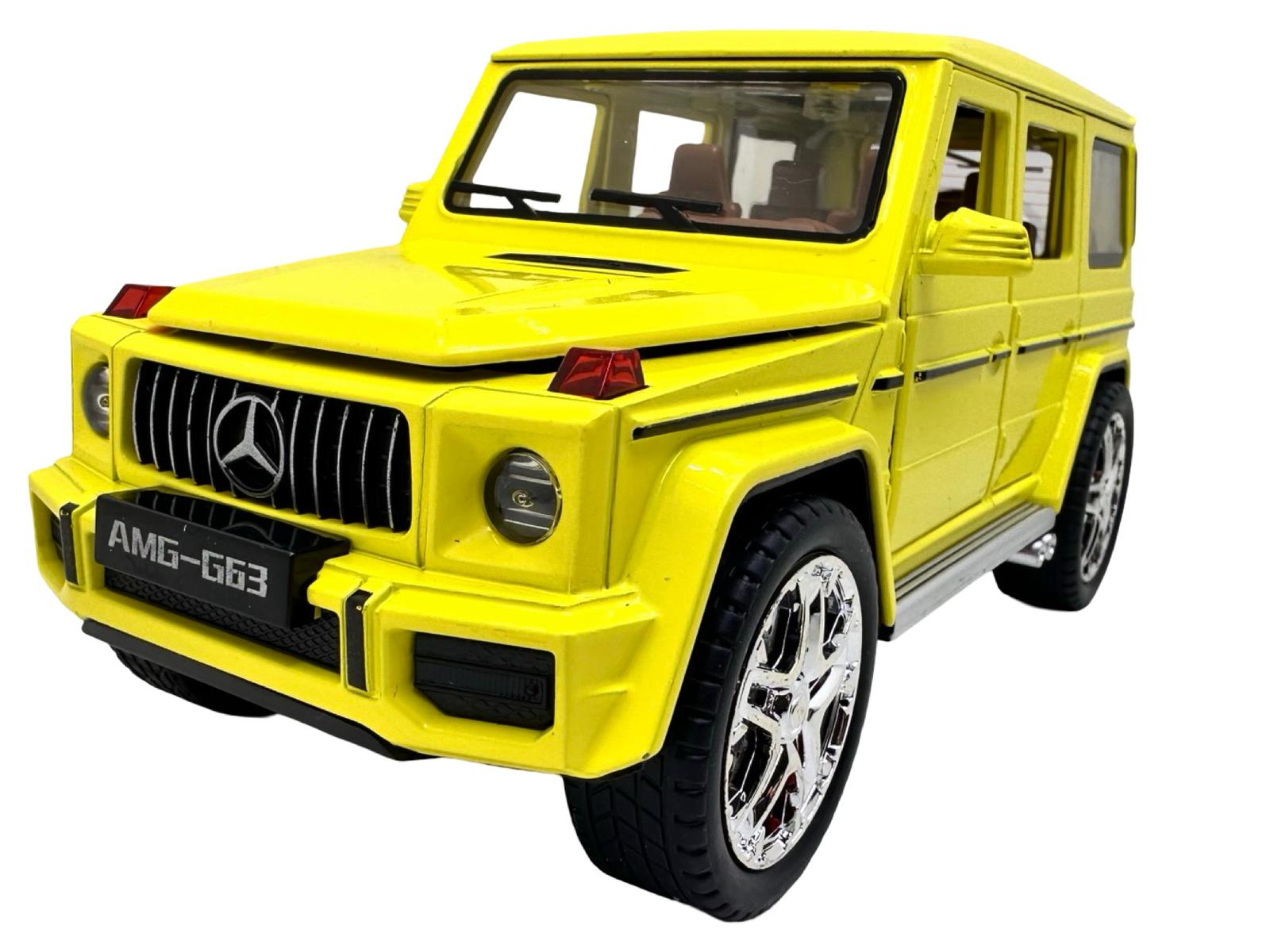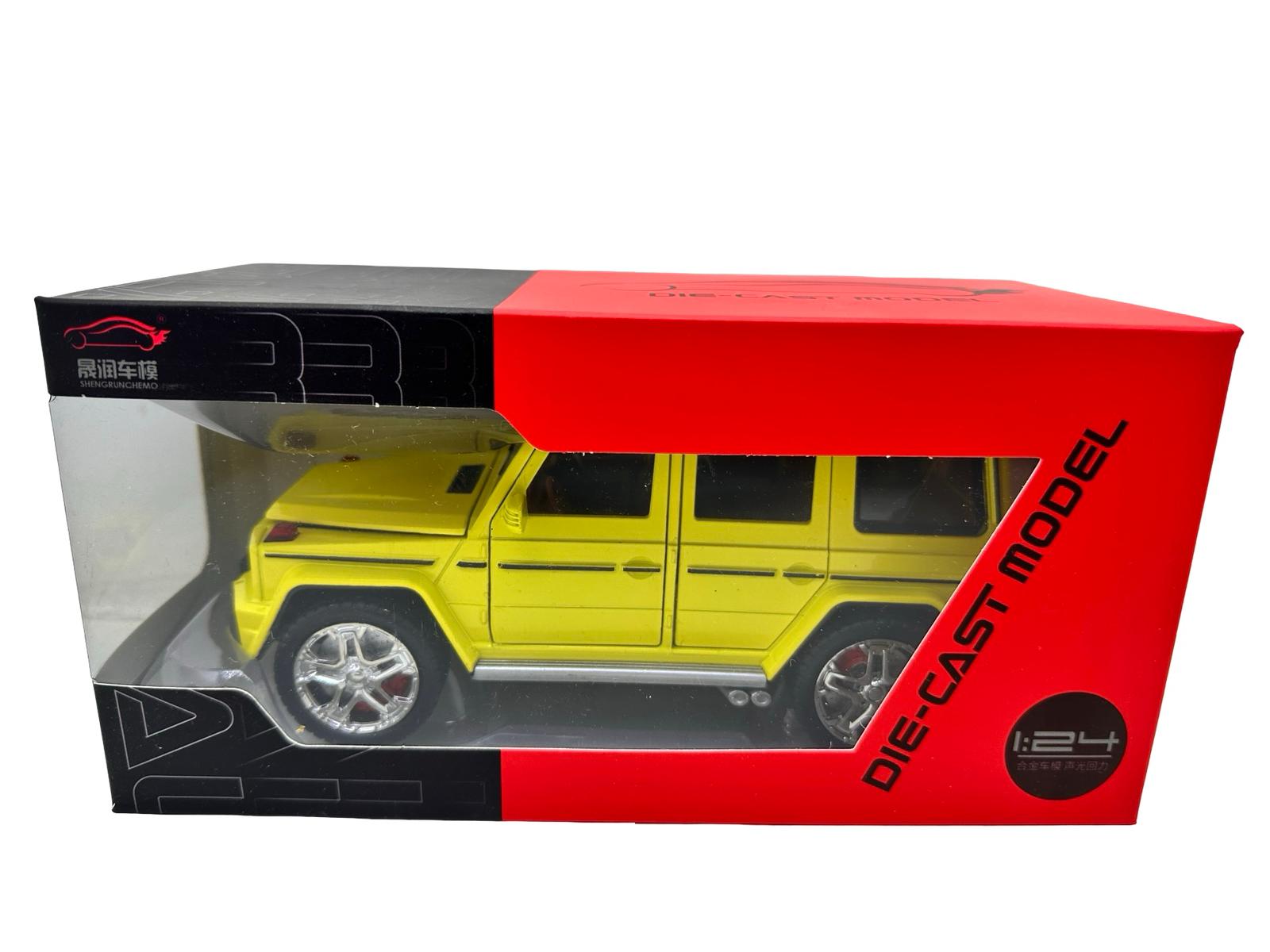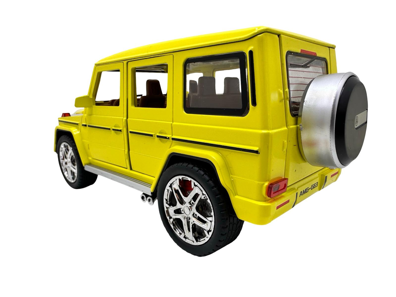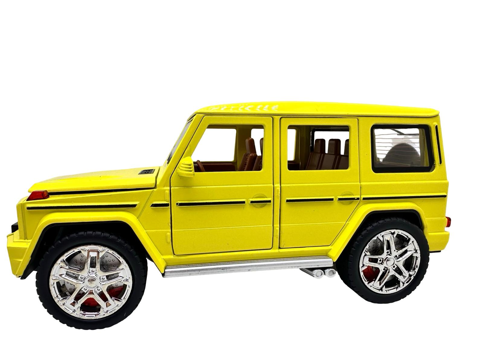 Macheta Mercedes G class galben 1:24 replica metal sunete si lumini, usi si capota deschise