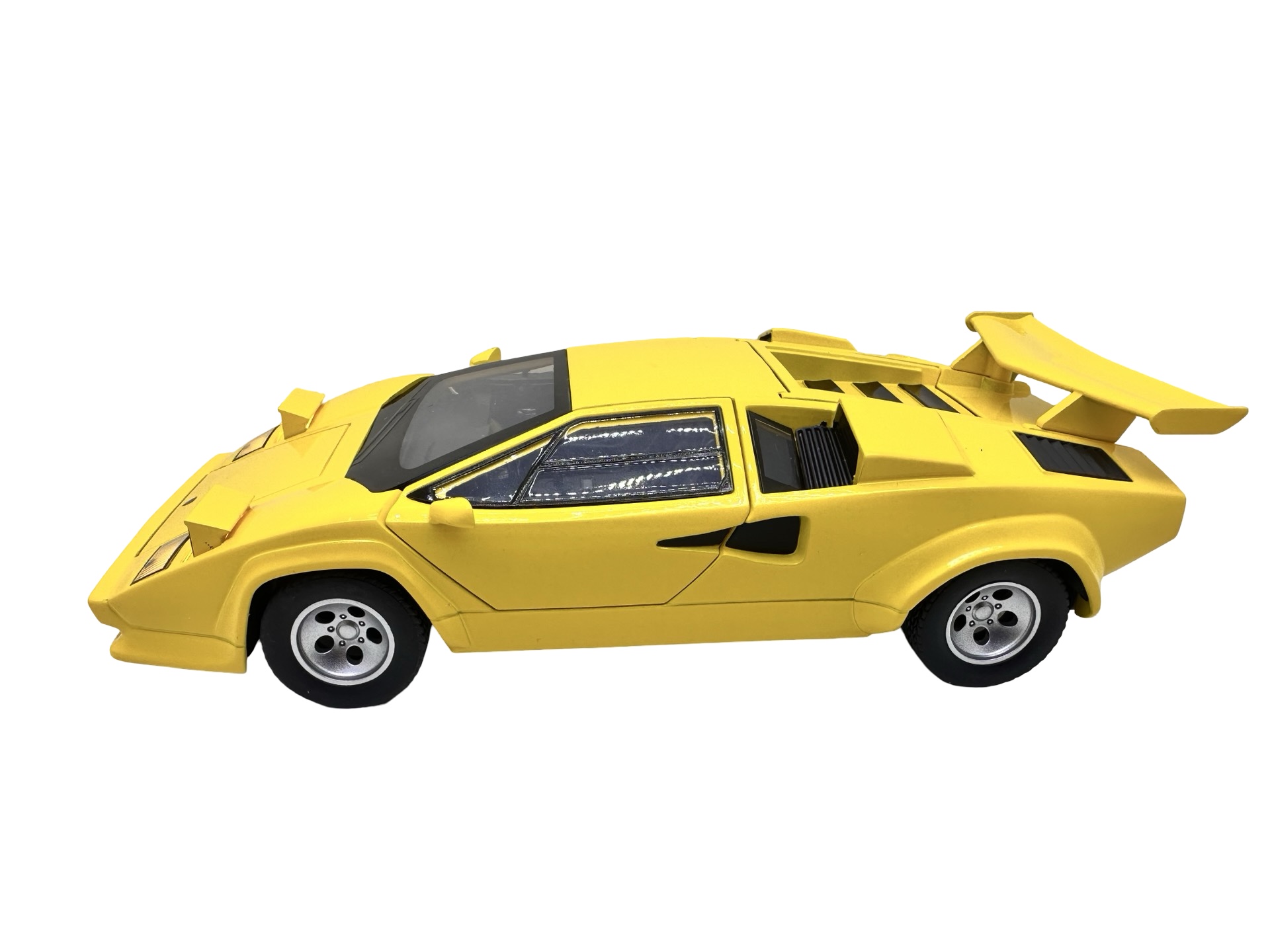 Macheta Lamborghini Countach galben 1:24 replica metal lumini si sunete usi tip foarfeca