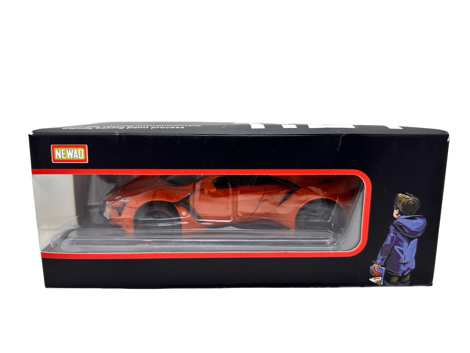 Macheta auto sport tip supercar este o replica impresionanta in stil futurist, realizata din metal die-cast, cu design agresiv si detalii premium. Modelul este echipat cu usi tip fluture, capota si portbagaj functionale, precum si efecte luminoase si sonore care sporesc realismul la joaca.