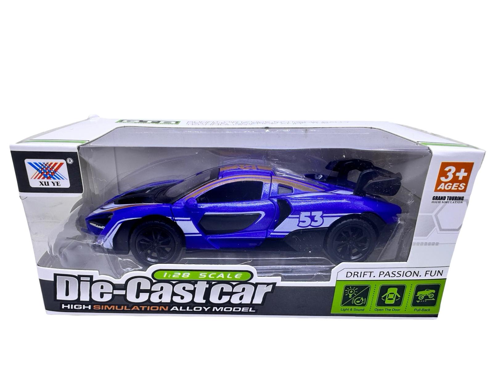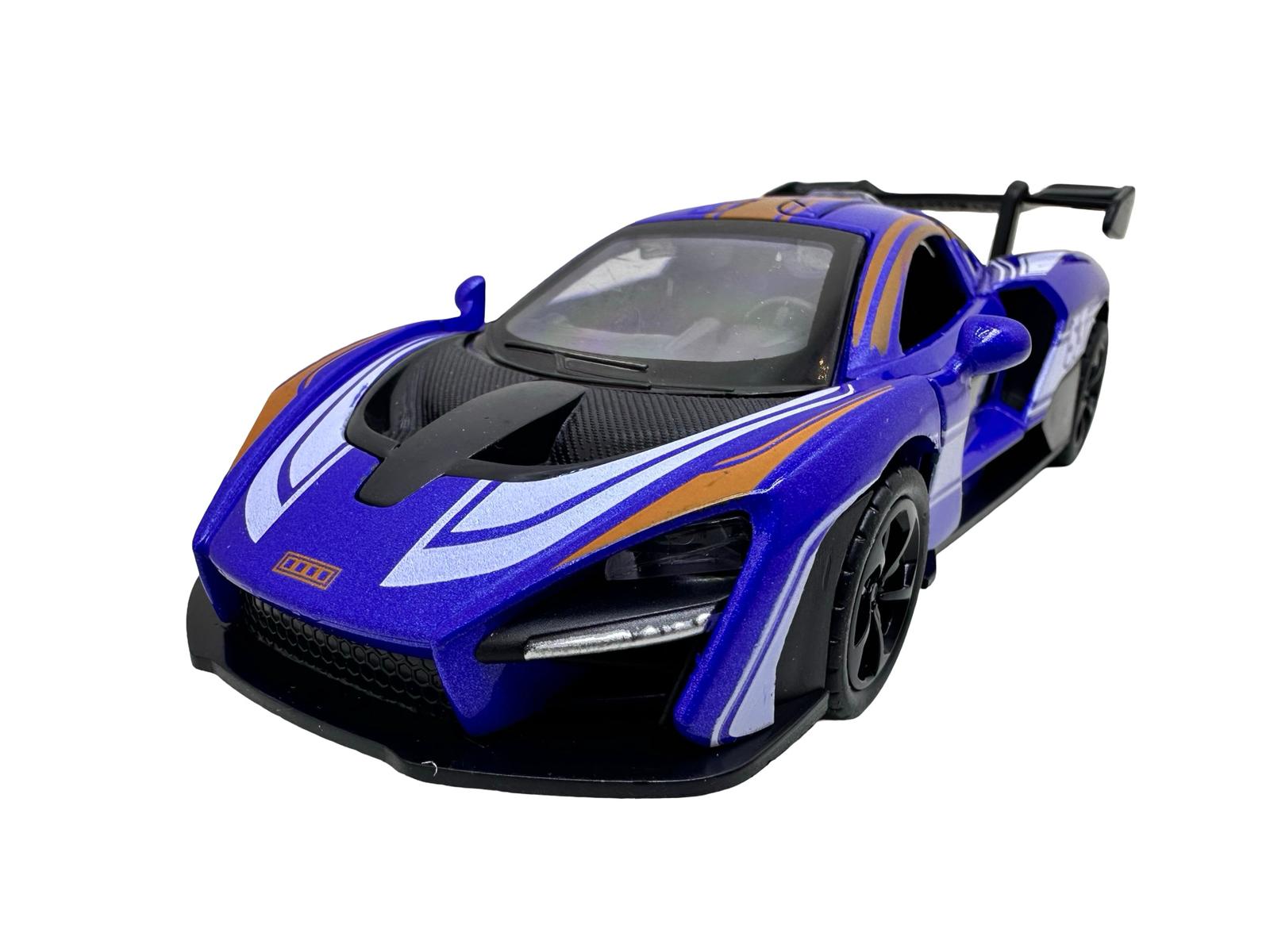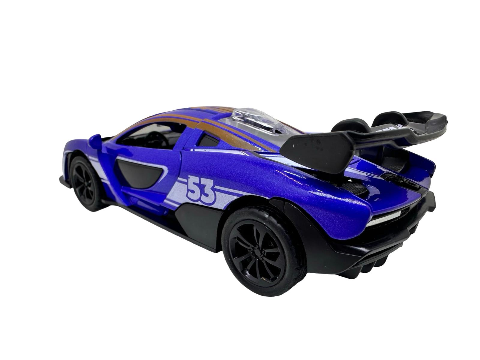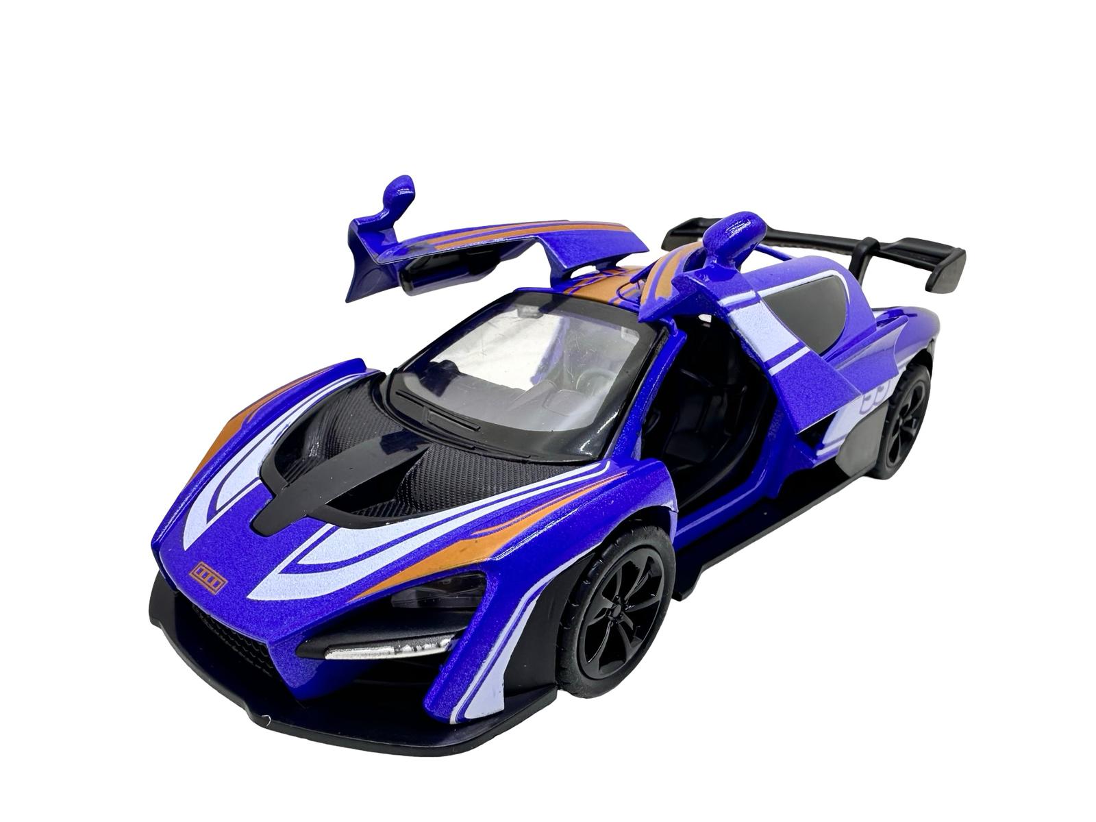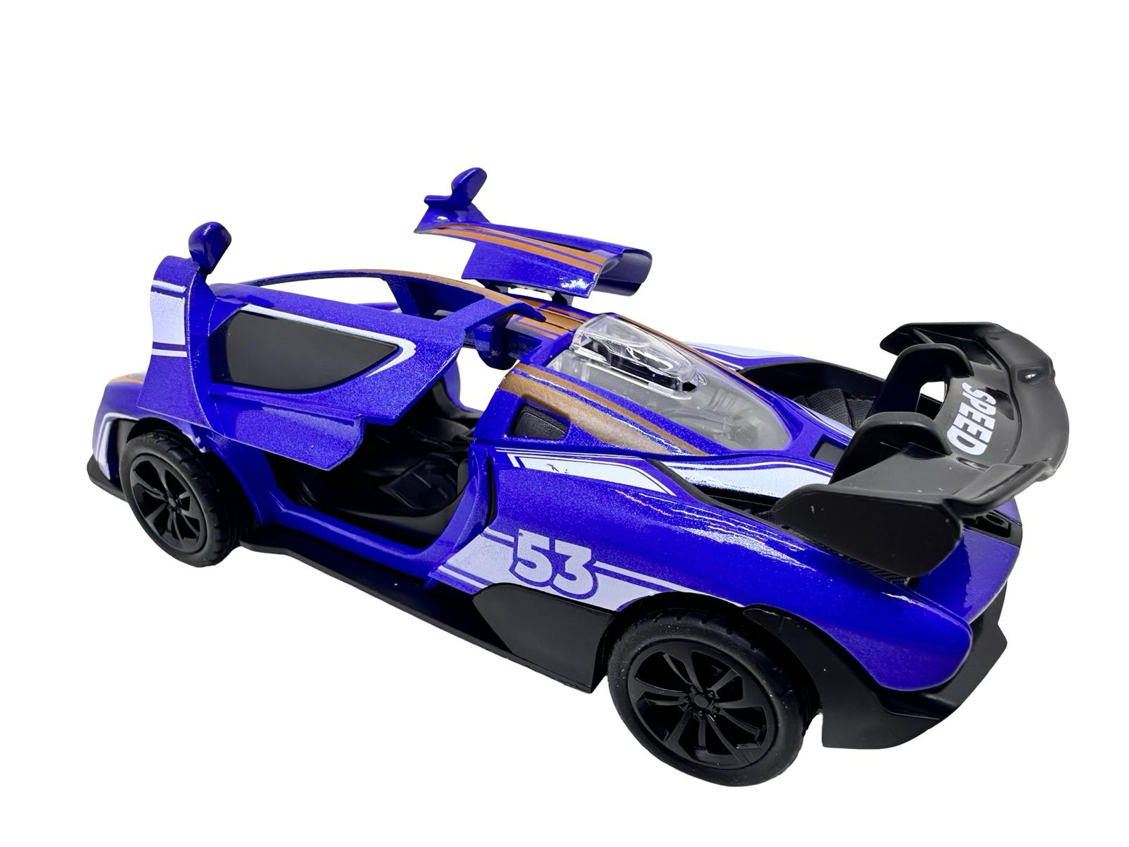 Macheta McLaren albastra 1:28 replica metal lumini si sunete usi fluture deschise