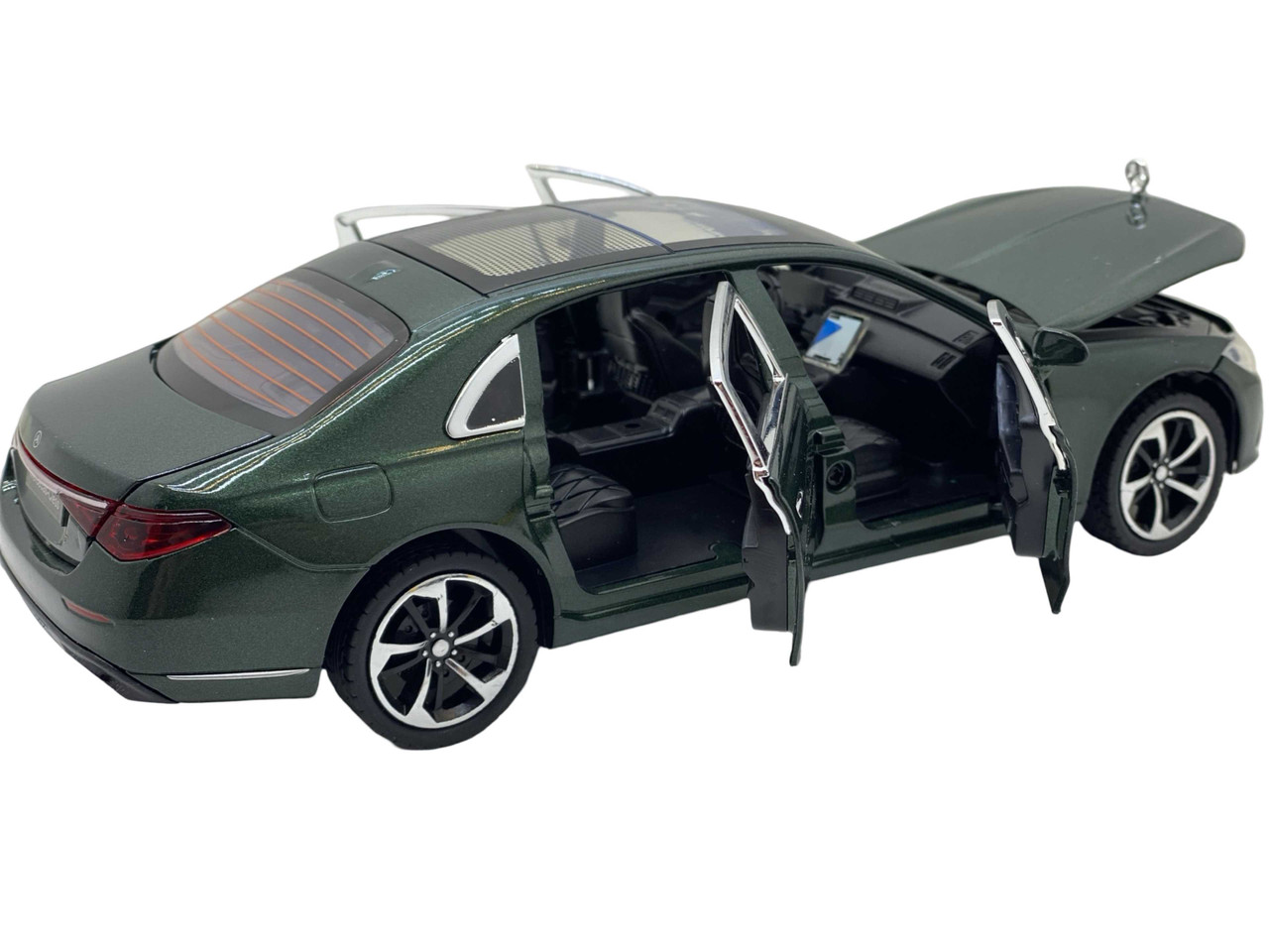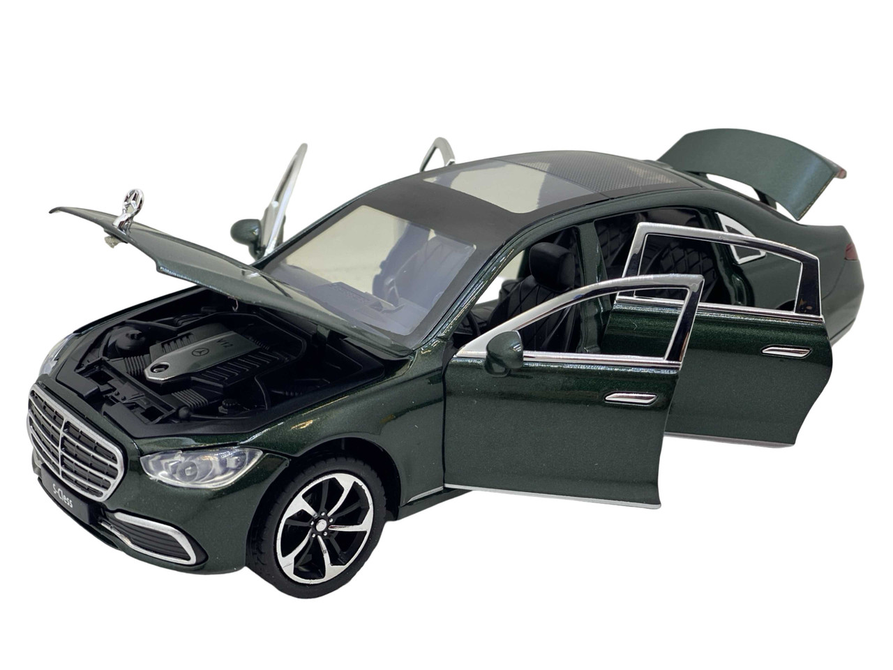 Macheta Mercedes S-Class – 18 cm – Deschide usi, capota, portbagaj, sunet, lumini, scara 1:24 verde