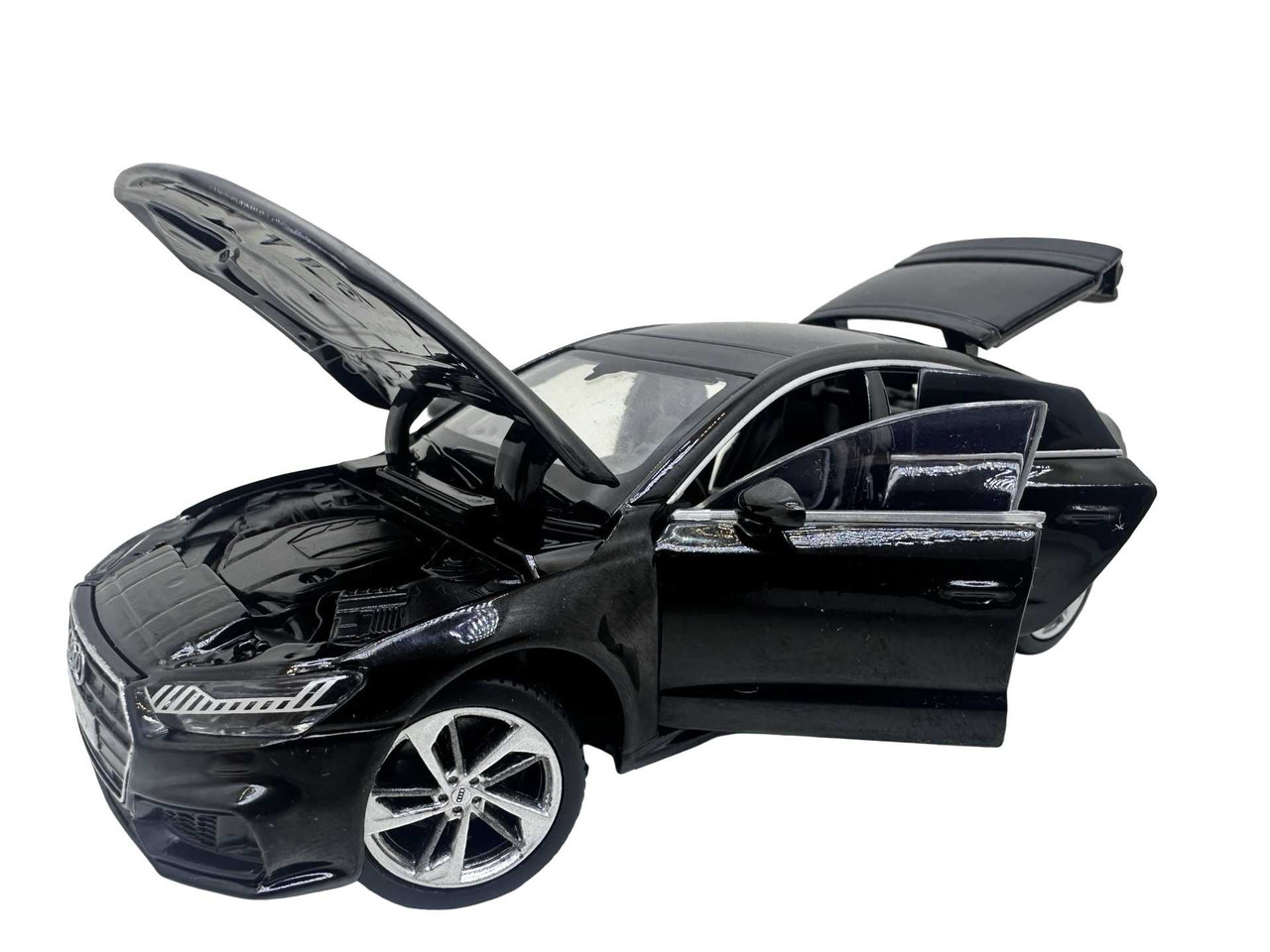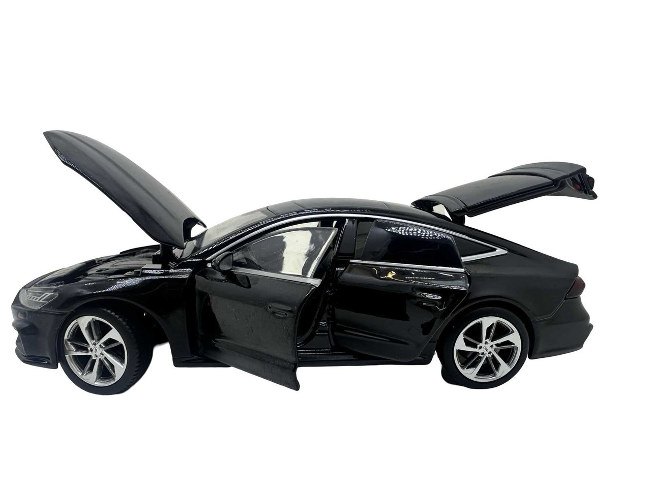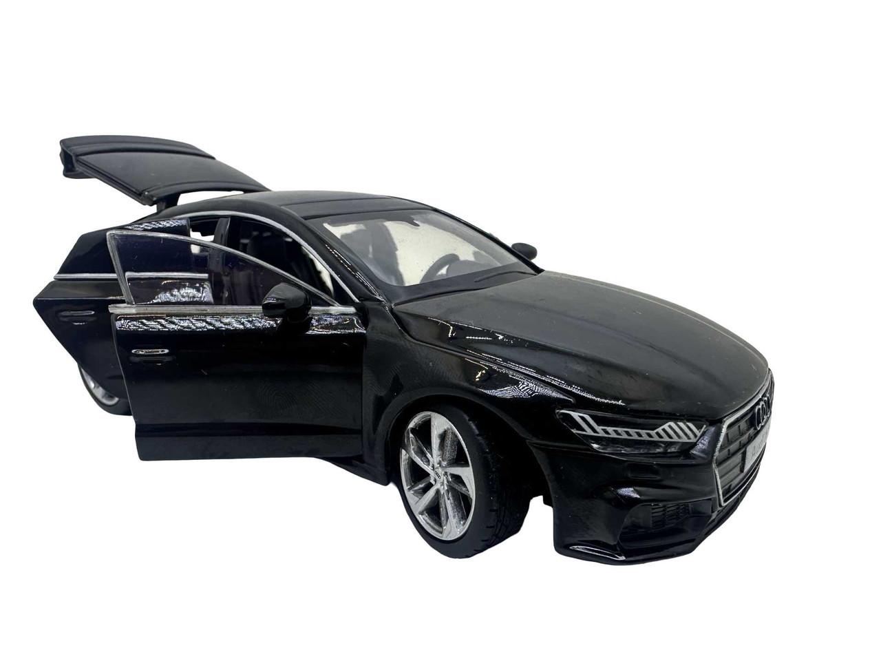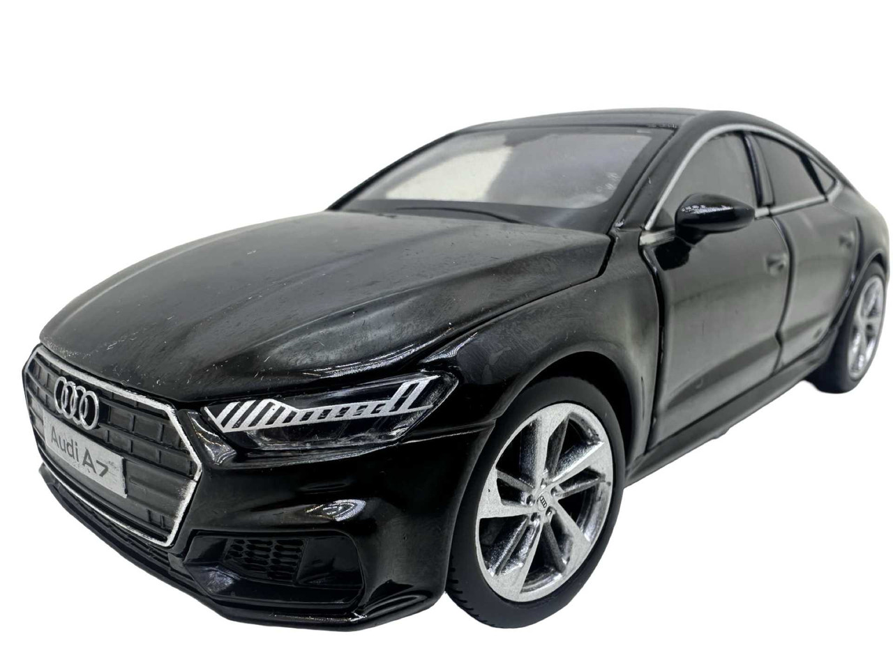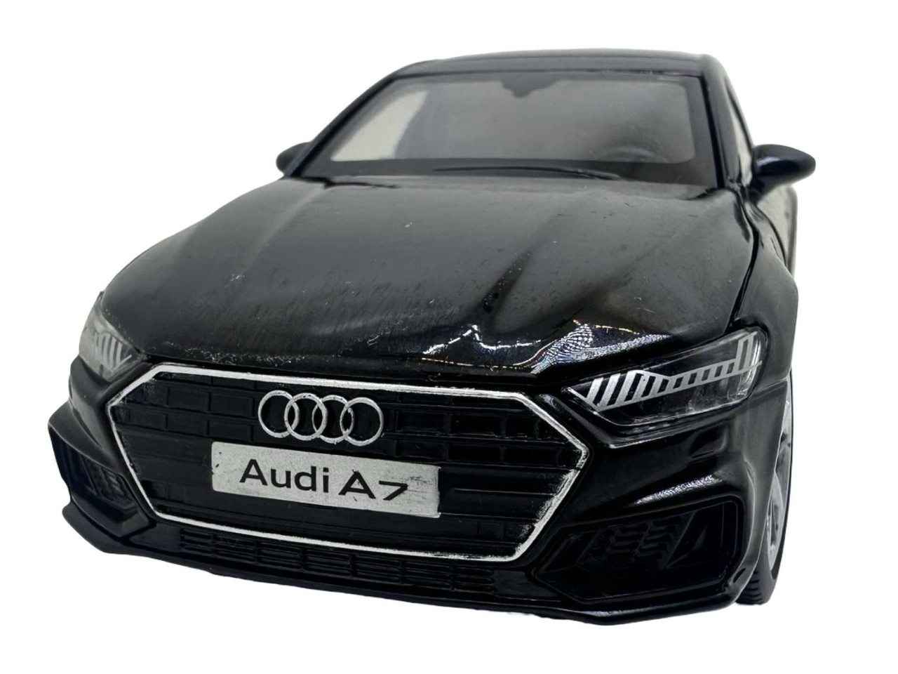 Macheta Audi A7 din metal produsa de Tayumo. Macheta are sunete de motor si lumini care se aprind atunci cand se deschide usa soferului. Bateriile ag13 sunt incluse si se afla sub motor. Masinuta deschide toate cele 4 usi dar si capota si portbagajul.