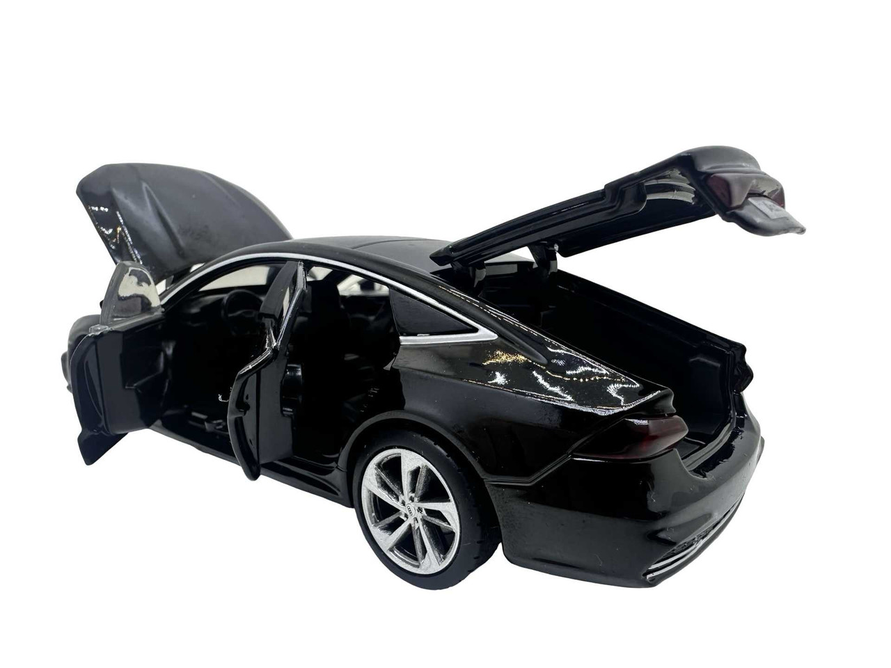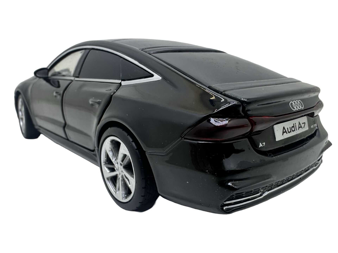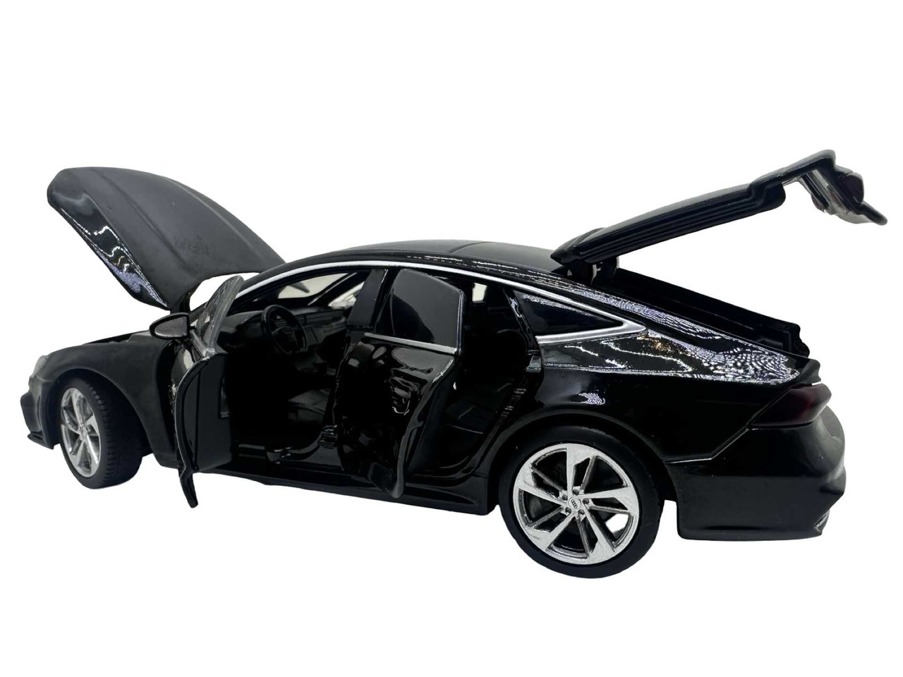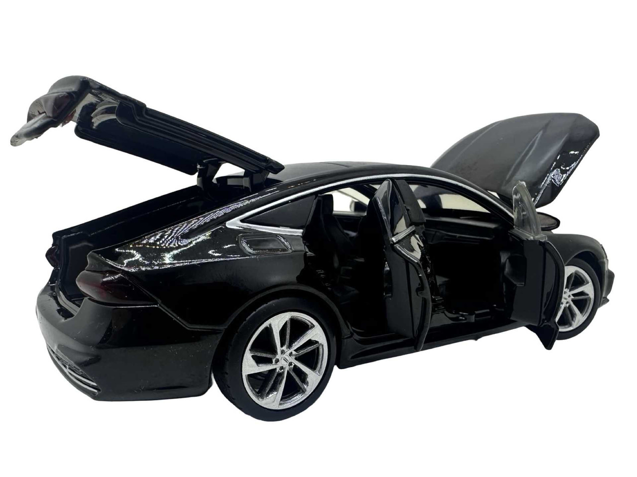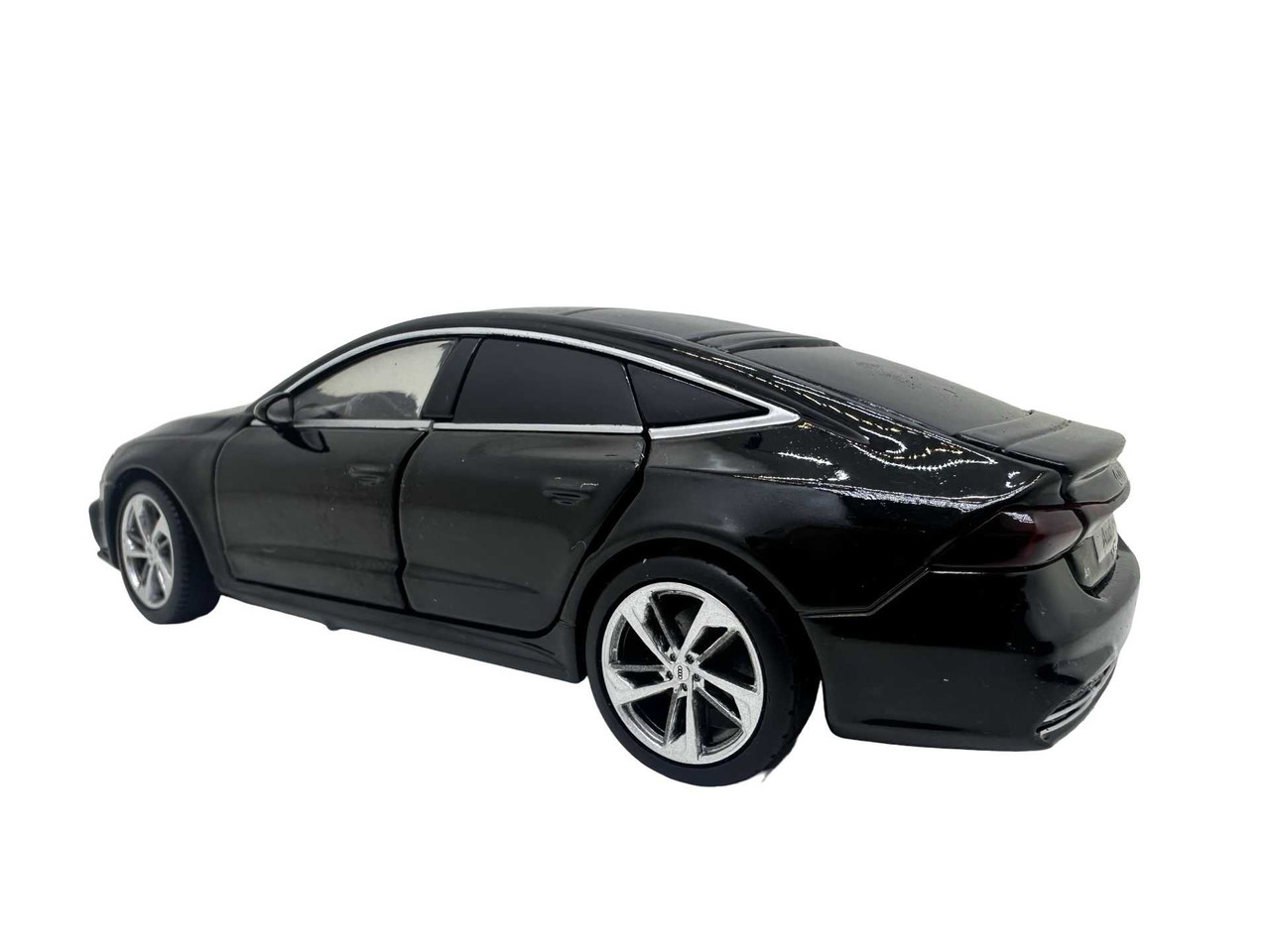 Macheta Audi A7 din metal produsa de Tayumo. Macheta are sunete de motor si lumini care se aprind atunci cand se deschide usa soferului. Bateriile ag13 sunt incluse si se afla sub motor. Masinuta deschide toate cele 4 usi dar si capota si portbagajul.