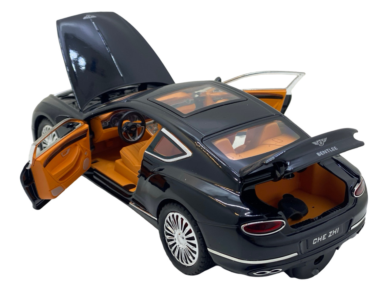 Macheta metal Bentley negru replica deschide usi, fum, capota, portbagaj 22cm