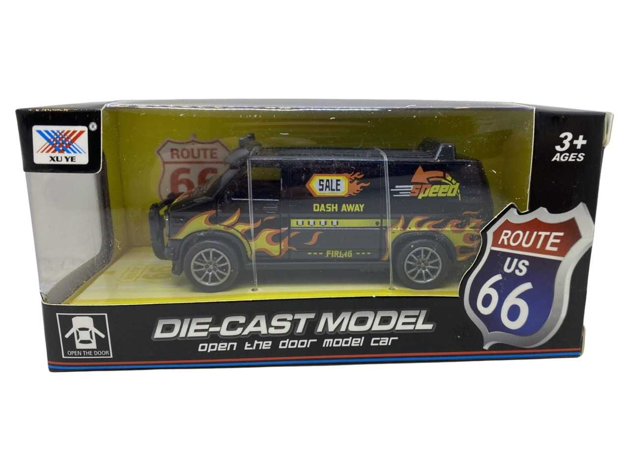 Macheta Metal GMC Vandura inscriptionata scara 1:43. Macheta are resort si deschide usile din fata. Are lungimea de aproximativ 8cm. Este celebra macheta a masinii echipei de interventie din filmul A-TEAM.