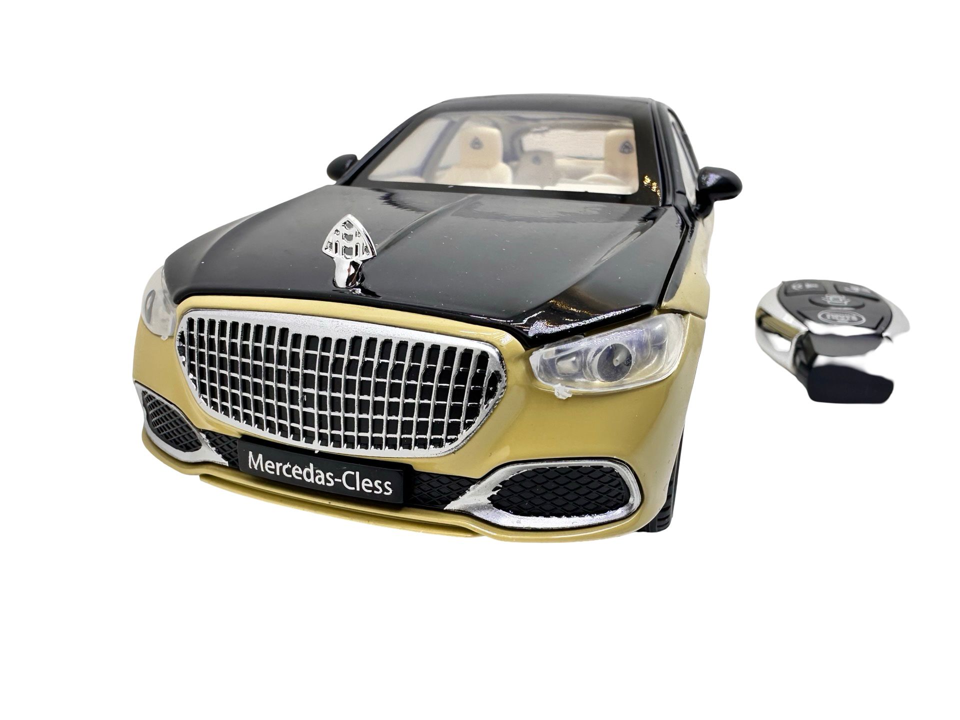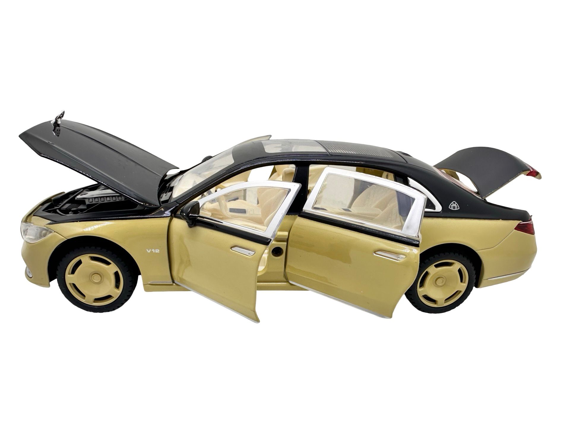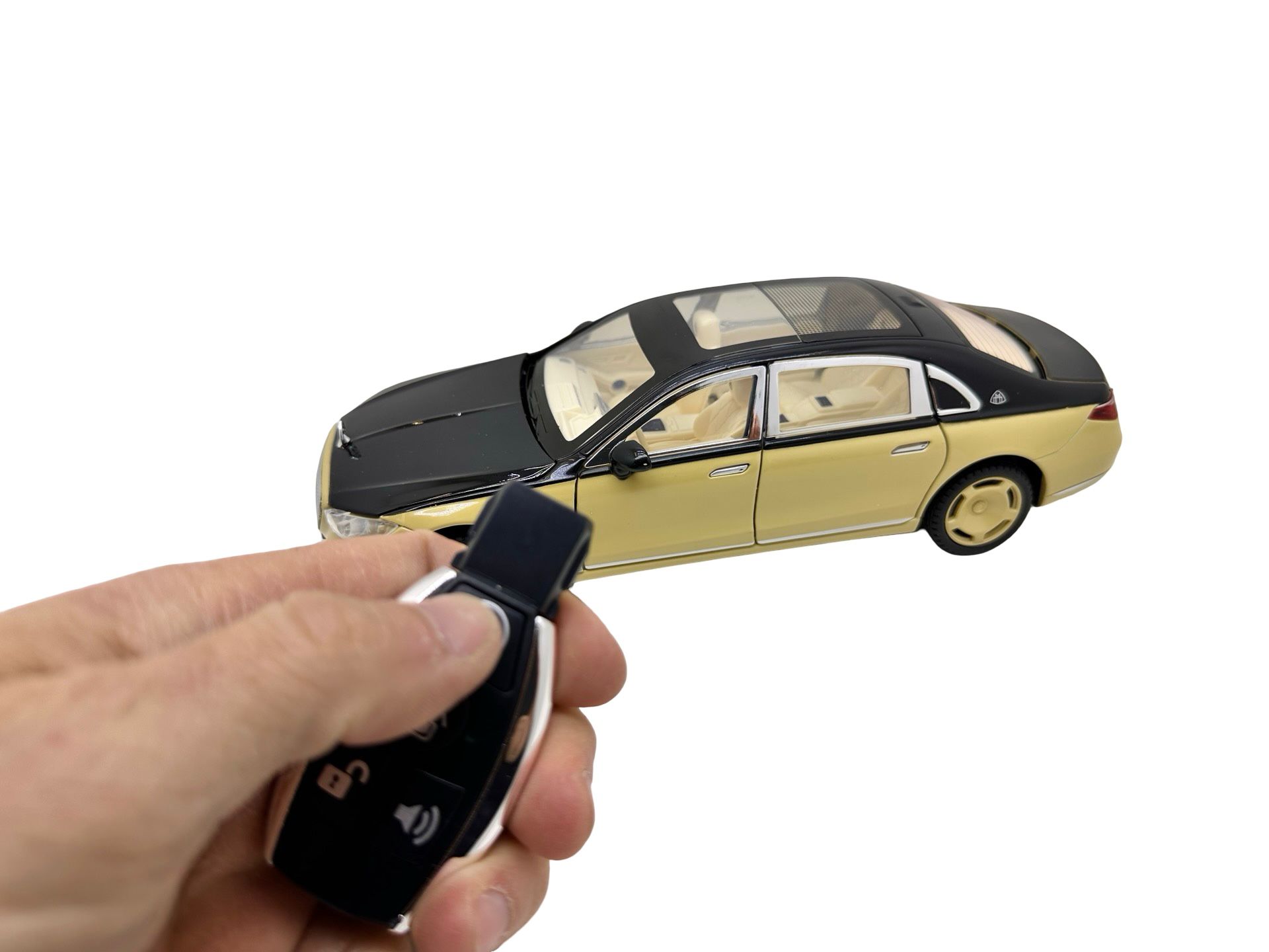Macheta metal Mercedes Maybach S Class negru auriu 1:24 telecomanda deschidere electrica usi capota portbagaj lumini si sunete
