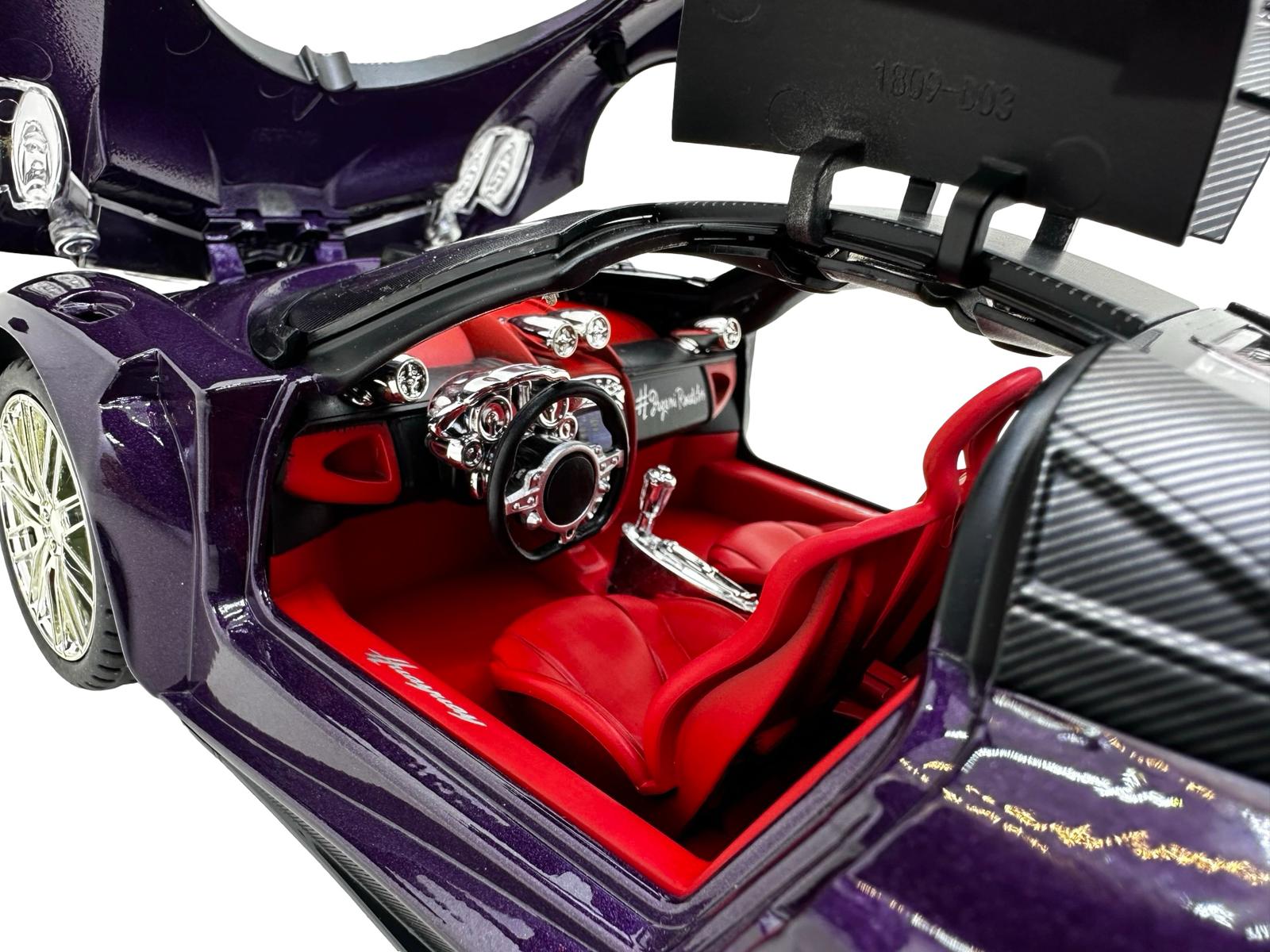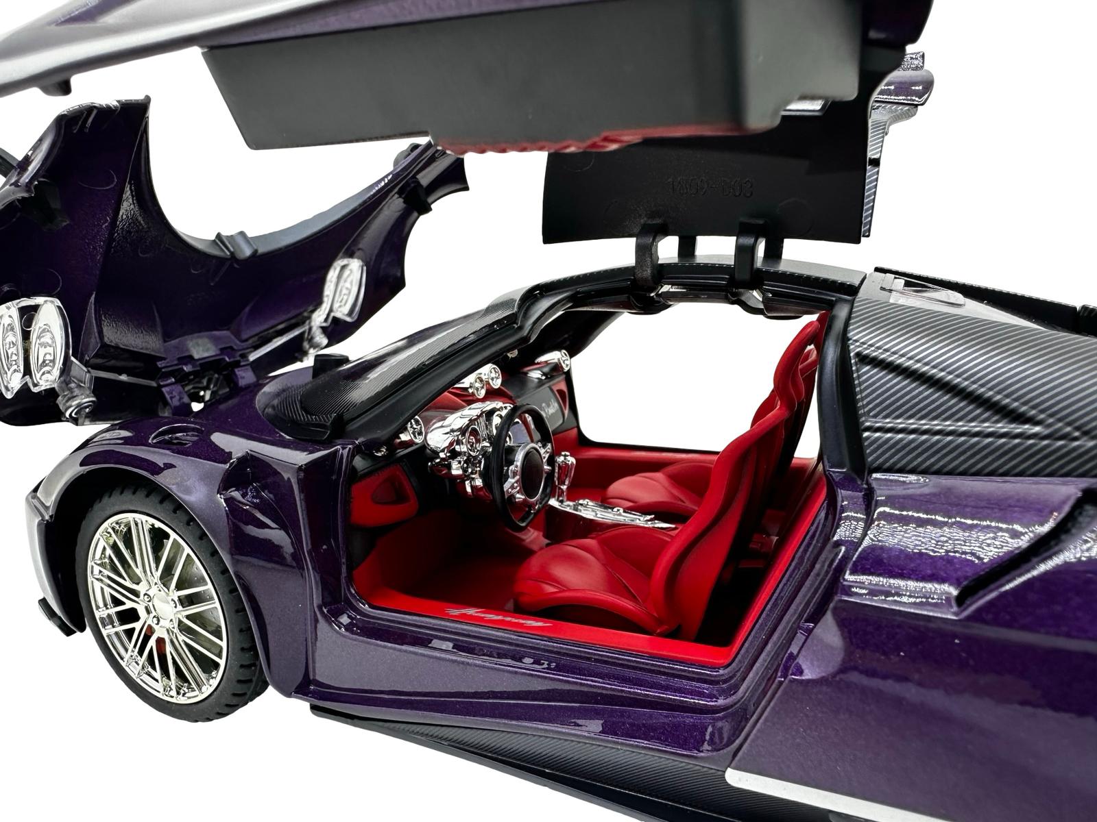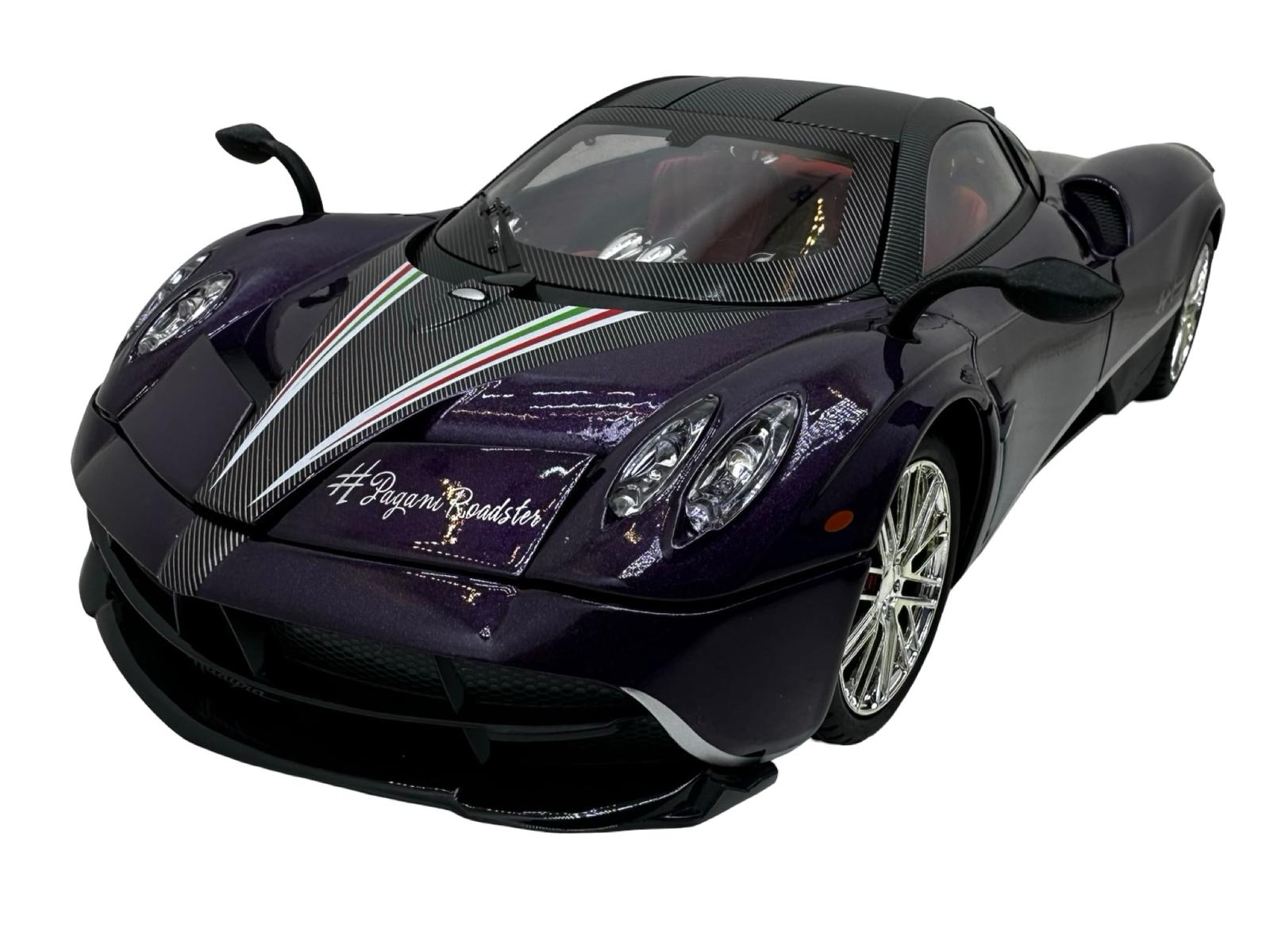 Macheta metal Pagani Huayra roadster 1/18 sunet, lumini, deschide usile si capotele