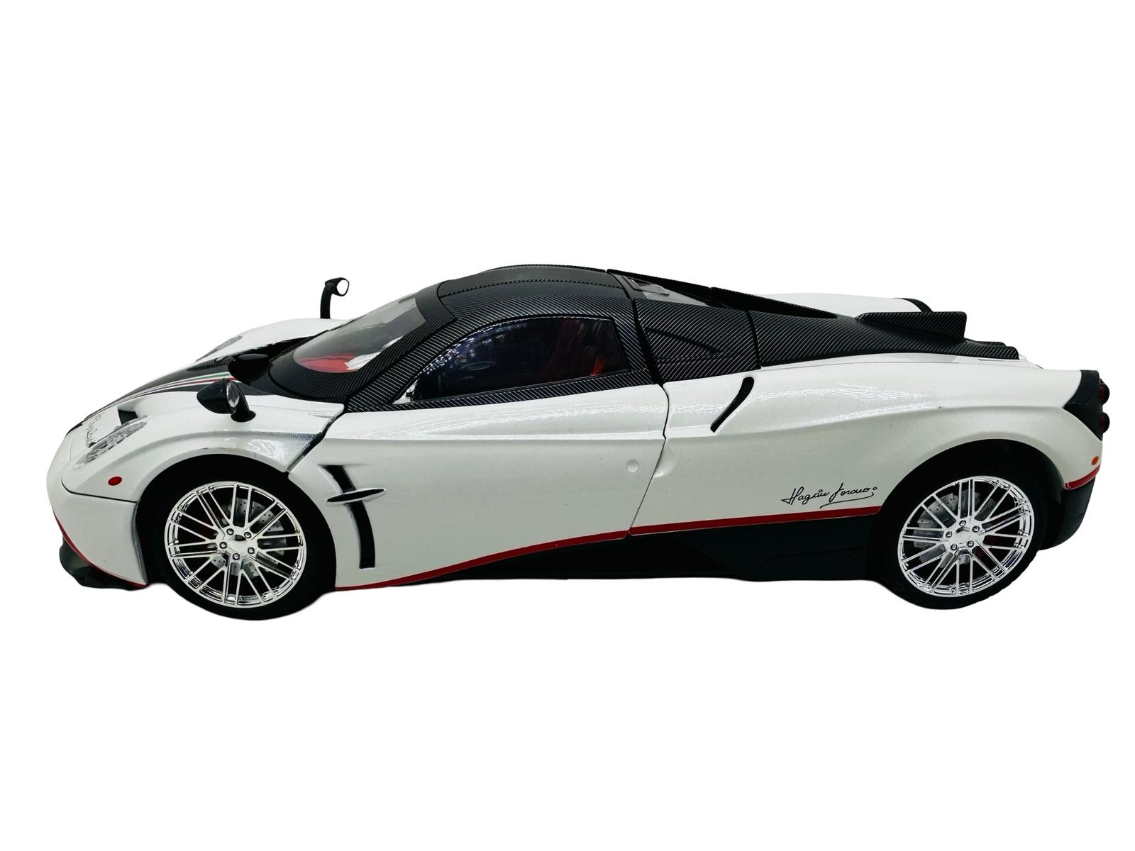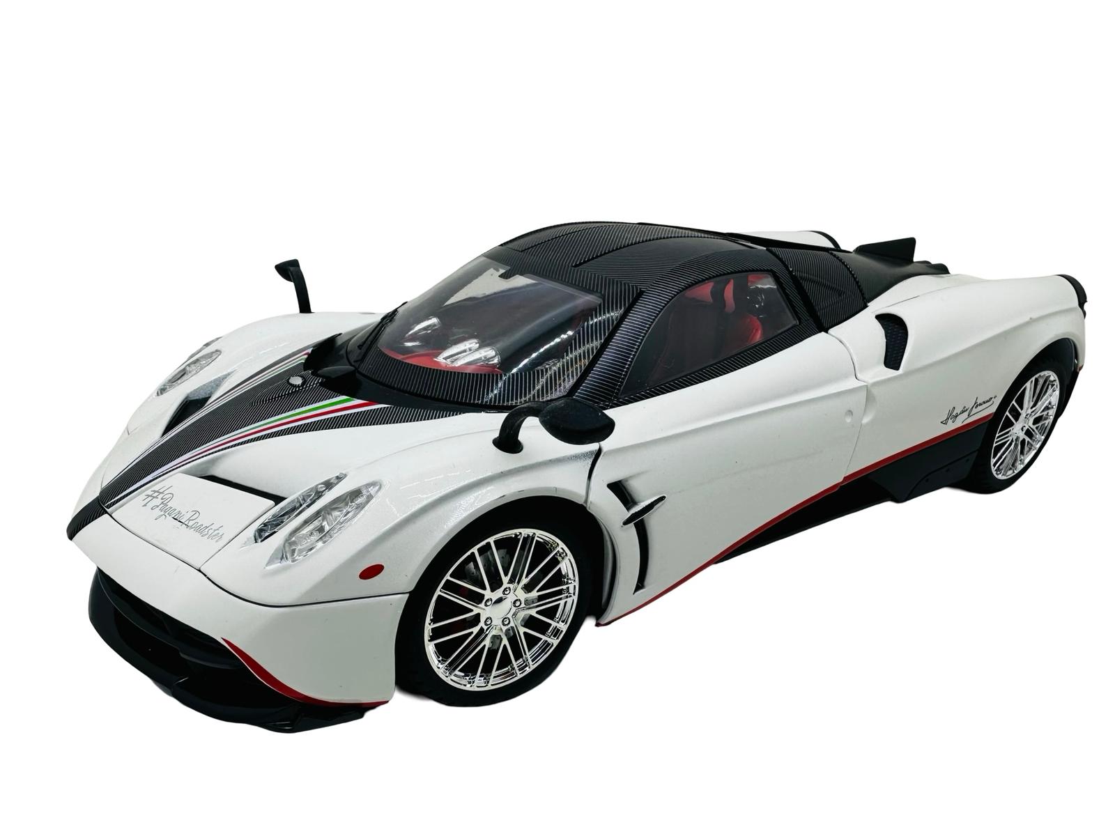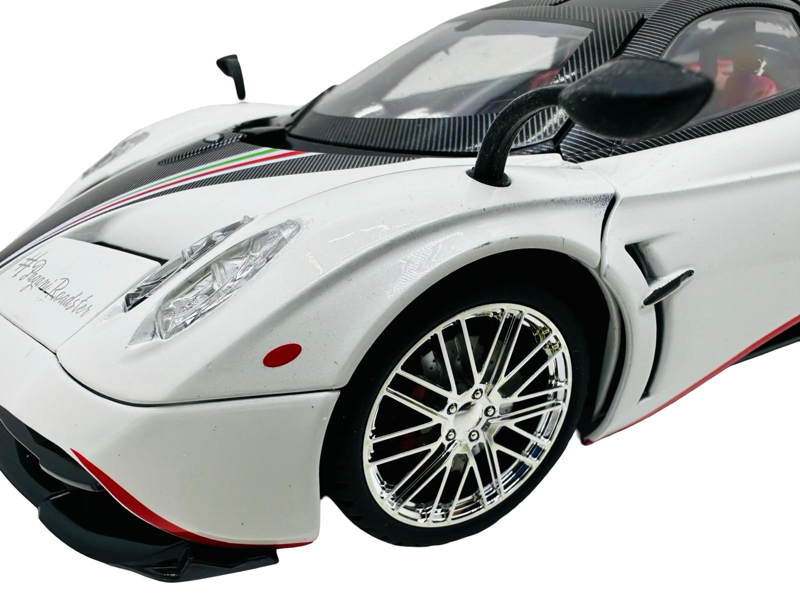 Macheta metal Pagani Huayra roadster alb 1/18 sunet, lumini, deschide usile si capotele