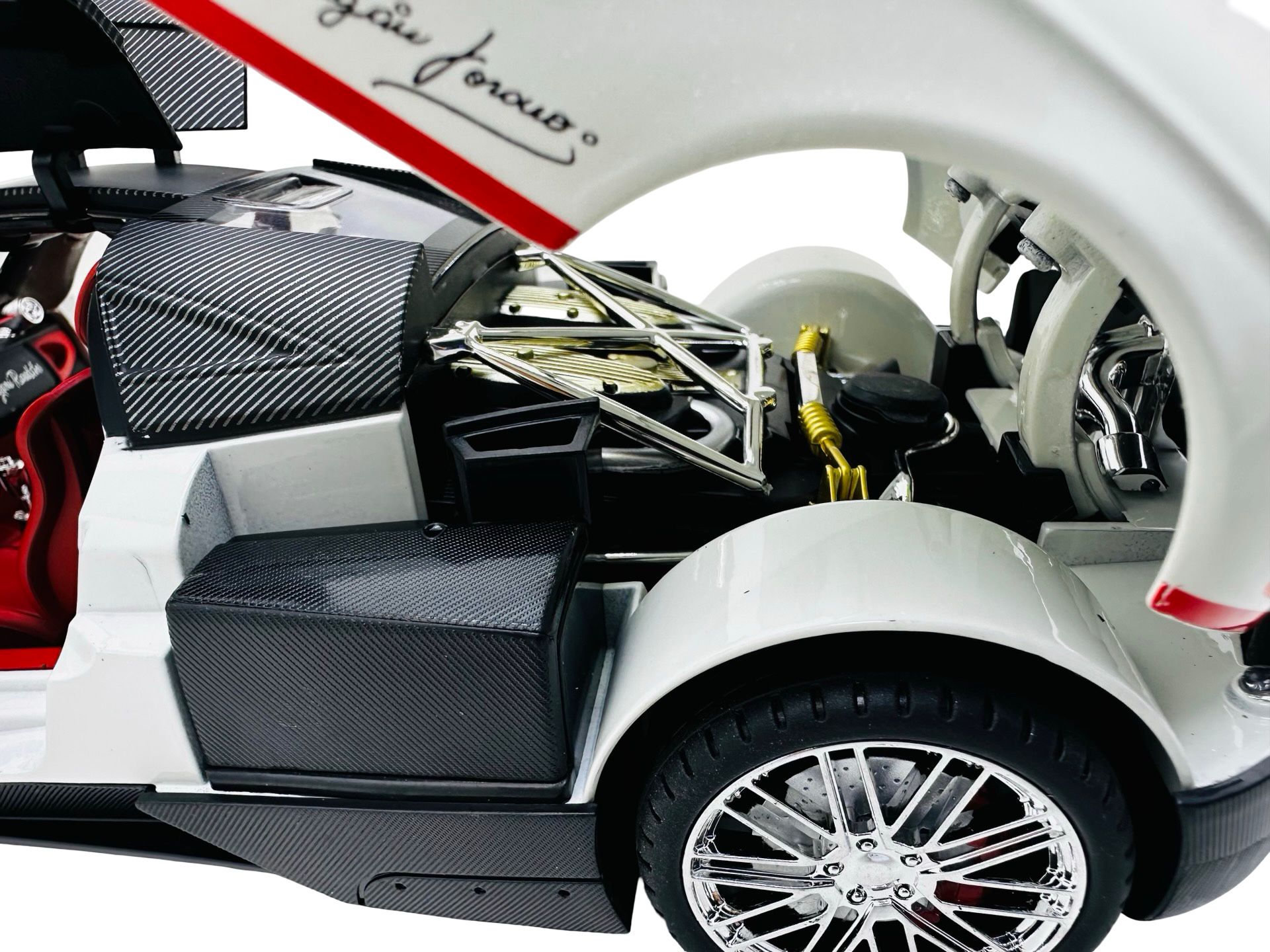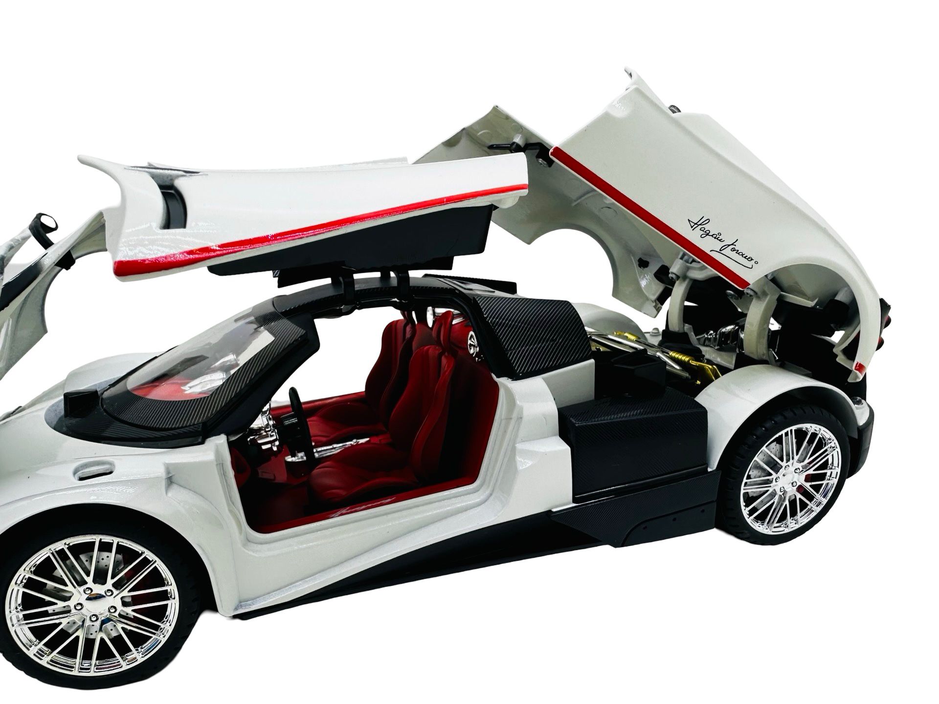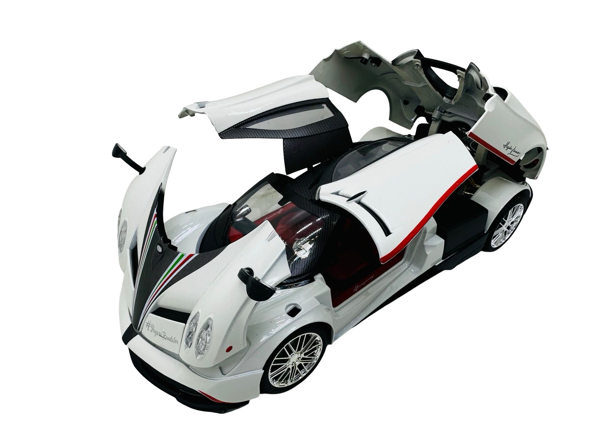 Macheta metal Pagani Huayra roadster alb 1/18 sunet, lumini, deschide usile si capotele