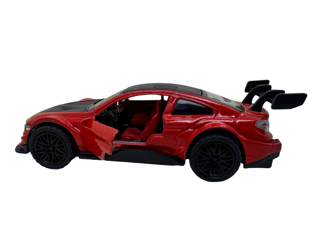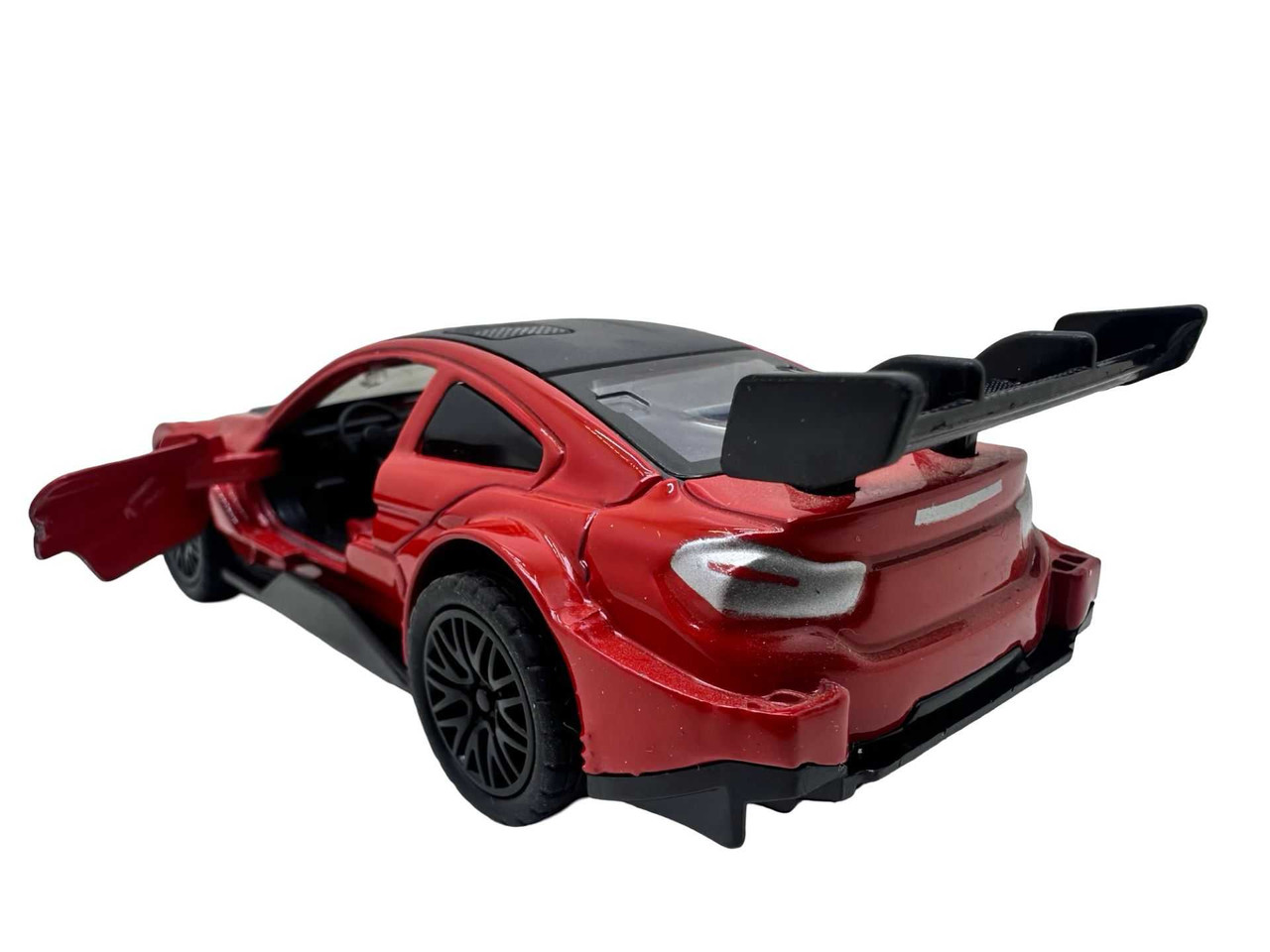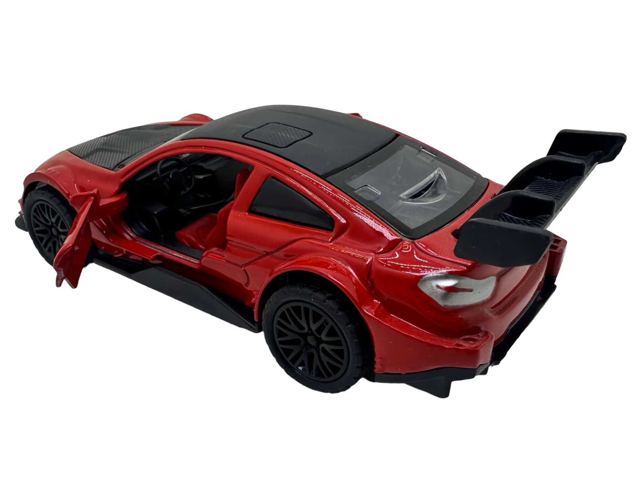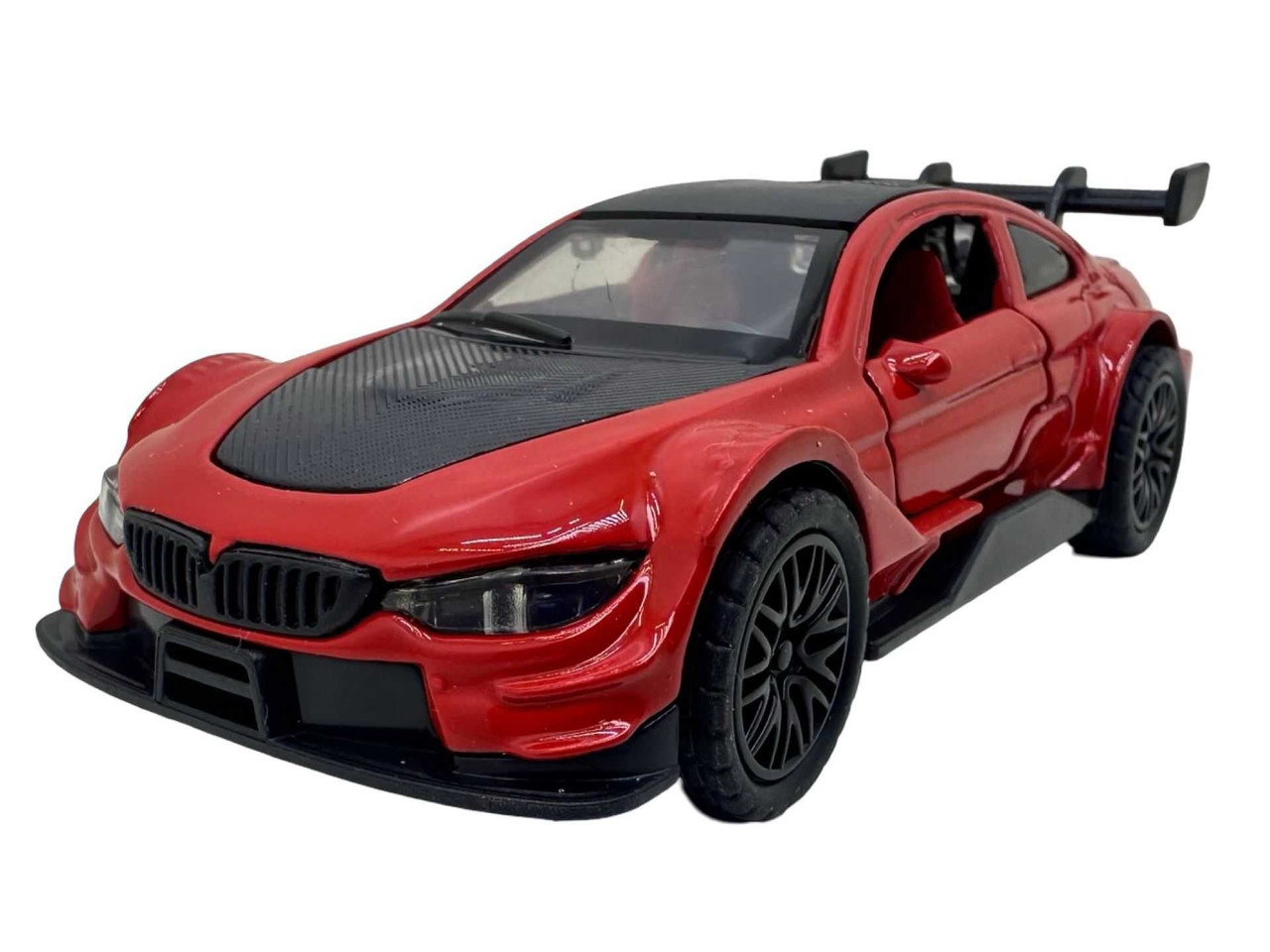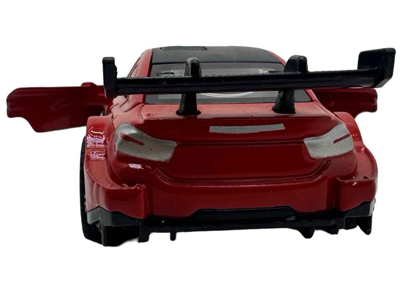 Macheta metal replica Bmw M3 rosu scara 1:38. Deschide usile din fata. Masinuta are aproximativ 11 cm lungime si are resort. Vine ambalata in cutie individuala. Este recomandata copiilor peste 3 ani.