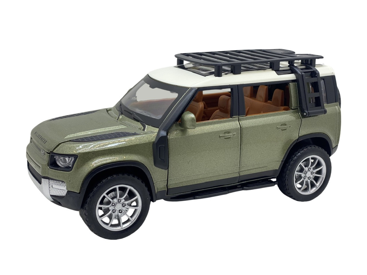 Macheta metal replica Land Rover Defender verde deschide usi, capota, portbagaj 1:22