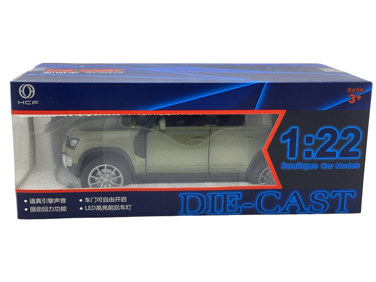 Macheta metal replica Land Rover Defender verde deschide usi, capota, portbagaj 1:22. Masinuta deschide toate usile inclusiv capota motor si portbagajul. Are sunete de motor si alarma care se activeaza la deschiderea usii de la sofer. Functioneaza cu 3 baterii AG13 care sunt incluse.