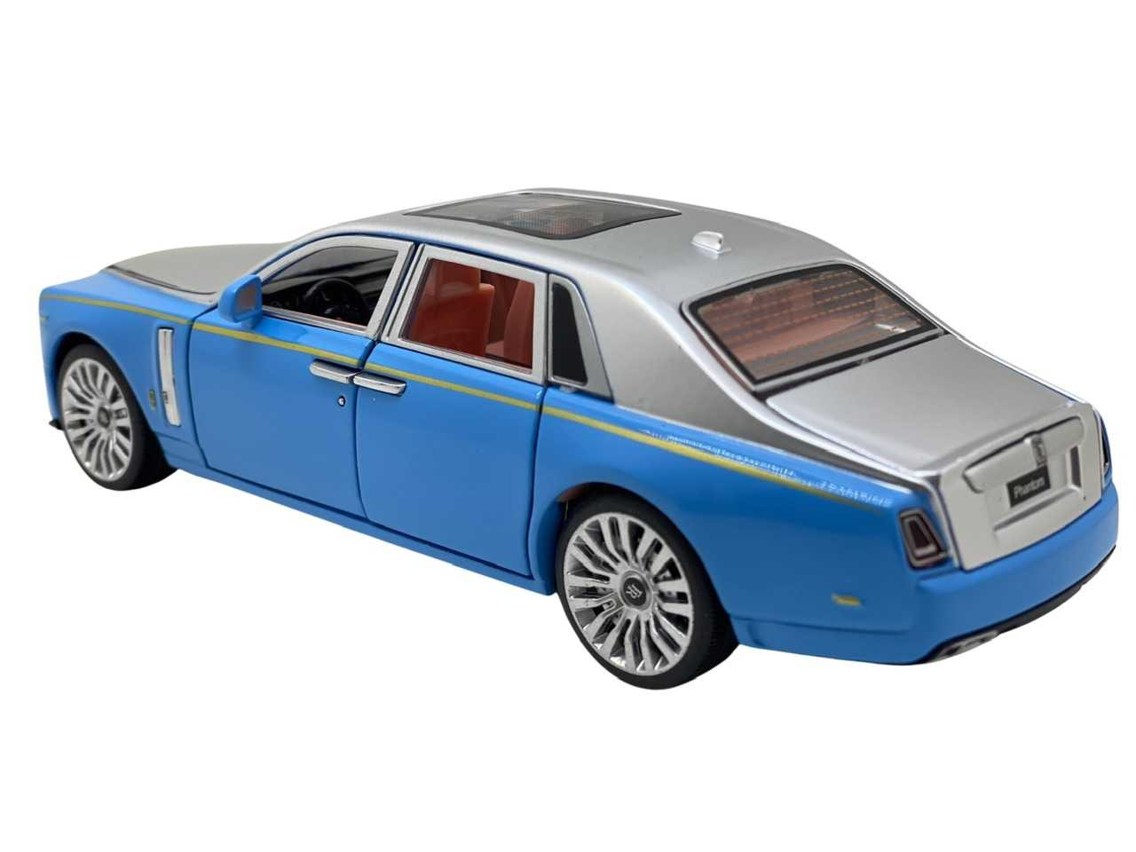 Macheta metal Rolls Royce Phantom limuzina replica deschide usi, capota si portbagaj 17cm albastru