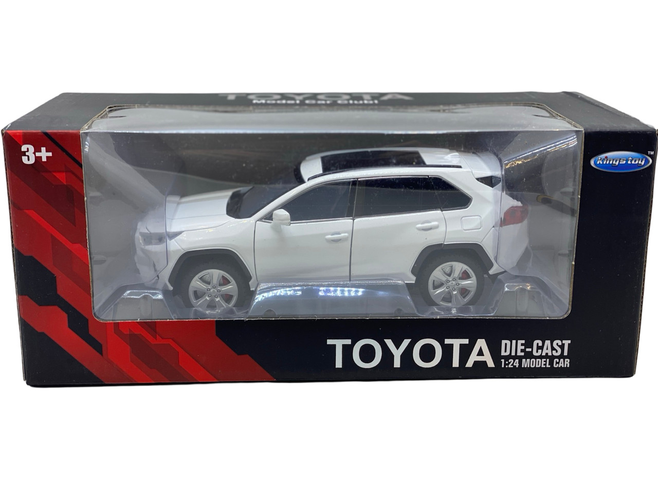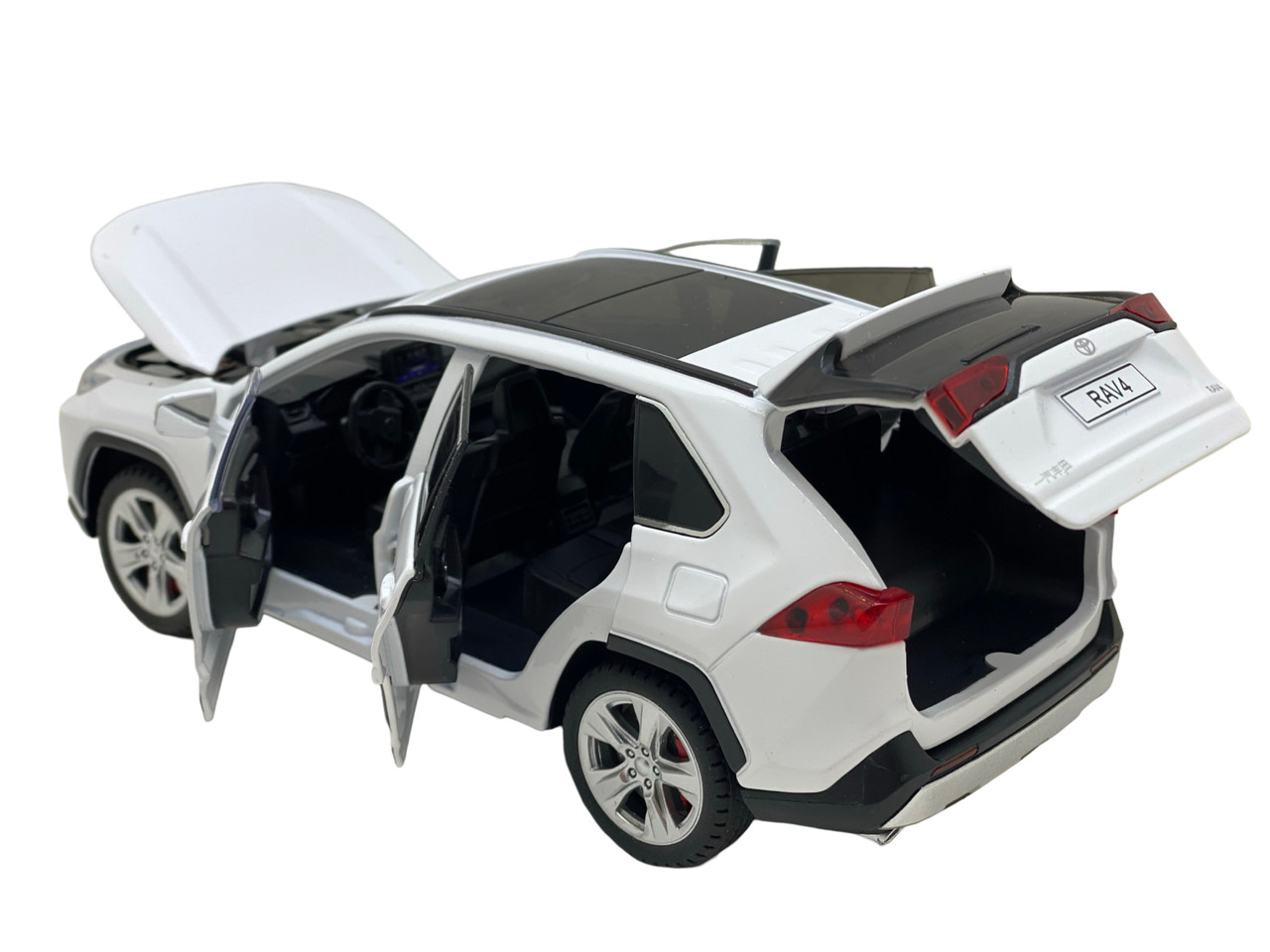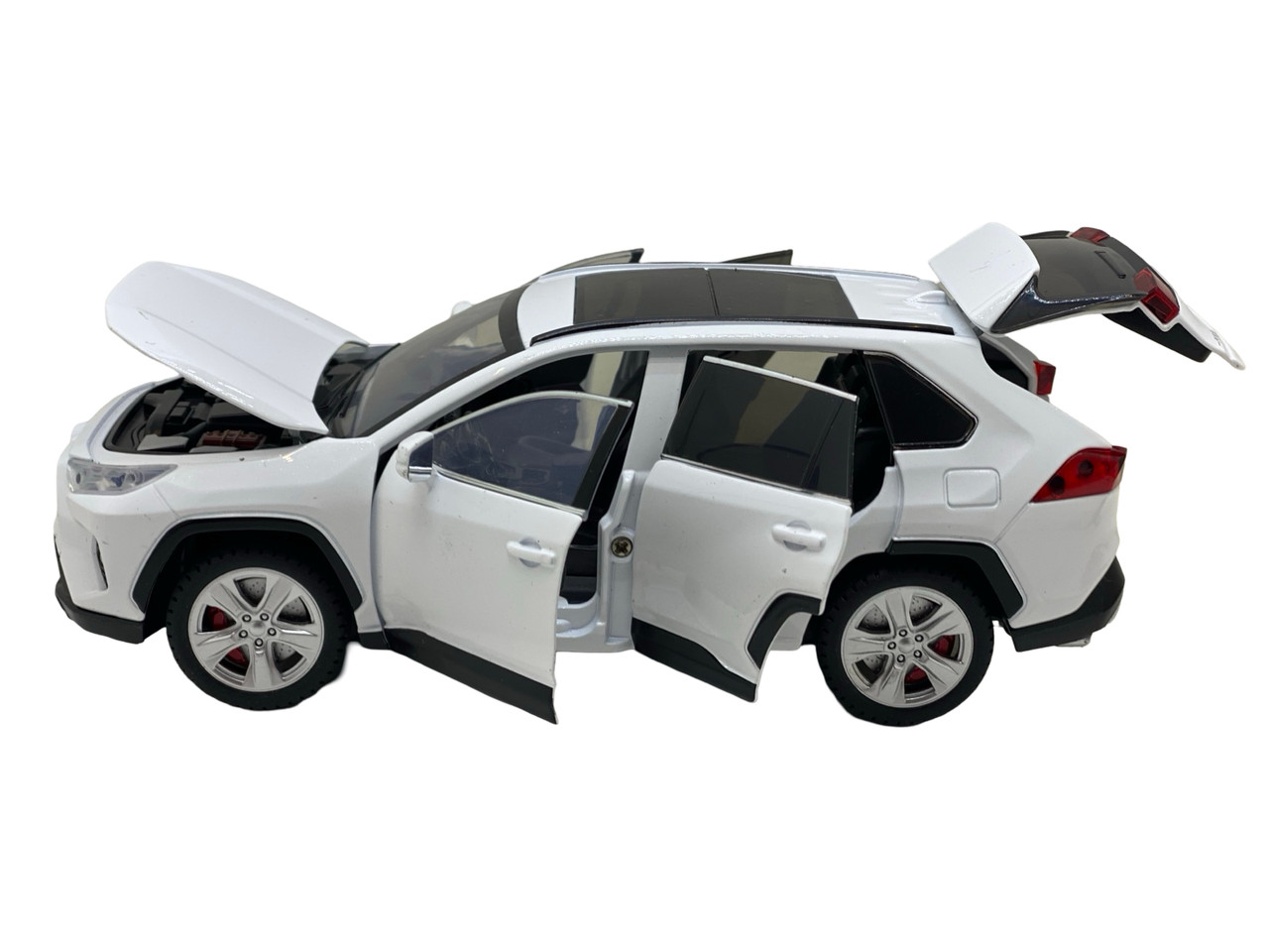 Macheta metal Toyota Raw 4 alba sunet, lumini, deschide tot scara 1:22
