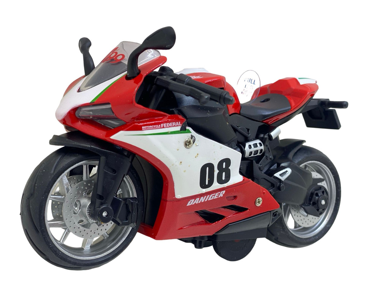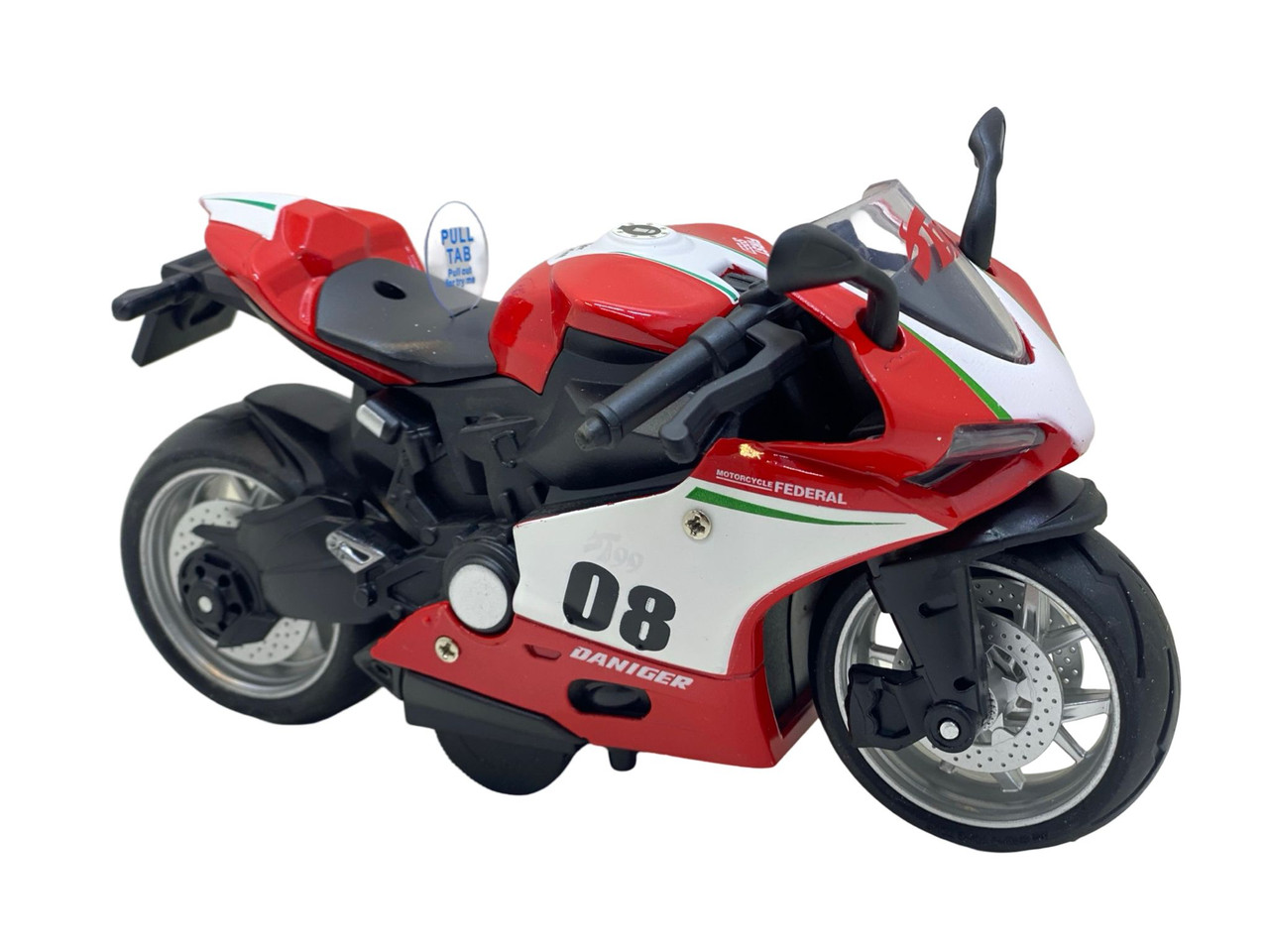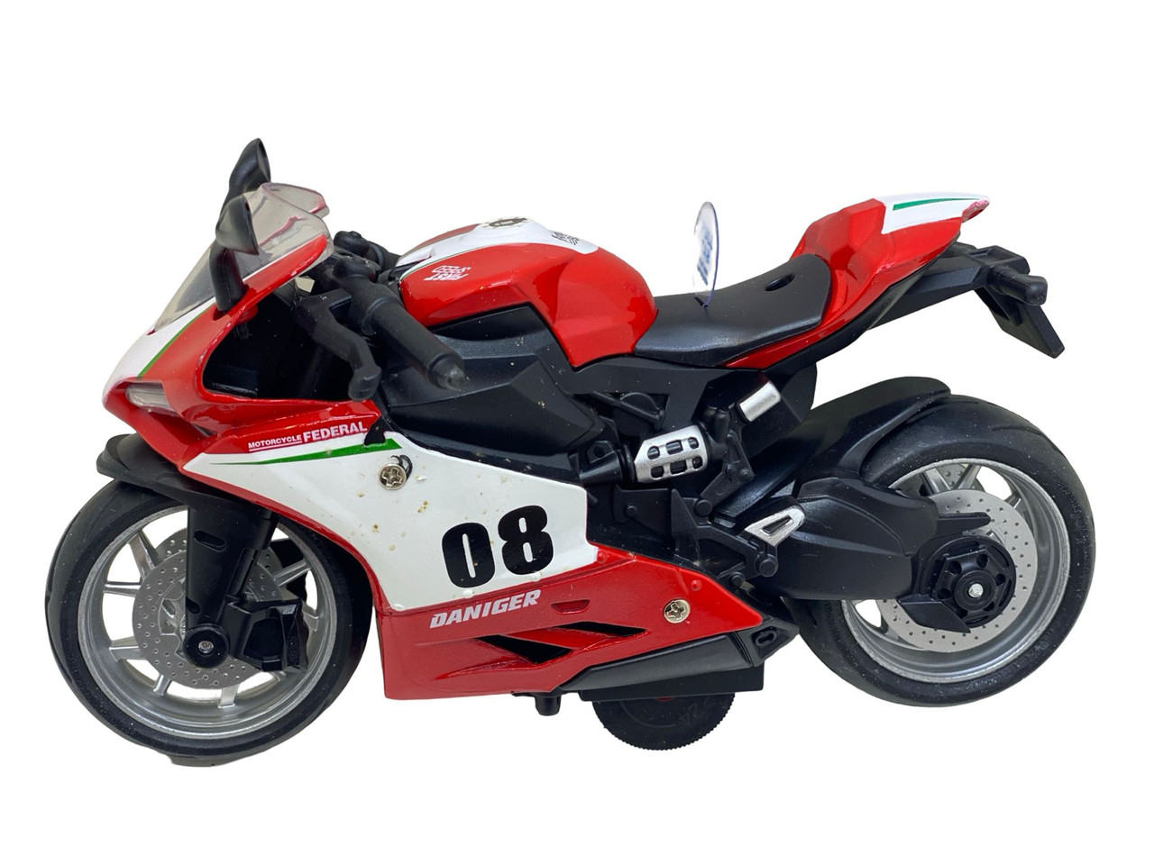Macheta Metalica Motocicleta Speeder Sport, Scara 1:8, cu Efecte Luminoase si Sonore Rosu-Alb